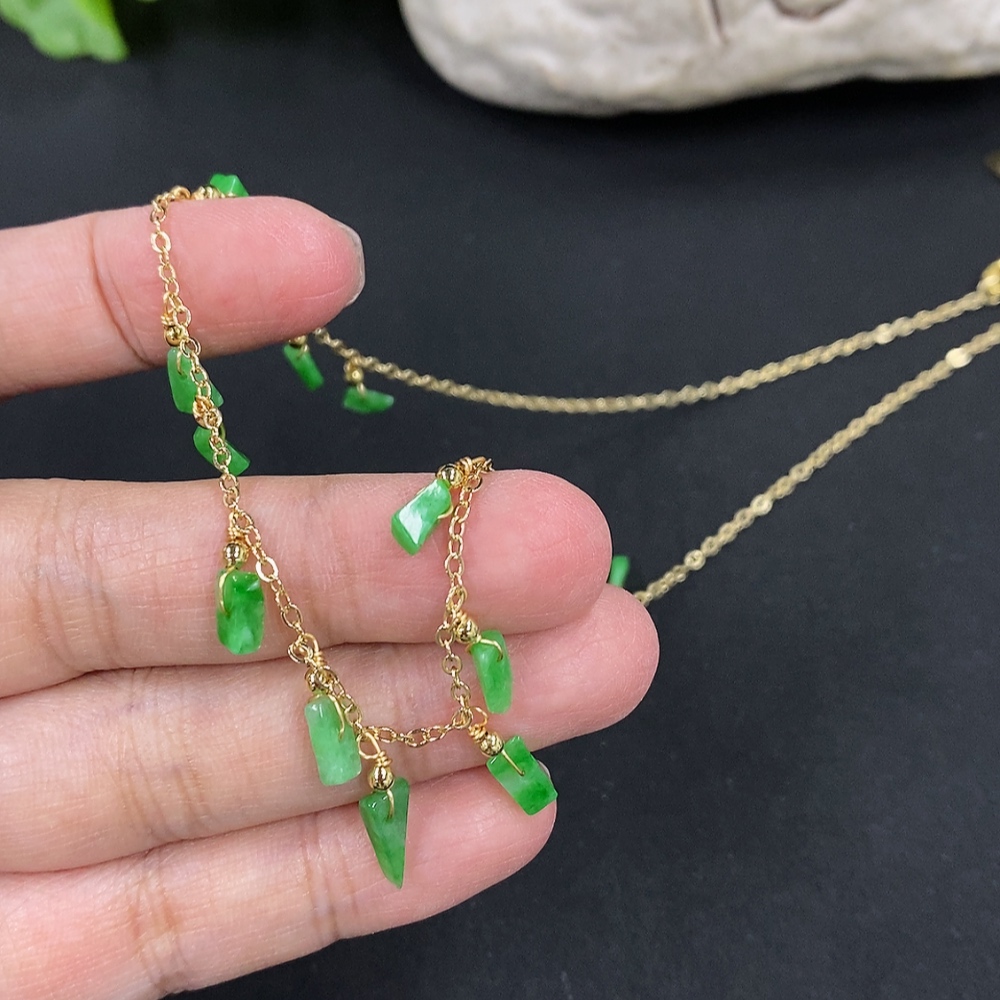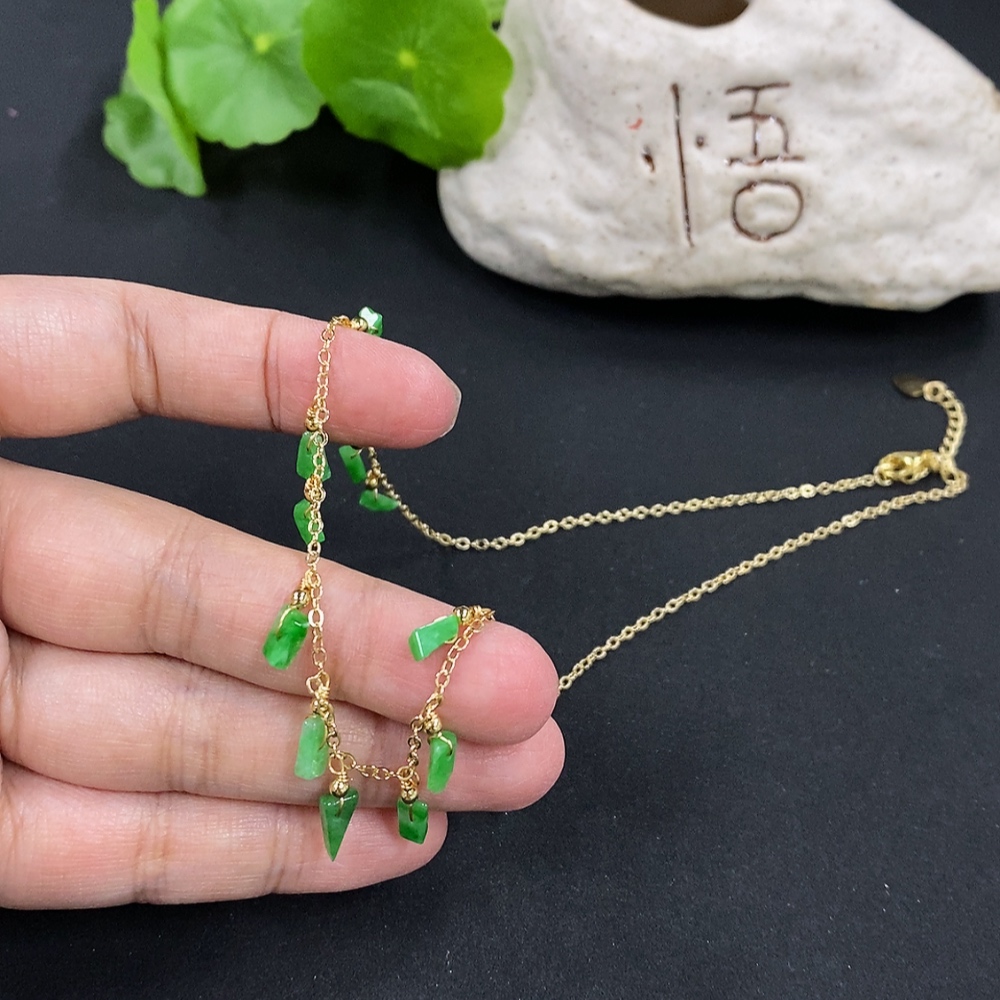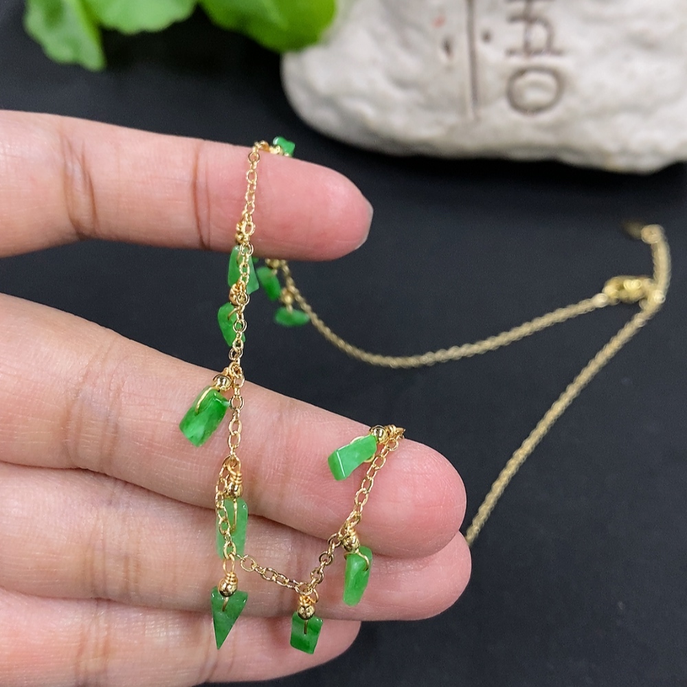 Jadeite inlaid chain, non-gold inlaid, total weight approx. 4.28g