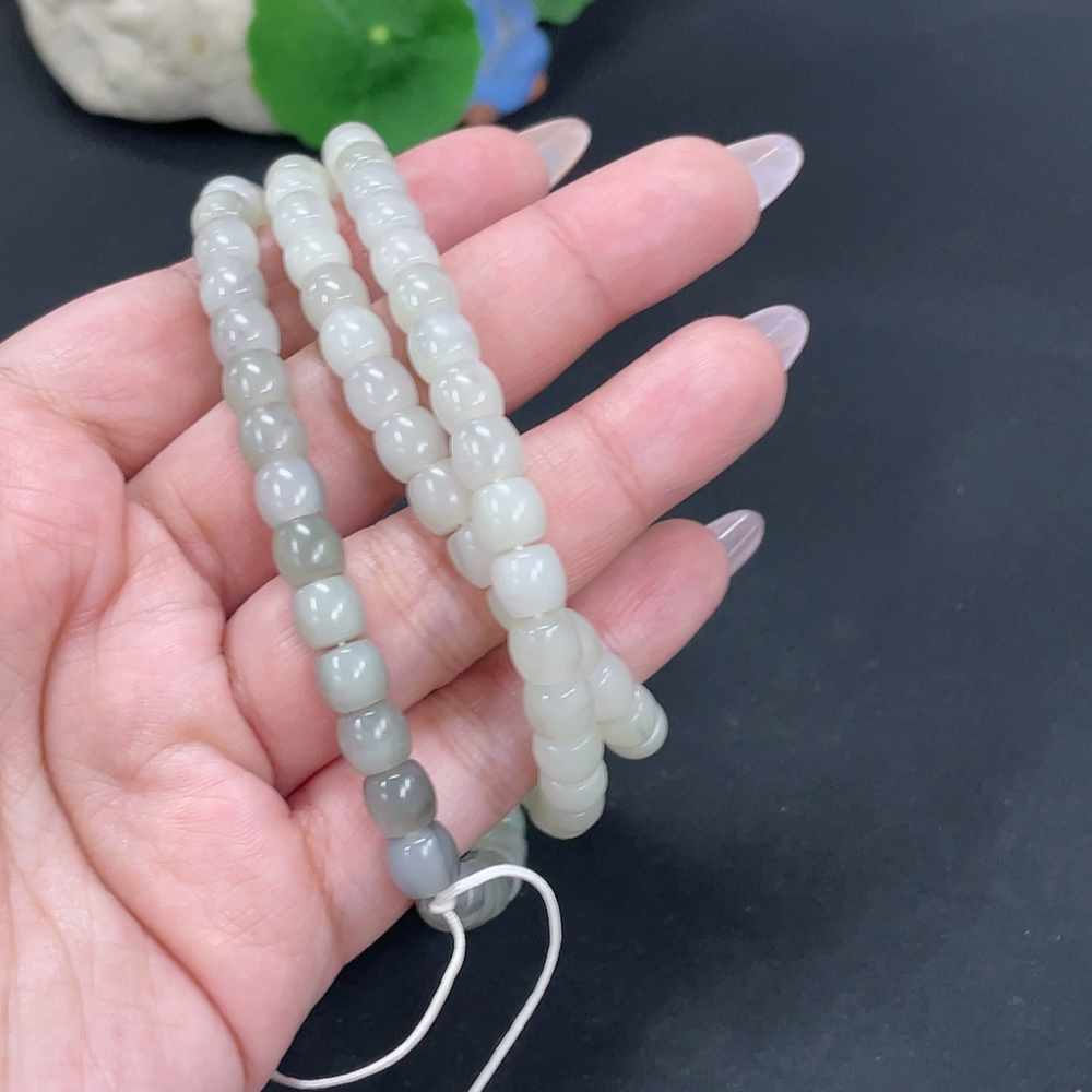 Hetian Jade Bead Necklace, Approx. 6.8mm, Total Weight Approx. 62.8g
