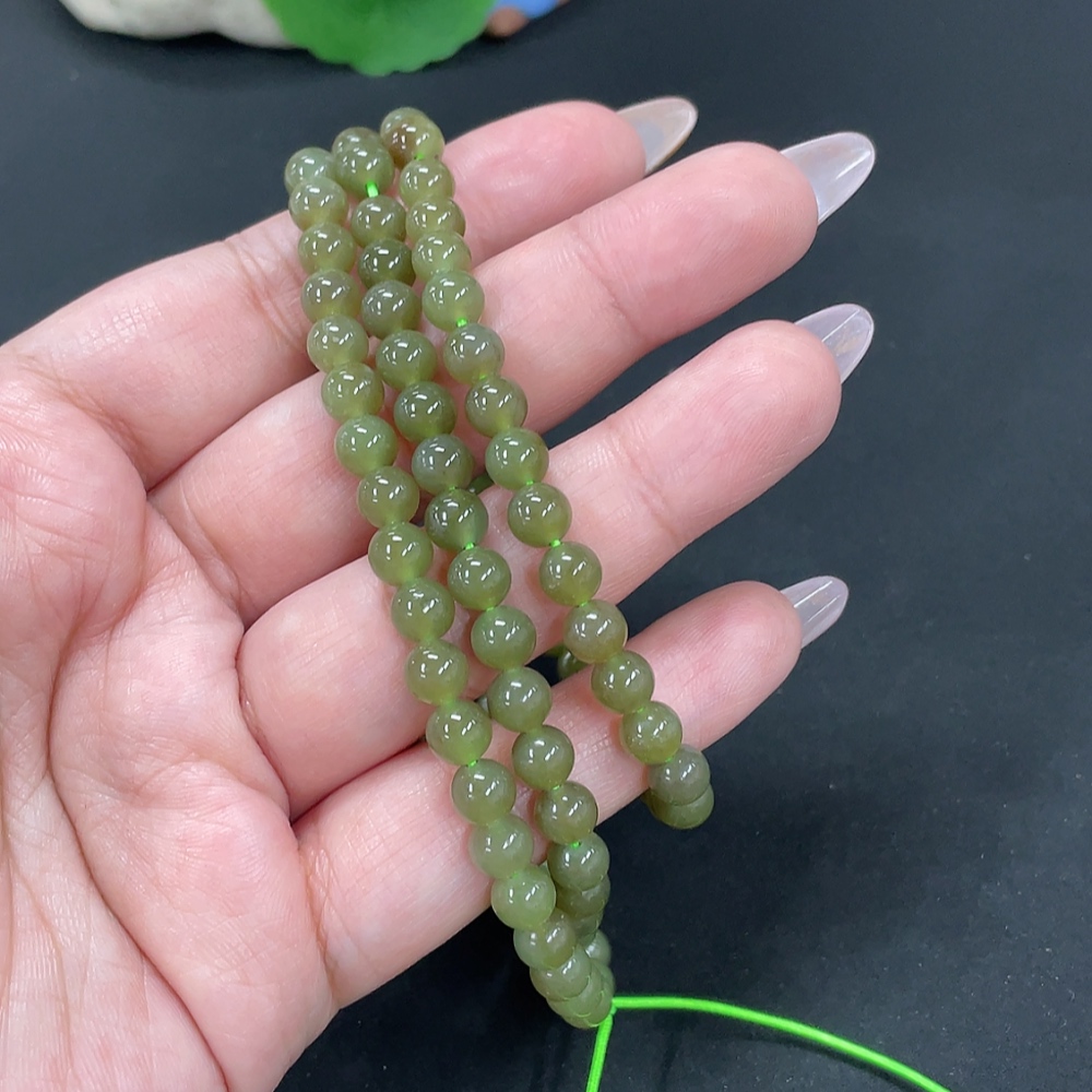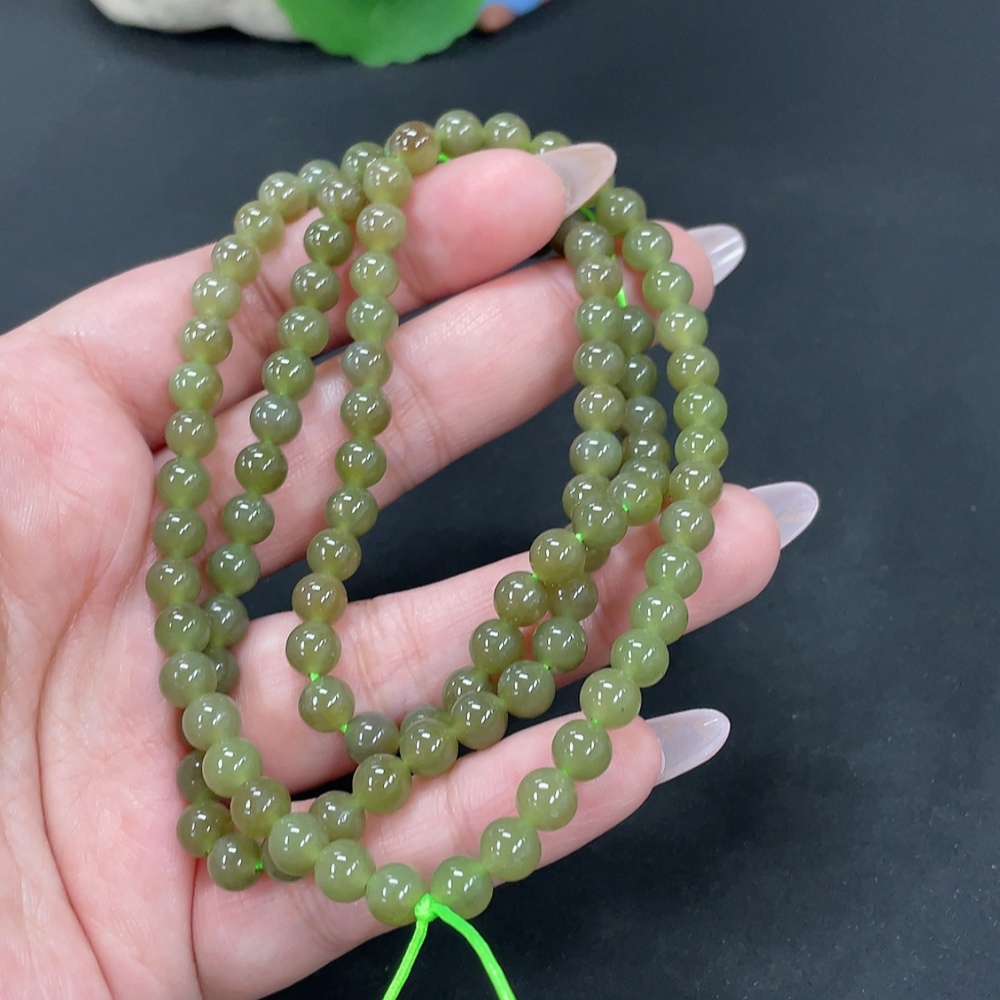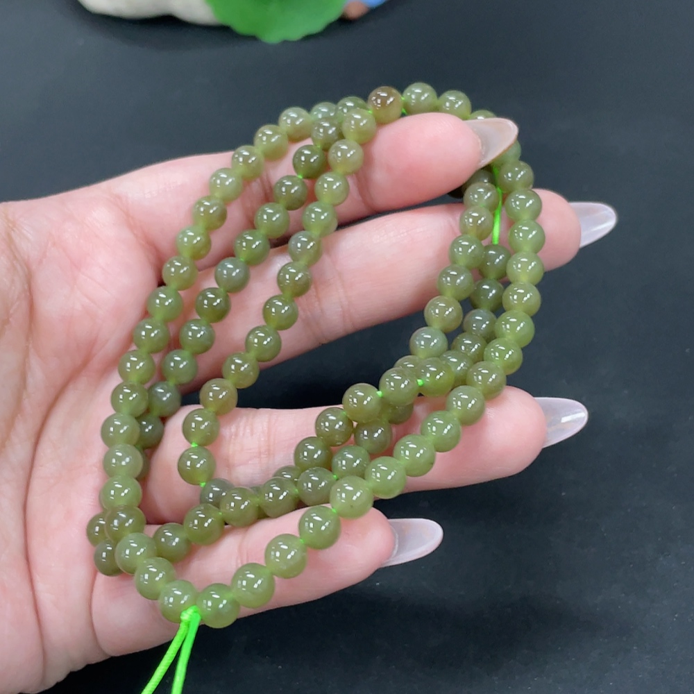 Hetian Jade Bead Necklace, Approx. 5.8mm, Total Weight Approx. 37g