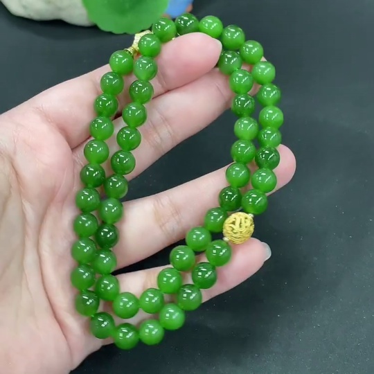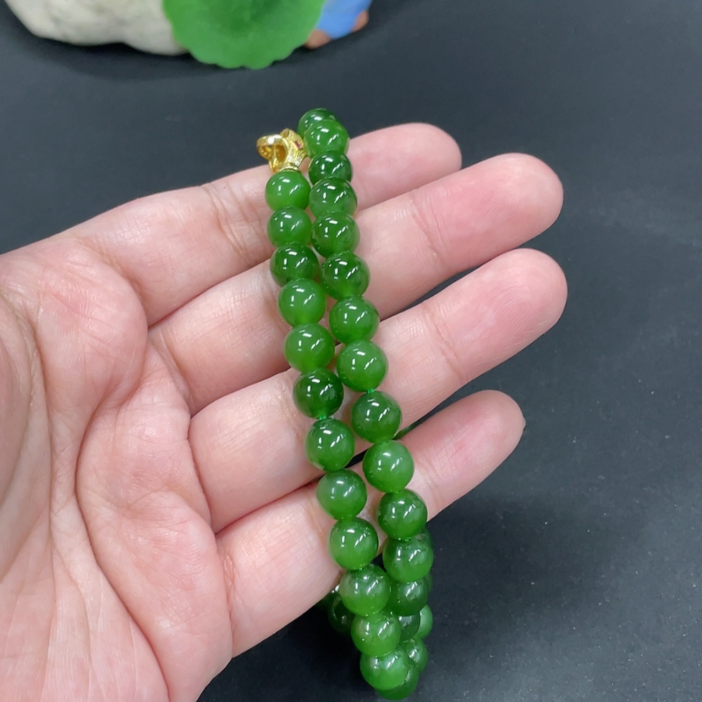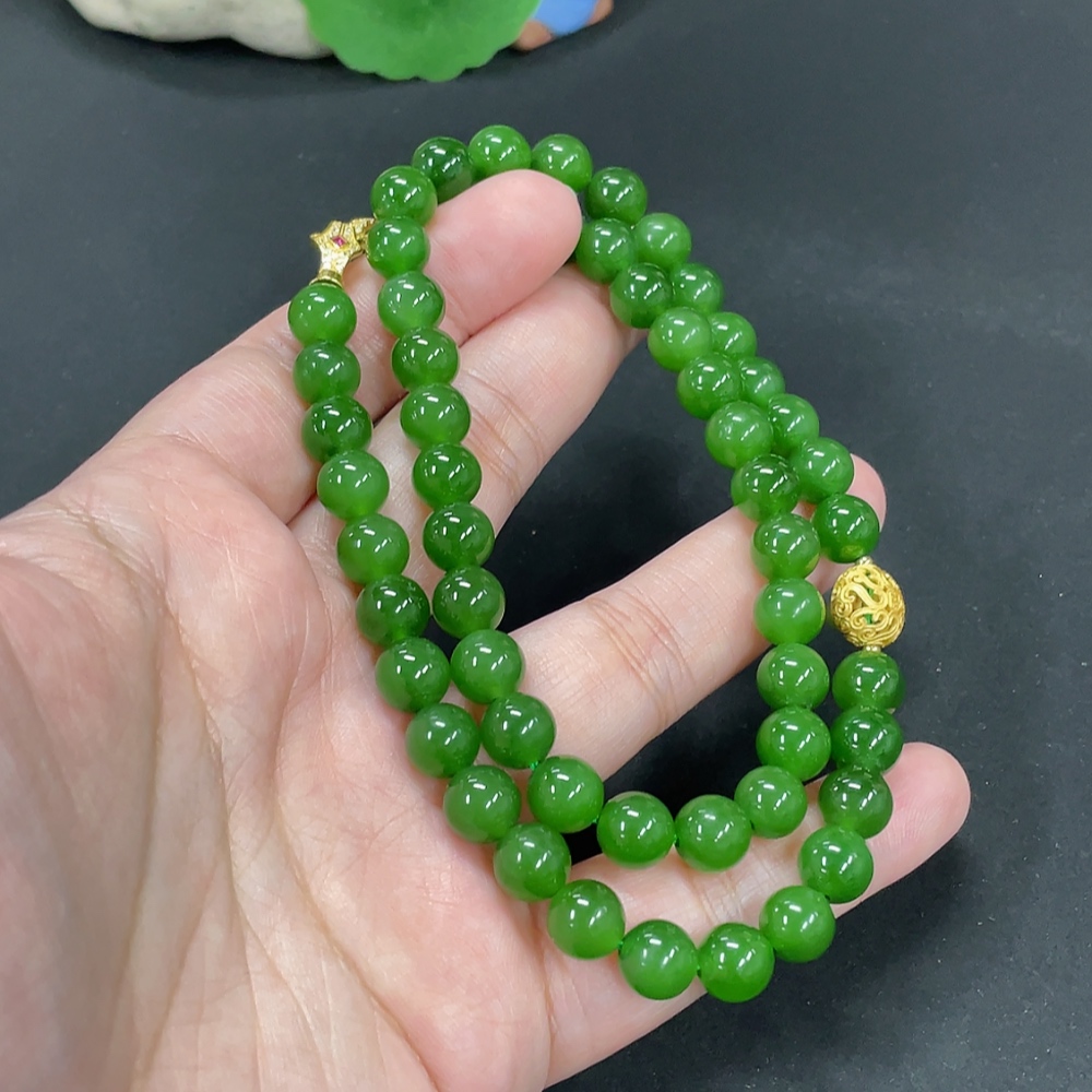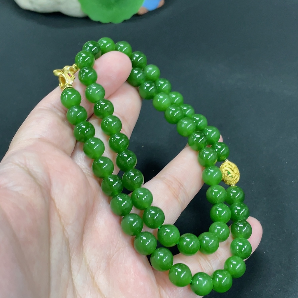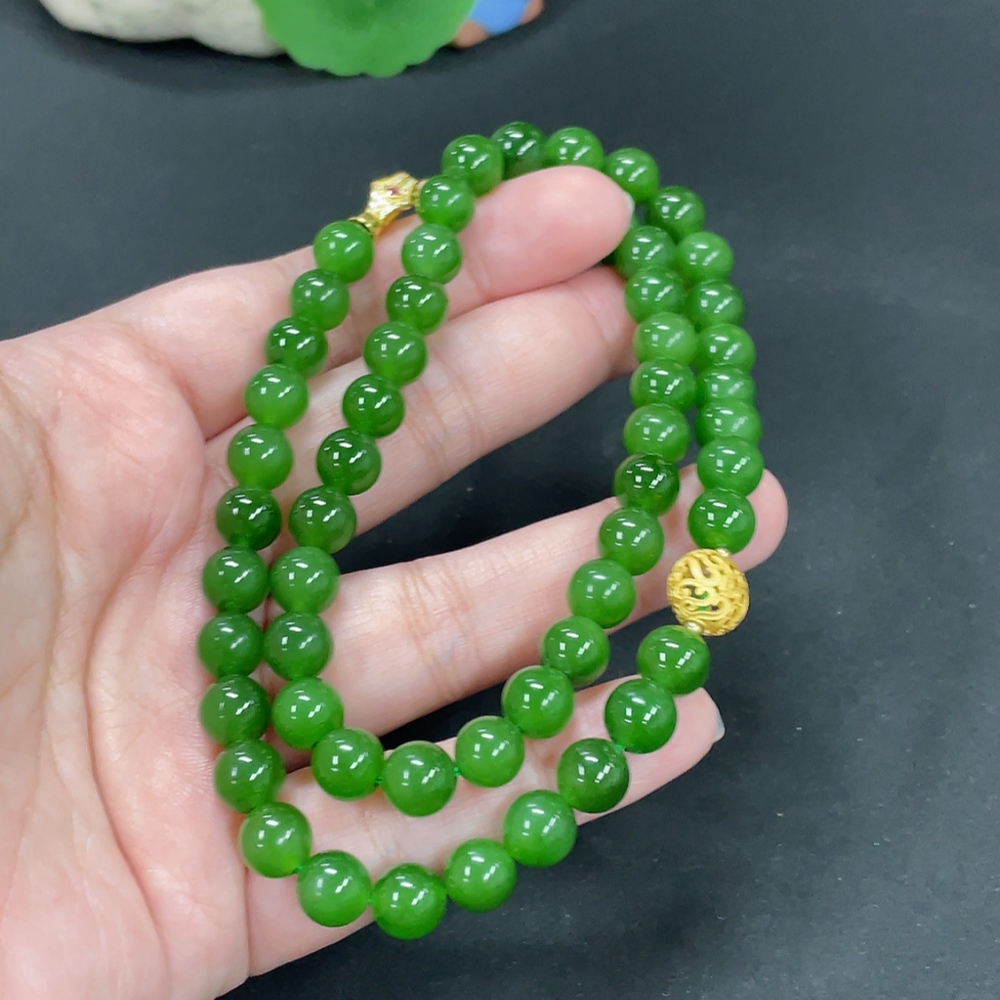 Hetian Jade Bead Necklace, Approx. 7.9mm, Non-Gold Inlaid, Total Weight Approx. 46.7g