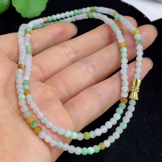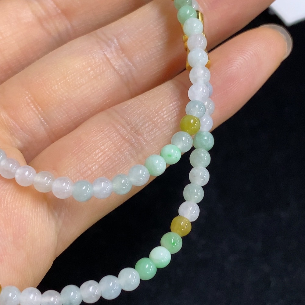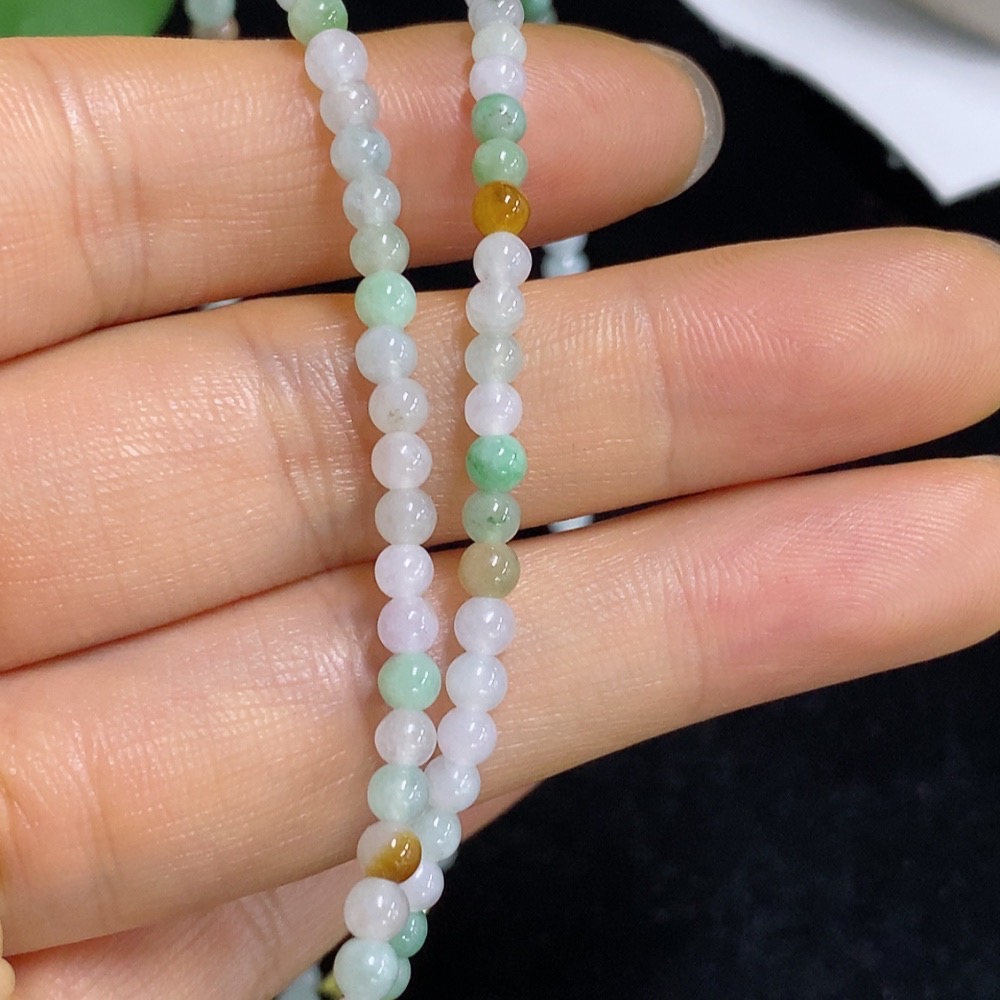 Jadeite Bead Necklace Approx. 3.5mm Non-Gold Total Weight About 13.55g