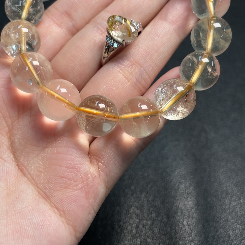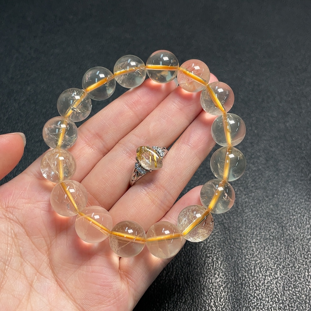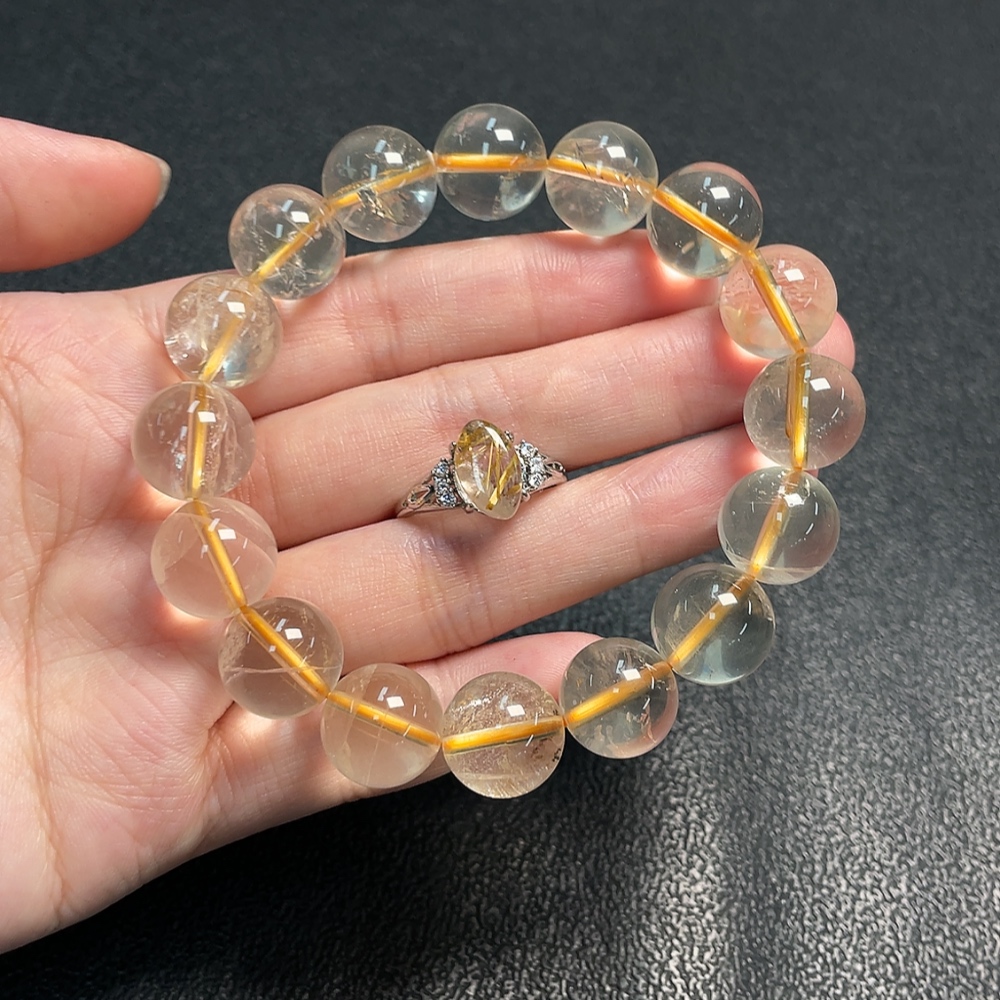 Crystal Bracelet + Ring Adjustable Non-Gold Total Weight Approx. 53g Sell as a Lot