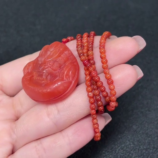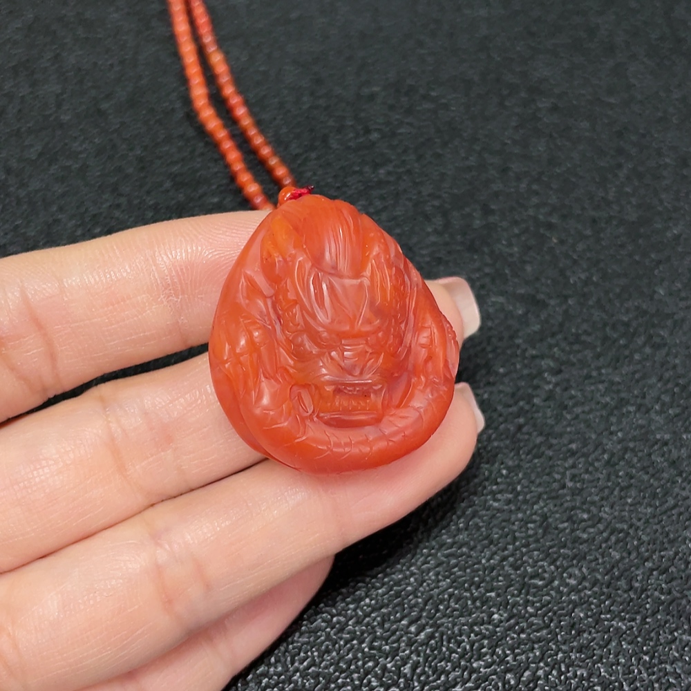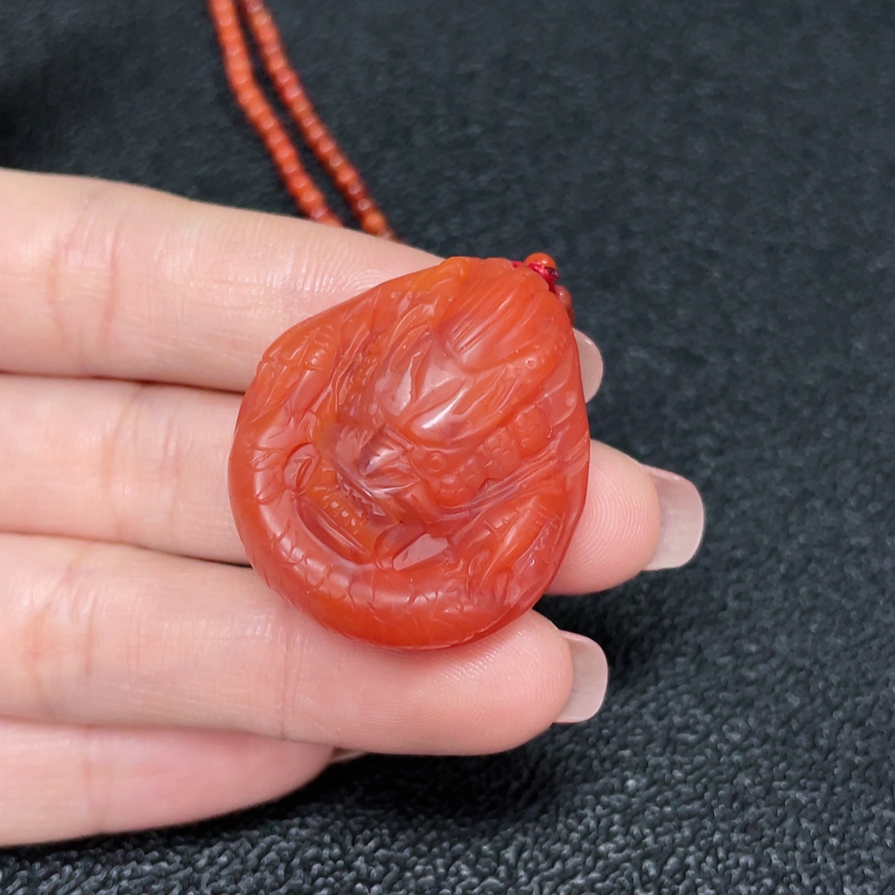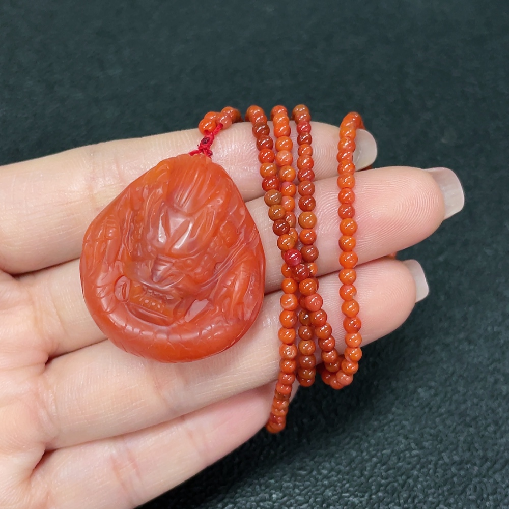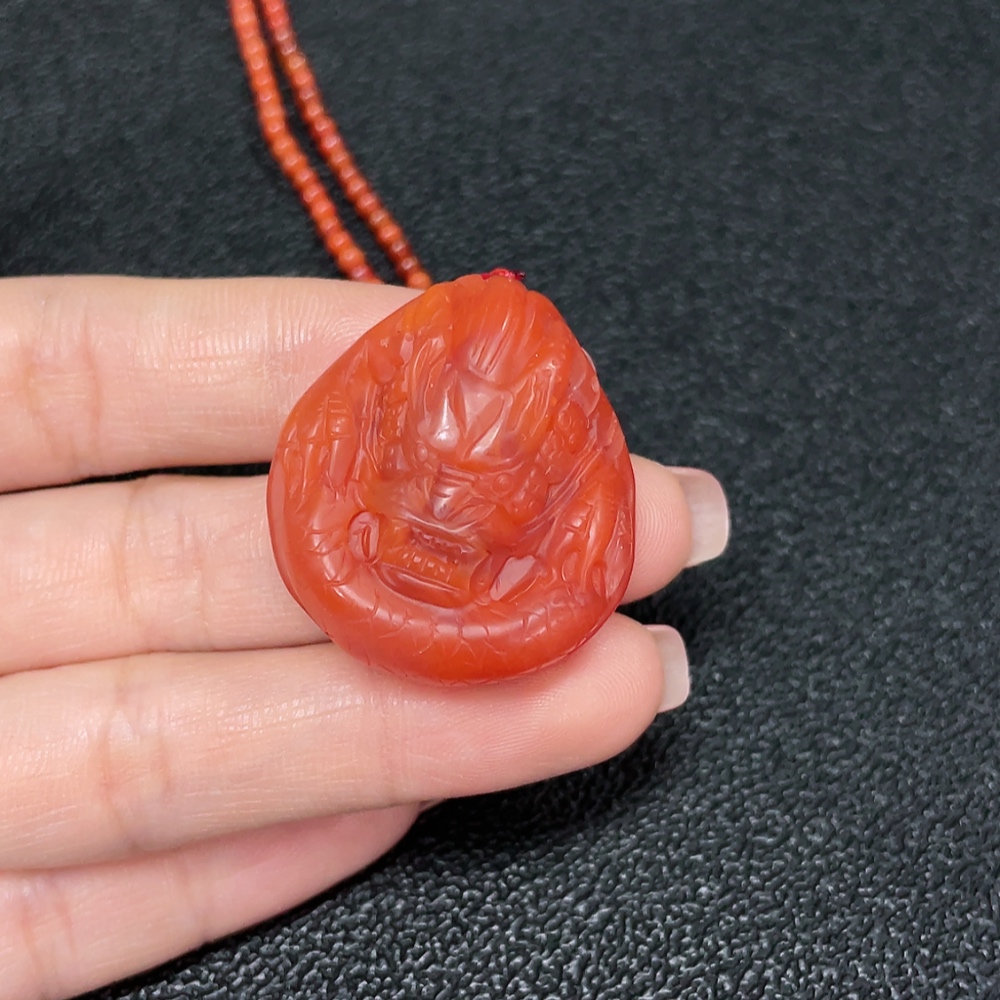 South Red Agate Pendant, Total Weight Approx. 23.83g Including Chain