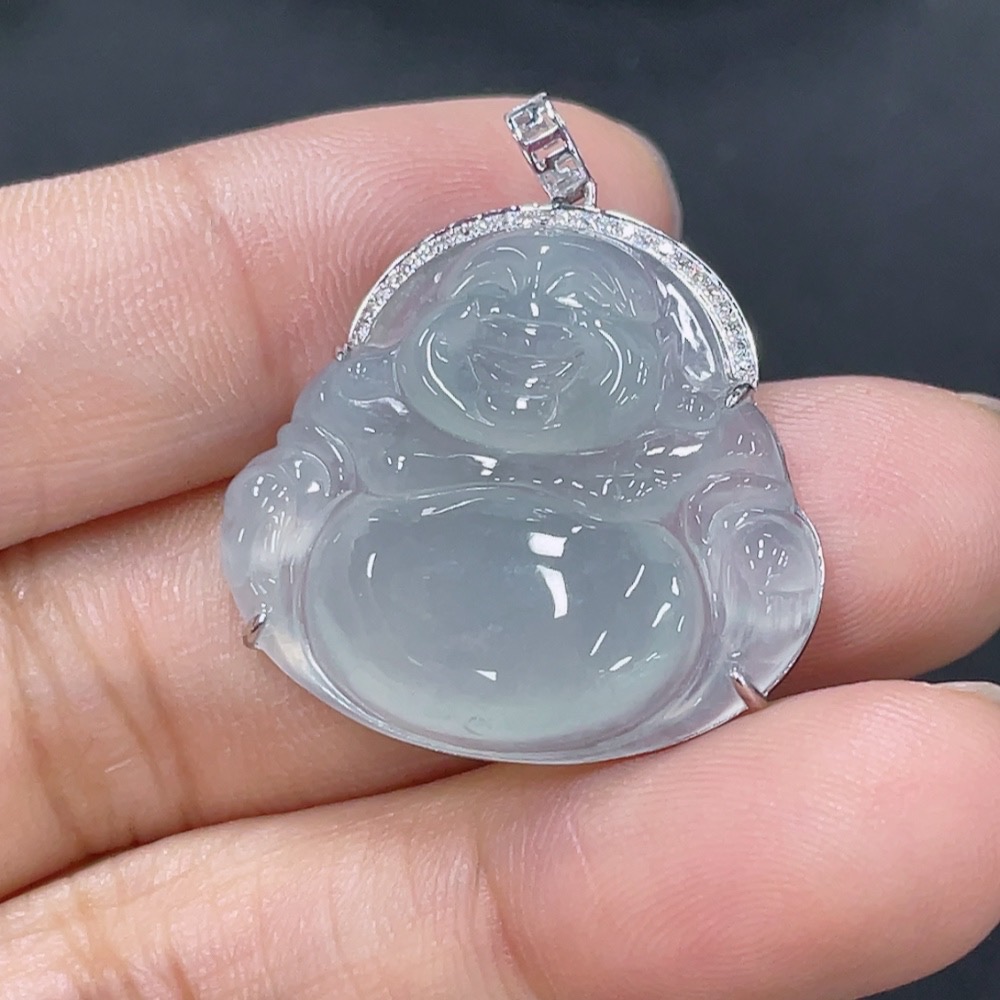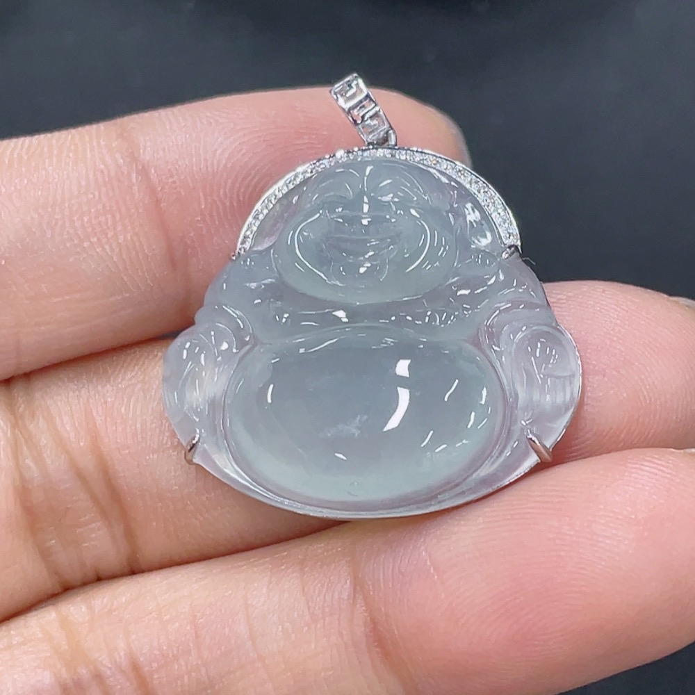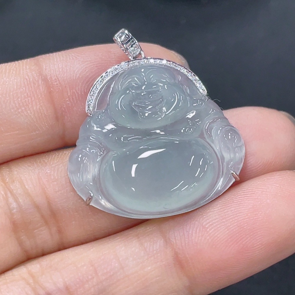 Jadeite Buddha Pendant Set in 18K Gold with Diamond Accents, Total Weight Approx. 4.59g