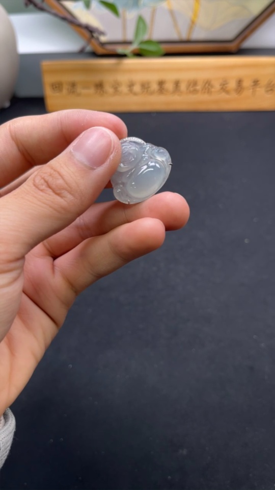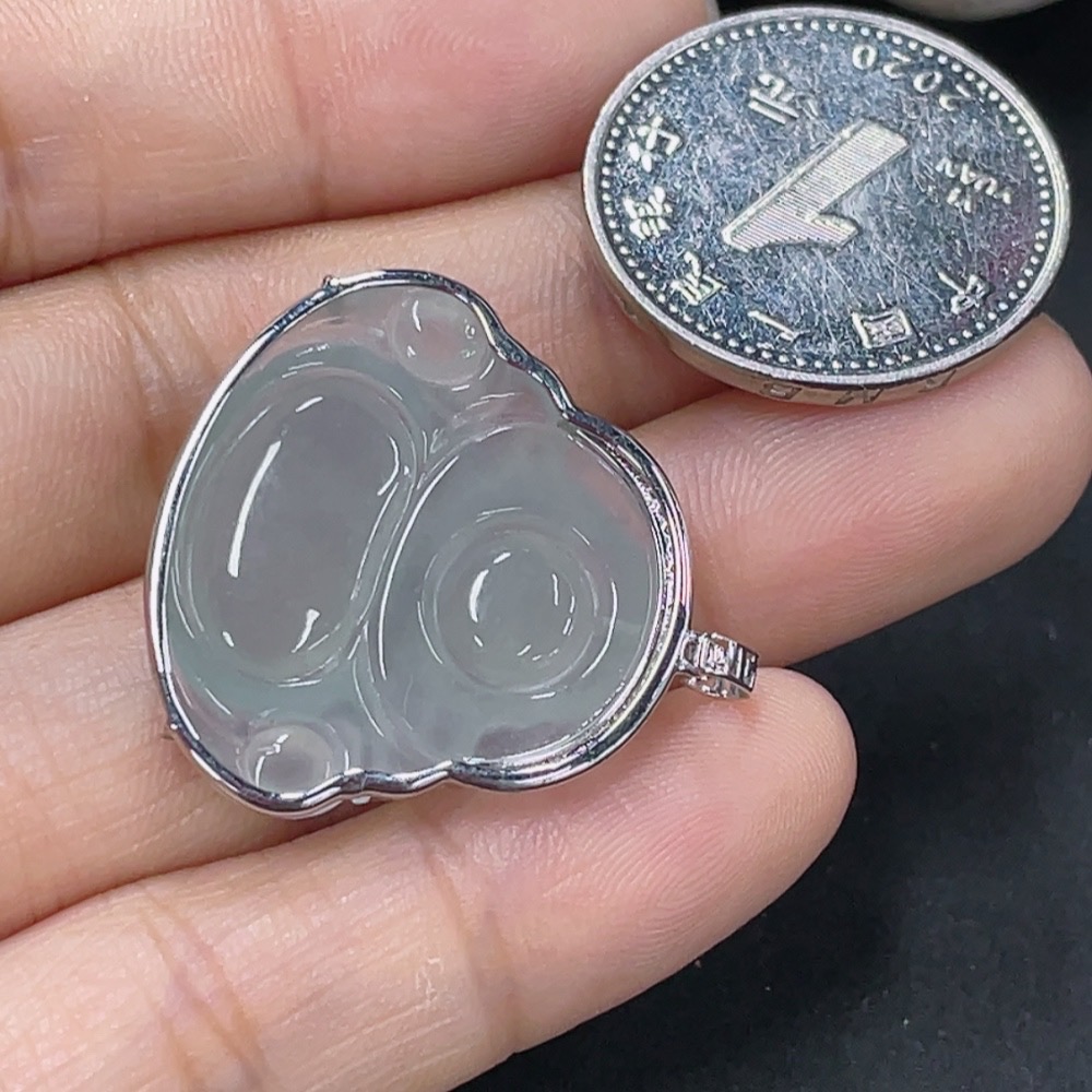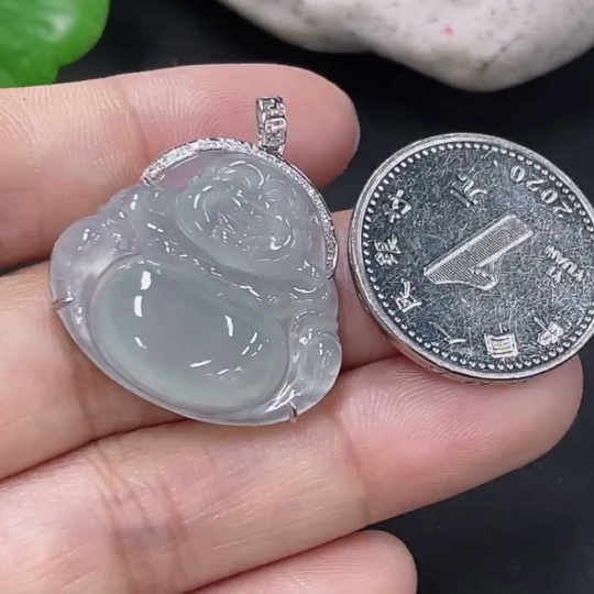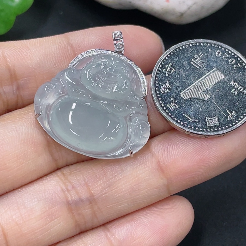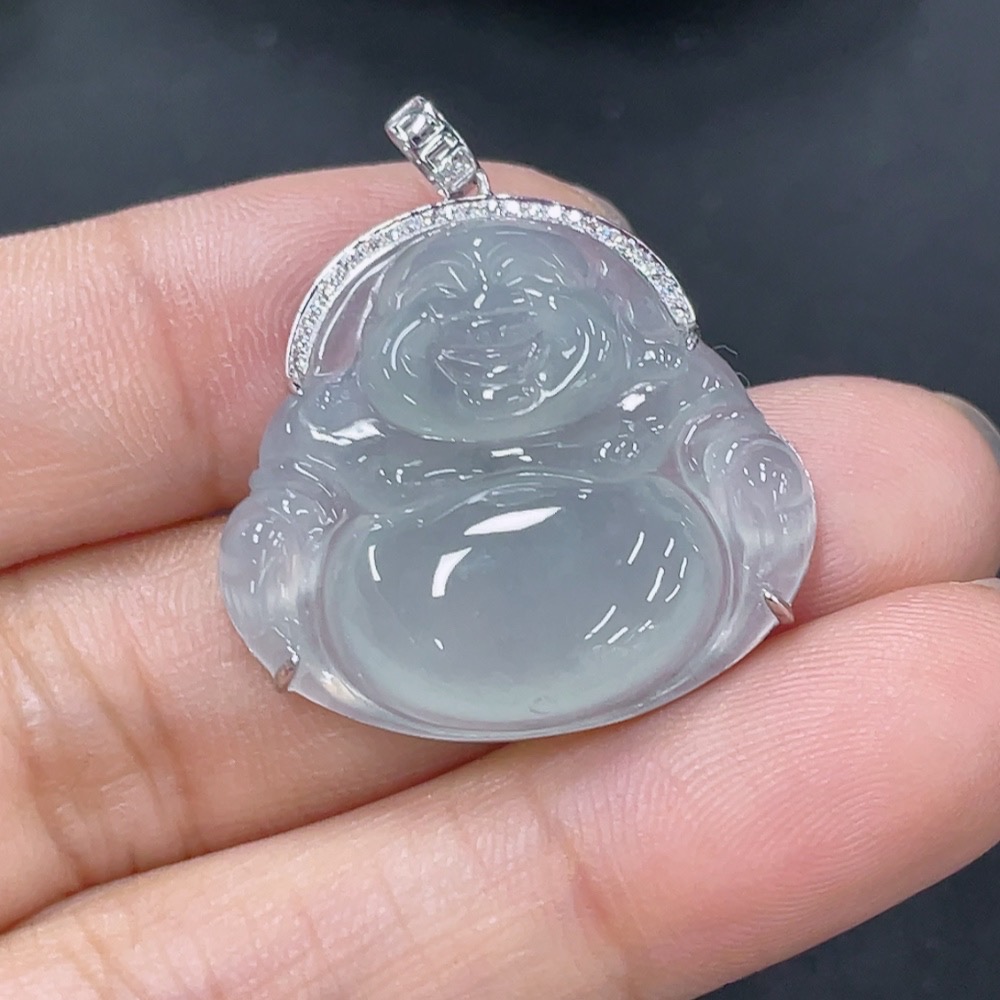 Jadeite Buddha Pendant Set in 18K Gold with Diamond Accents, Total Weight Approx. 4.59g