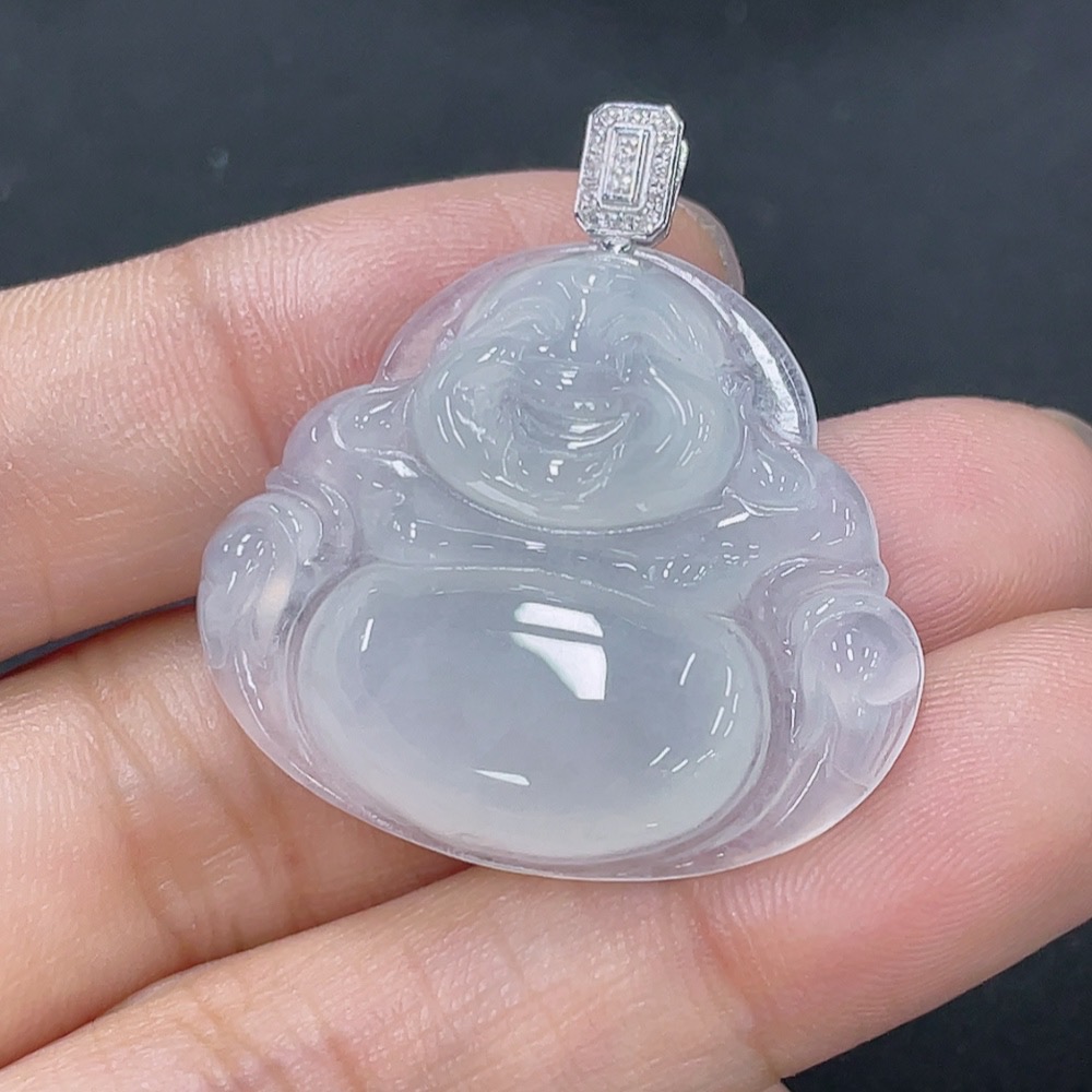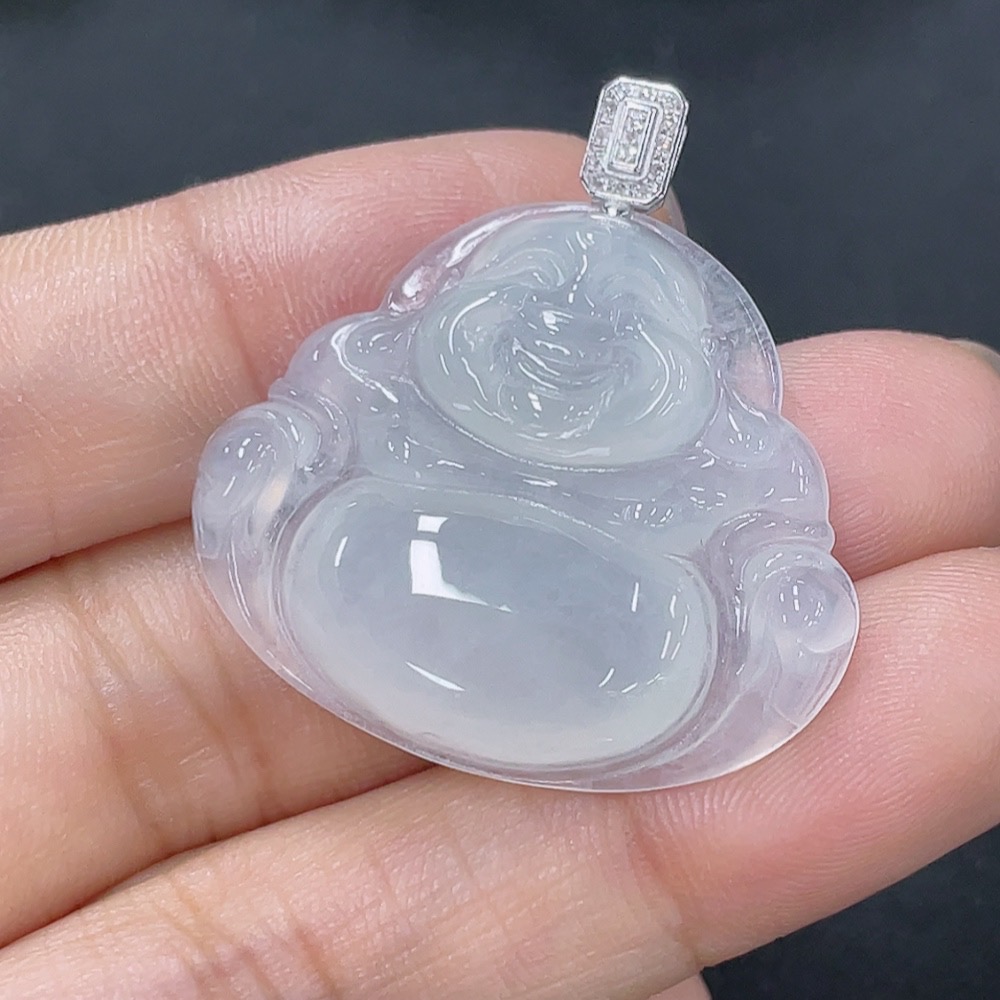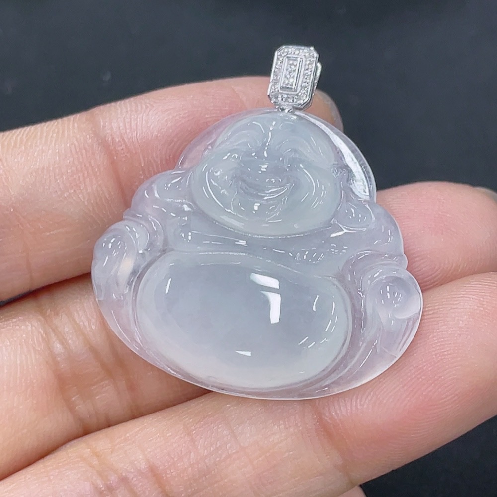 Jadeite Buddha Pendant with 18k Gold and Diamond Accents, Total Weight Approximately 6.35g