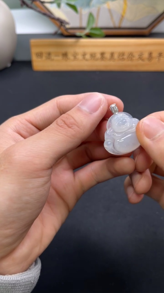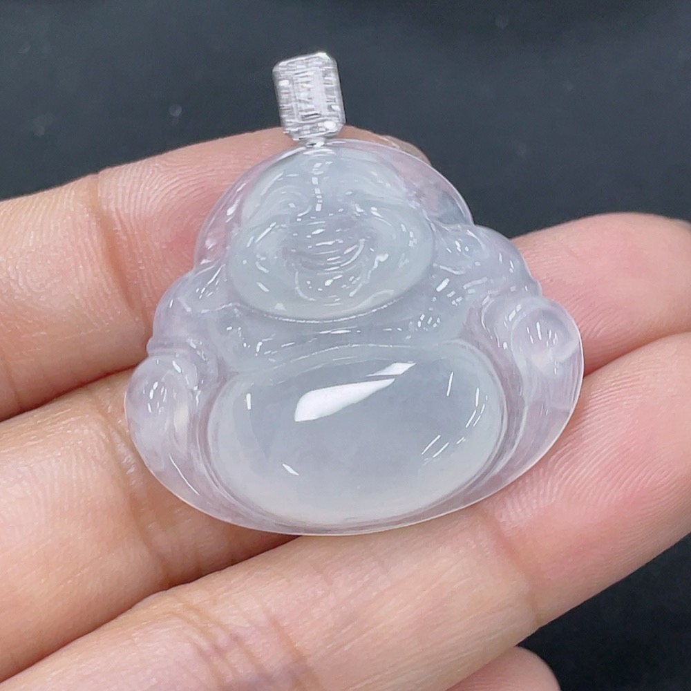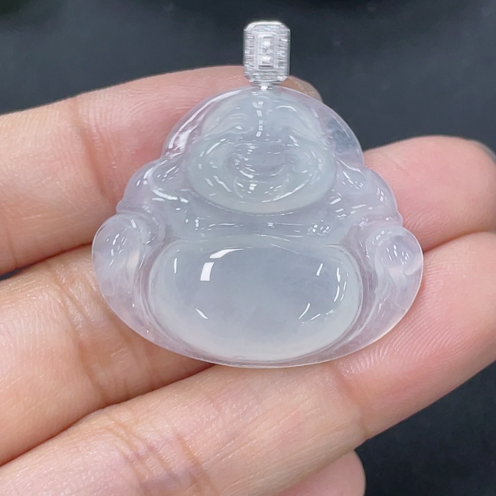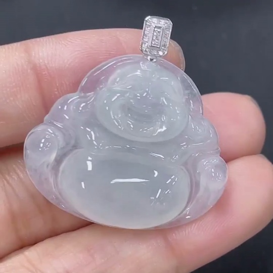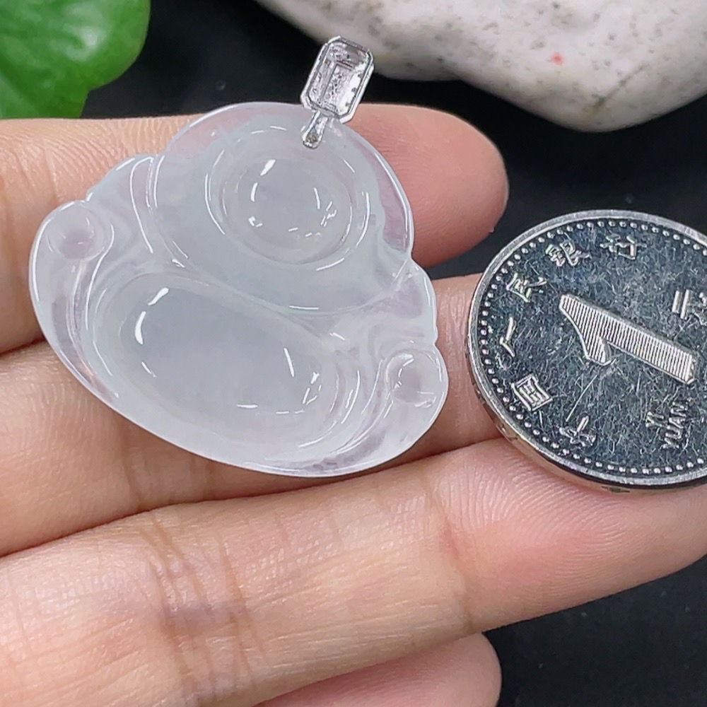 Jadeite Buddha Pendant with 18k Gold and Diamond Accents, Total Weight Approximately 6.35g