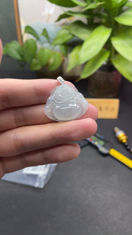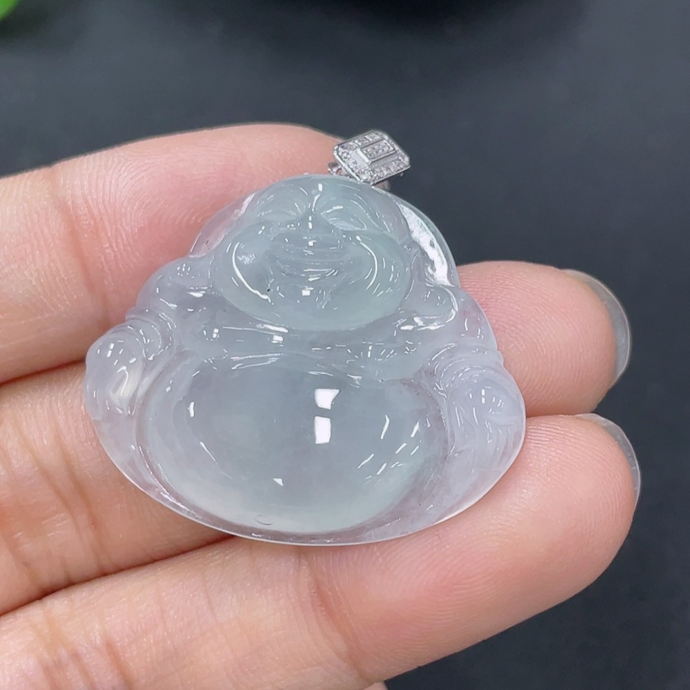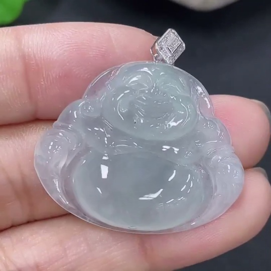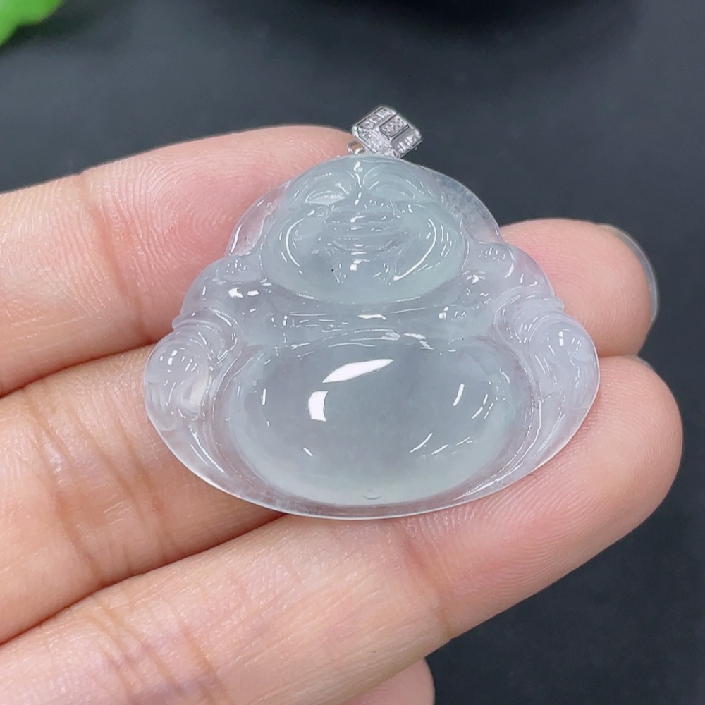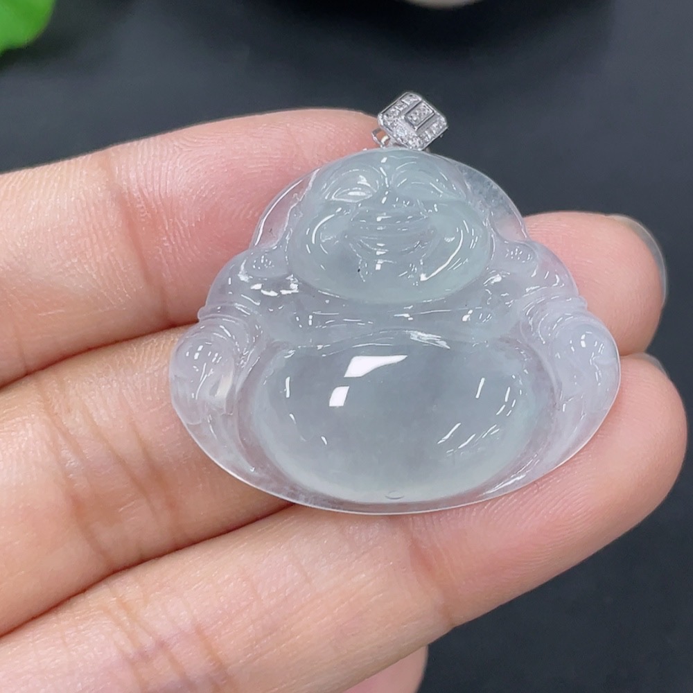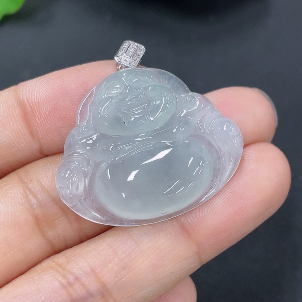 Jadeite Buddha Pendant with 18K Gold and Diamond Accents, Total Weight Approximately 5.85g