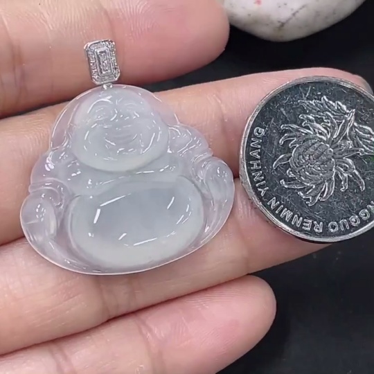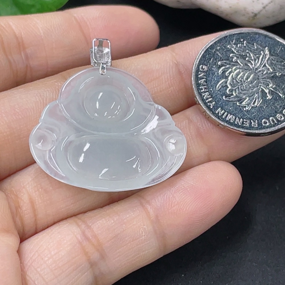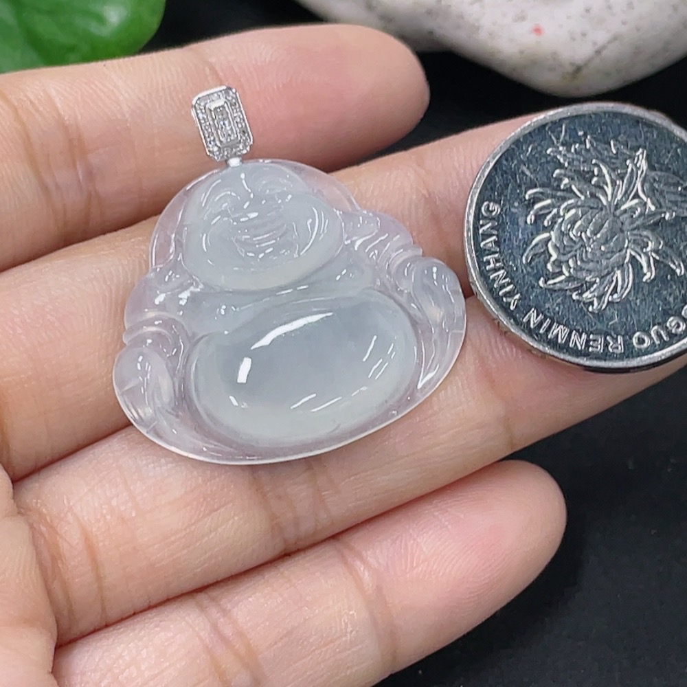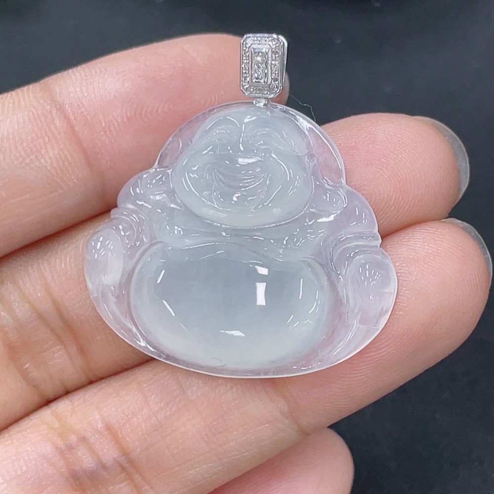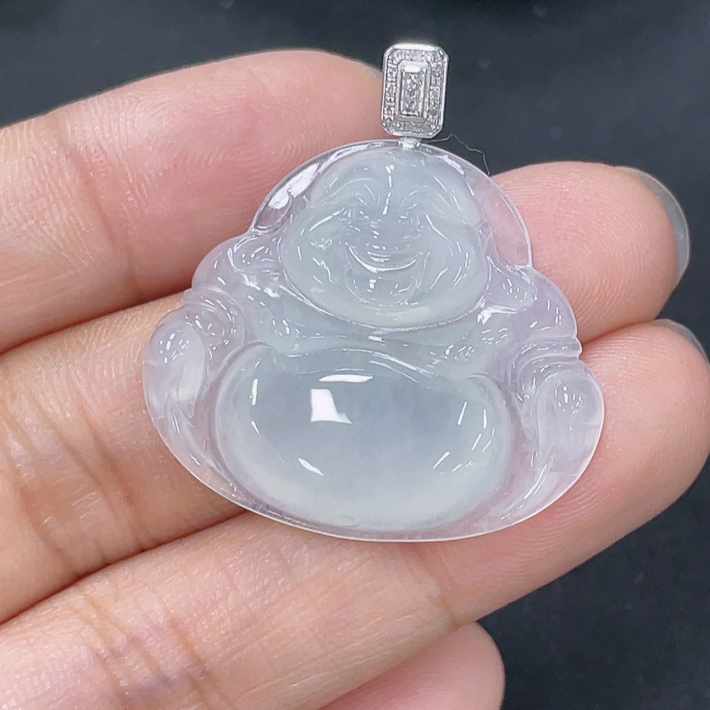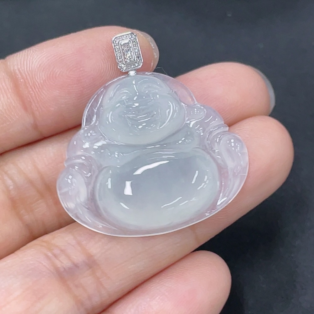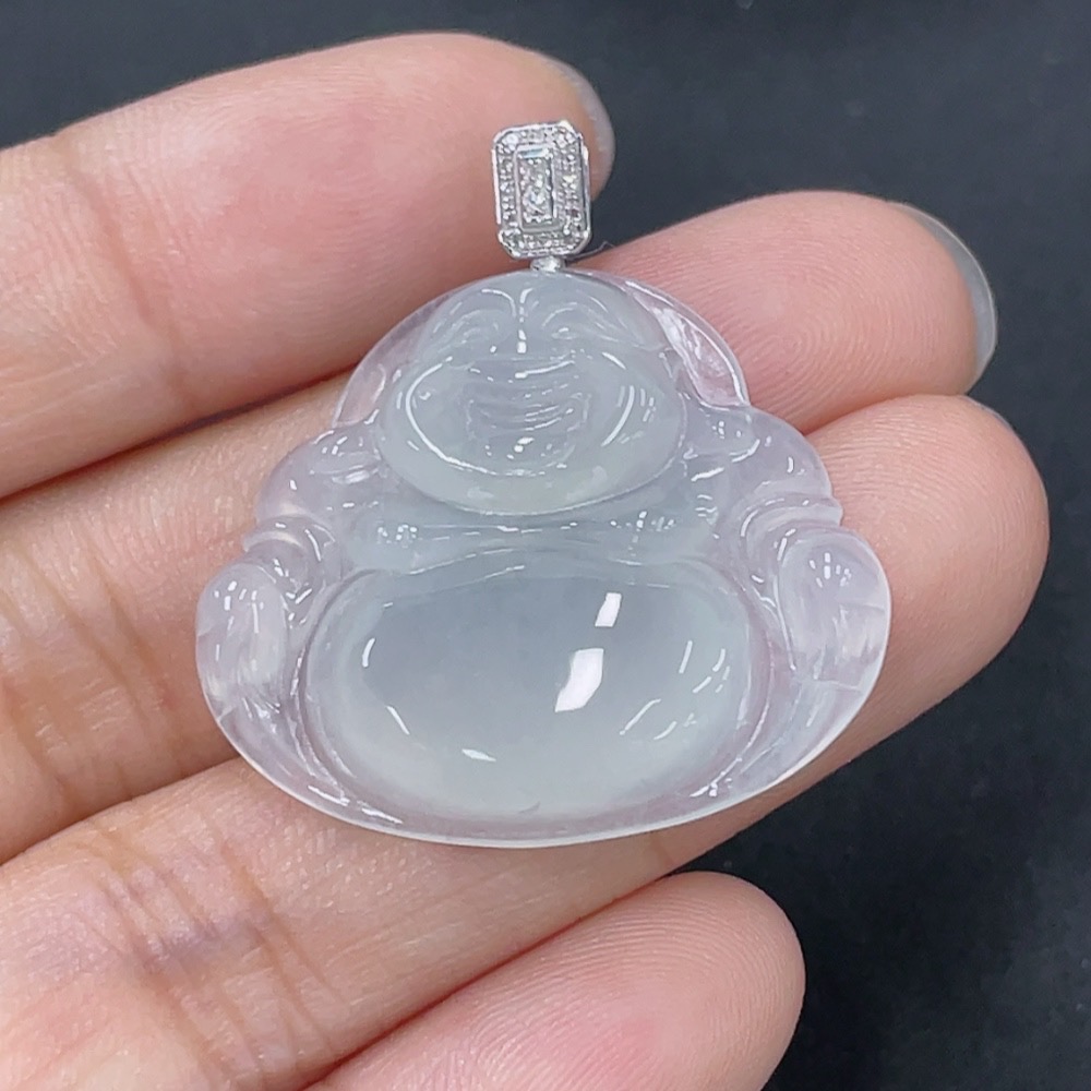 Jadeite Buddha Pendant with 18K Gold and Diamond Accents, Total Weight Approximately 5.21g