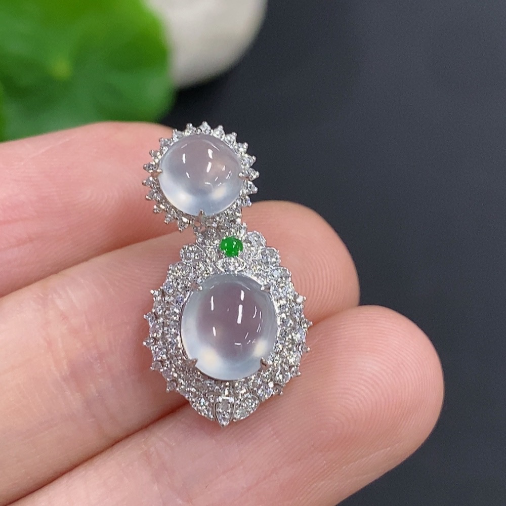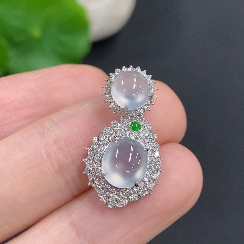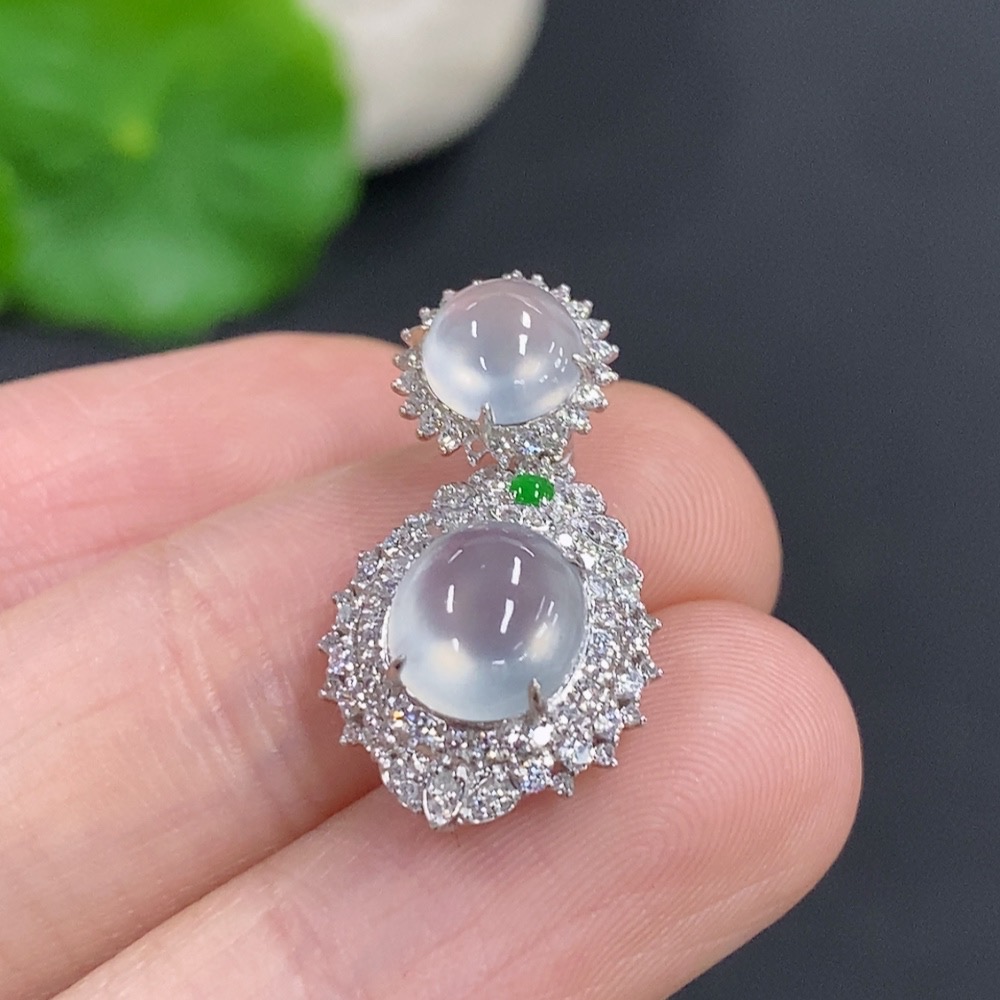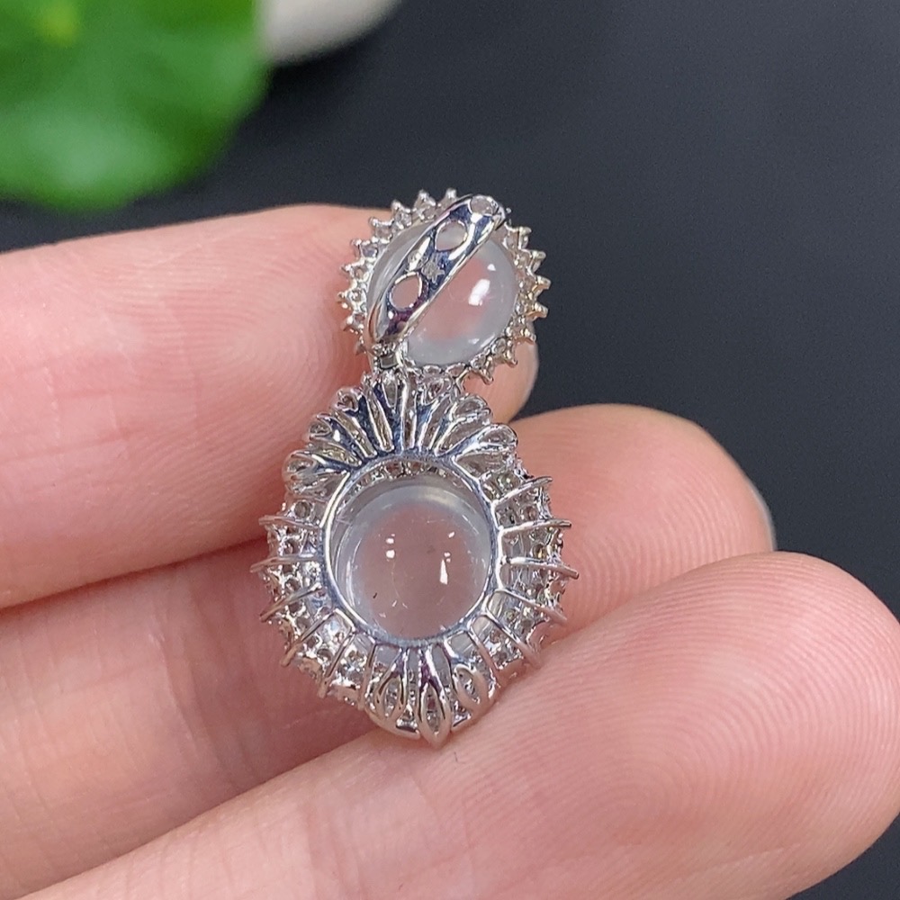 Jadeite Bezel-set Cabochon Pendant with 18k Gold and Diamond Accents, Total Weight Approx. 2.32g