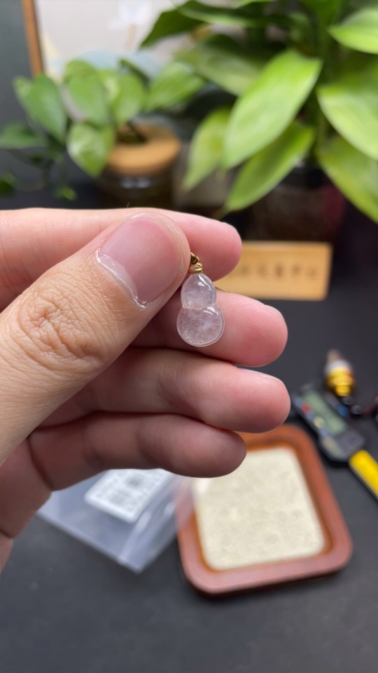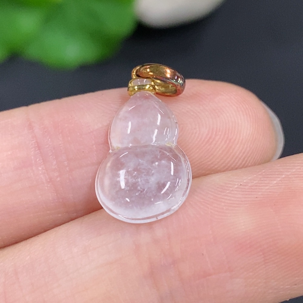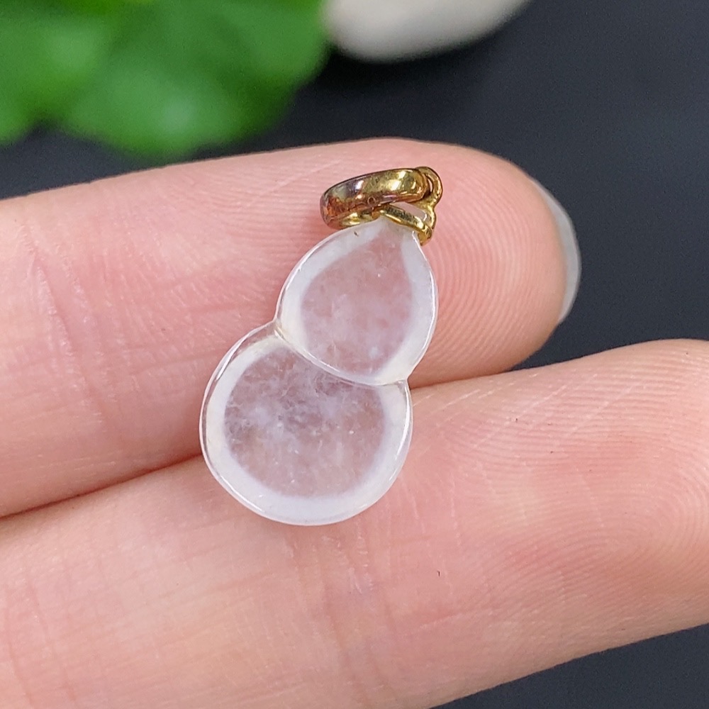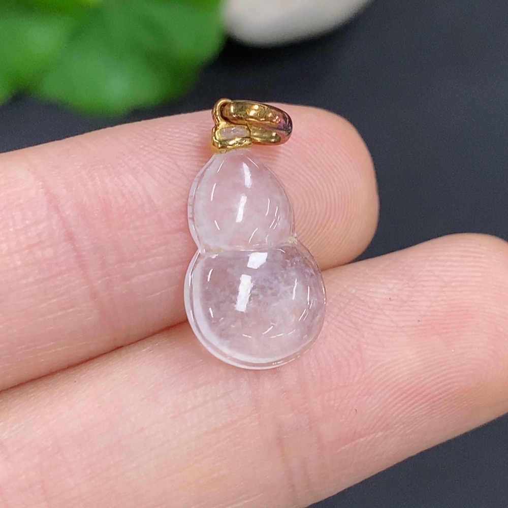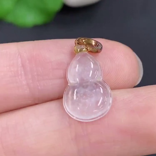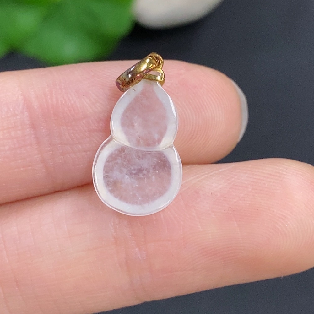 Jadeite Gourd Pendant with 18K Gold Clasp (black part uncertain) Total Weight Approximately 1g