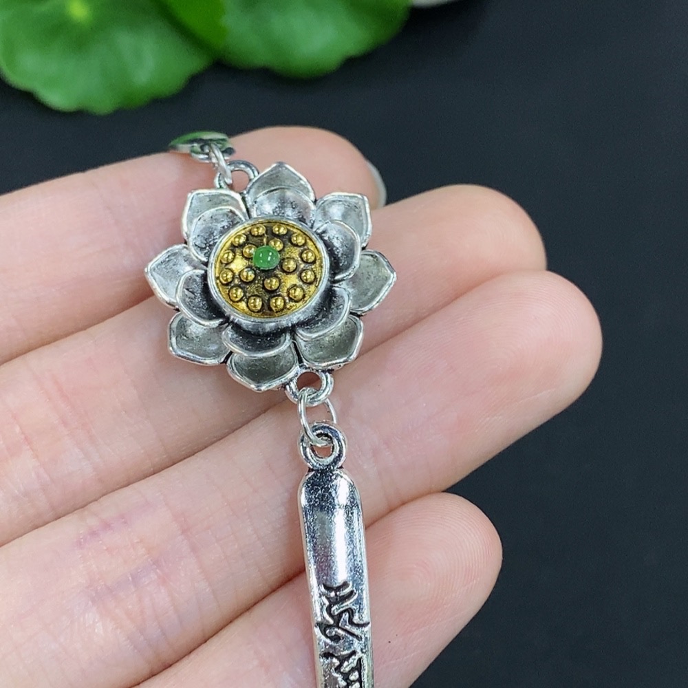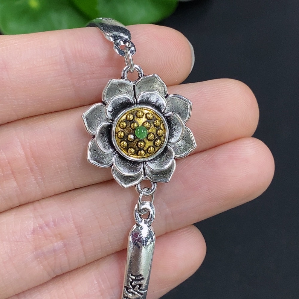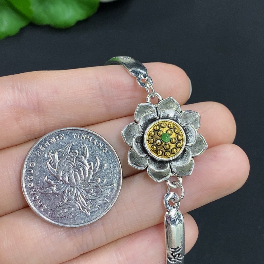 Jadeite Cabochon Inlay Bracelet Non-Gold Inlay Total Weight Approx. 11.5g