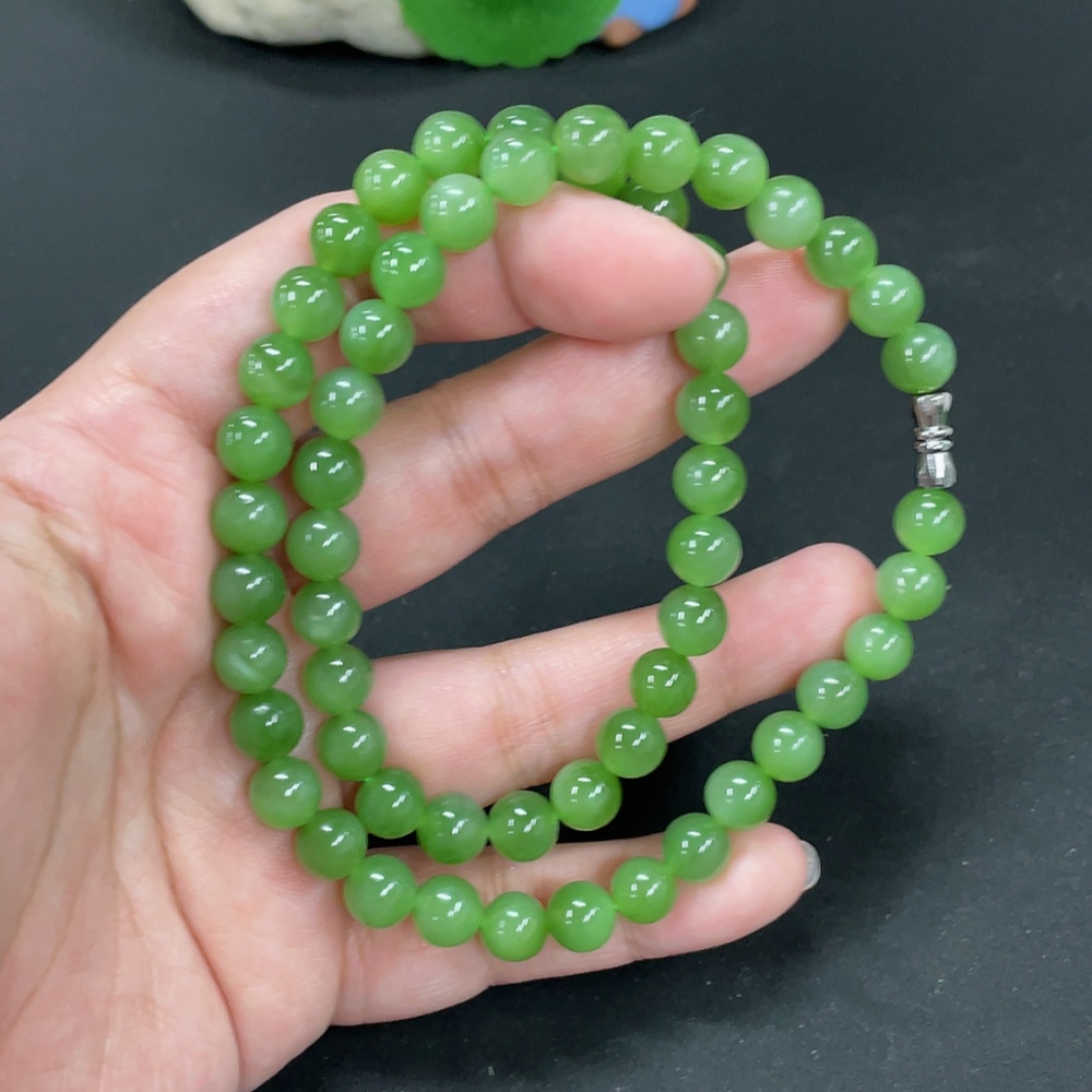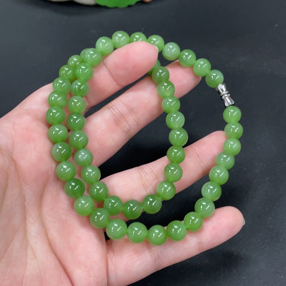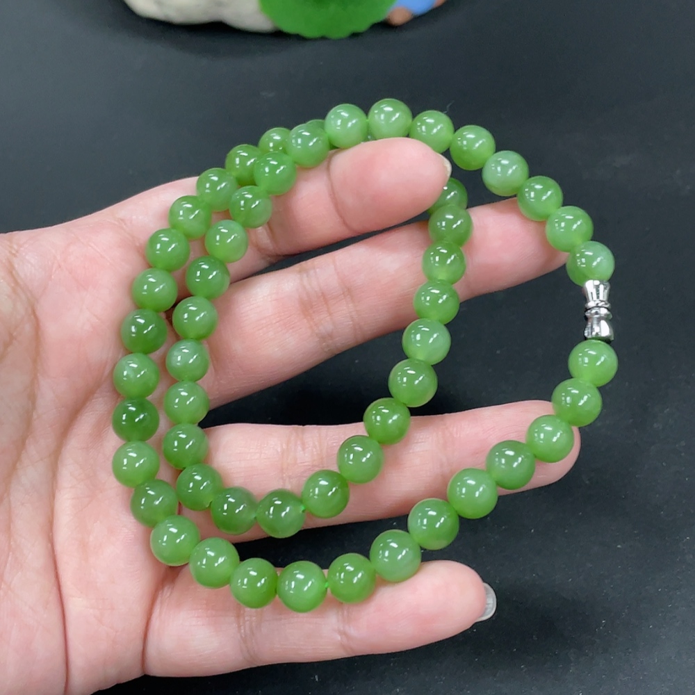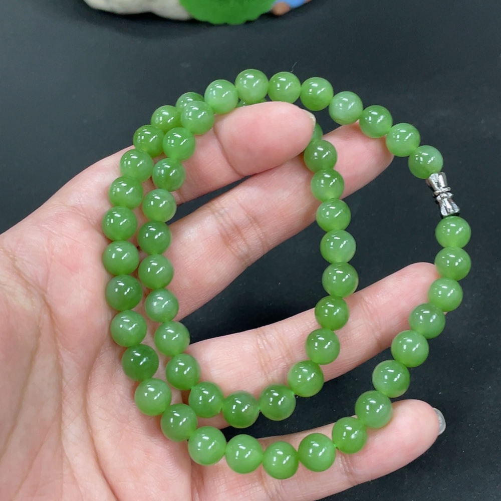 Hetian Jade Jasper Bead Necklace Approx. 7.6mm Total Weight Approx. 43.7g