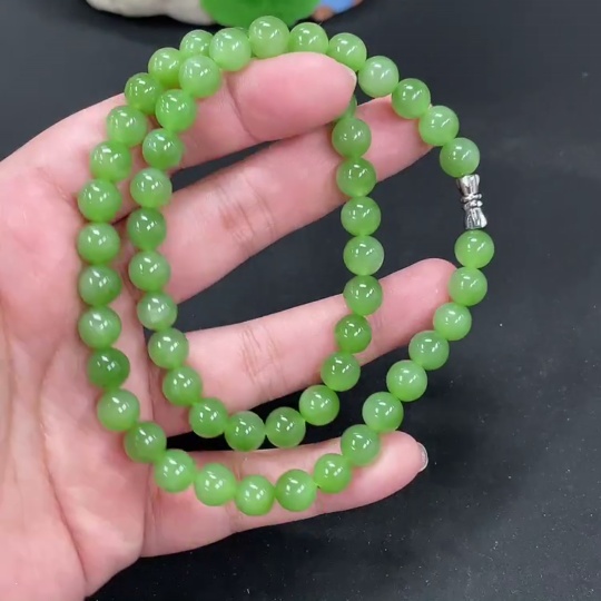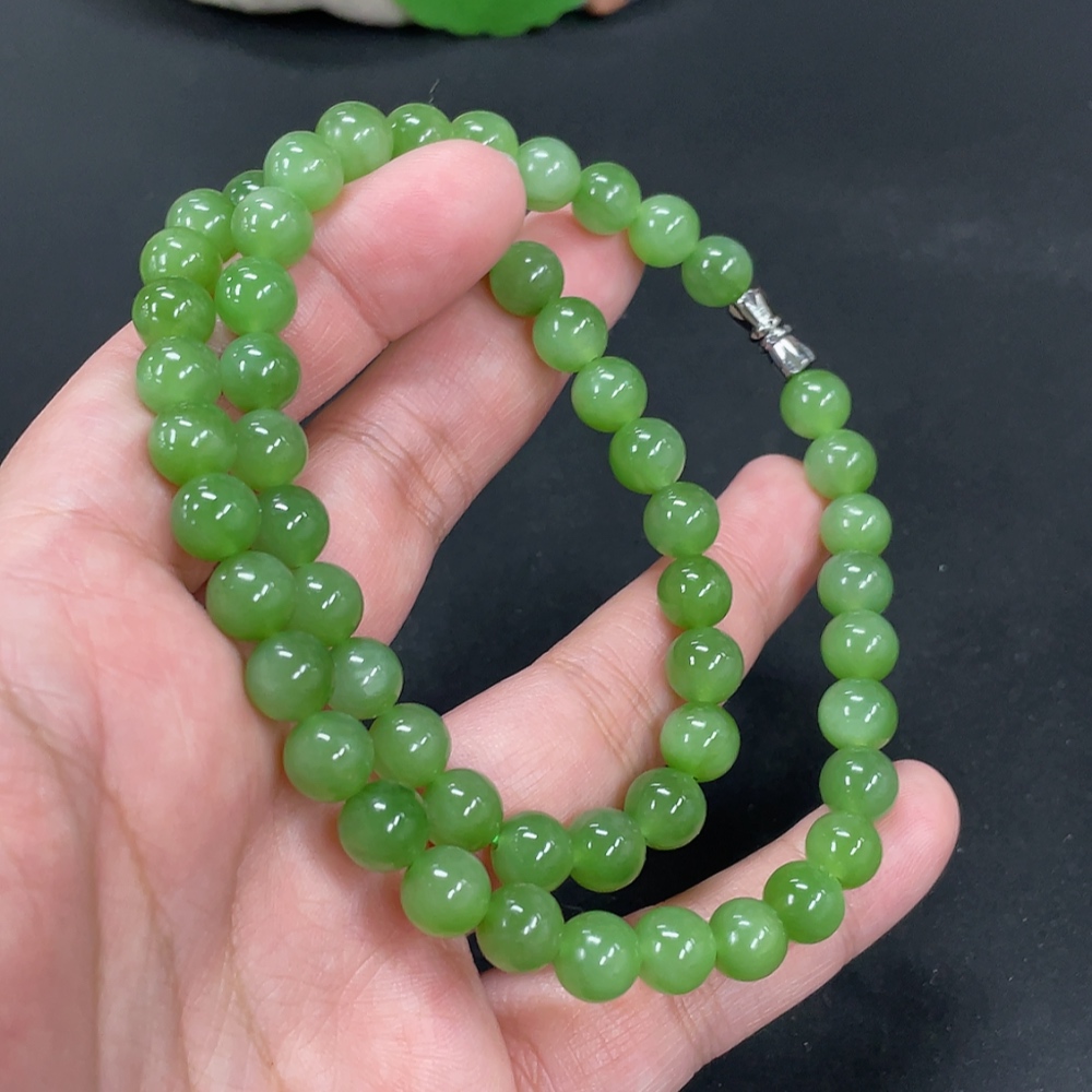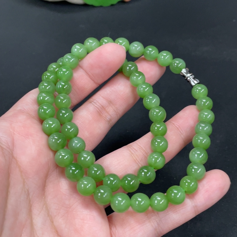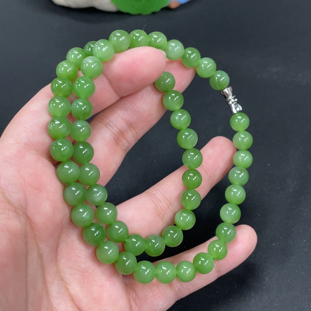 Hetian Jade Jasper Bead Necklace Approx. 7.6mm Total Weight Approx. 43.7g