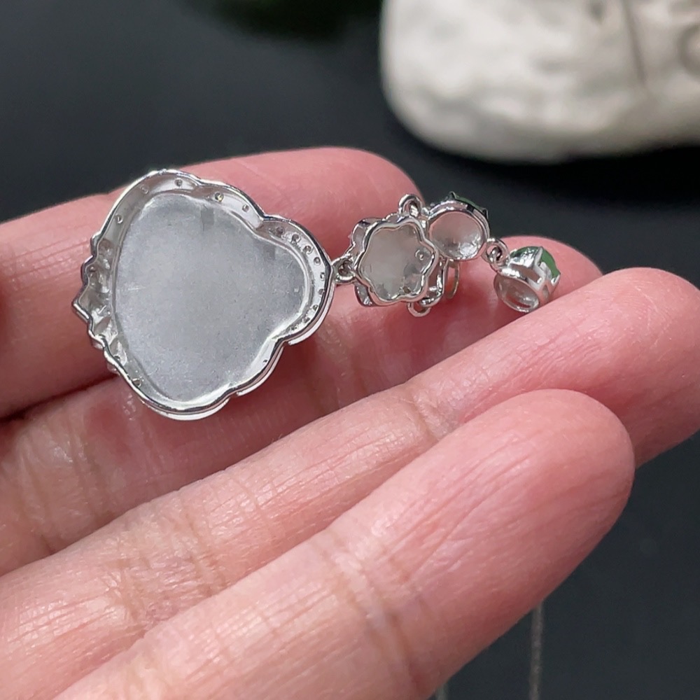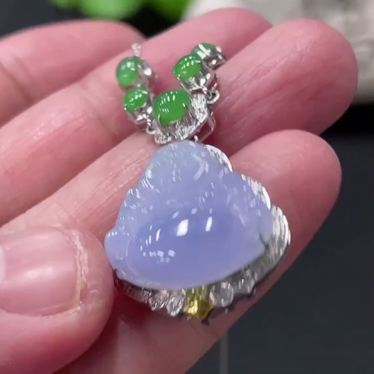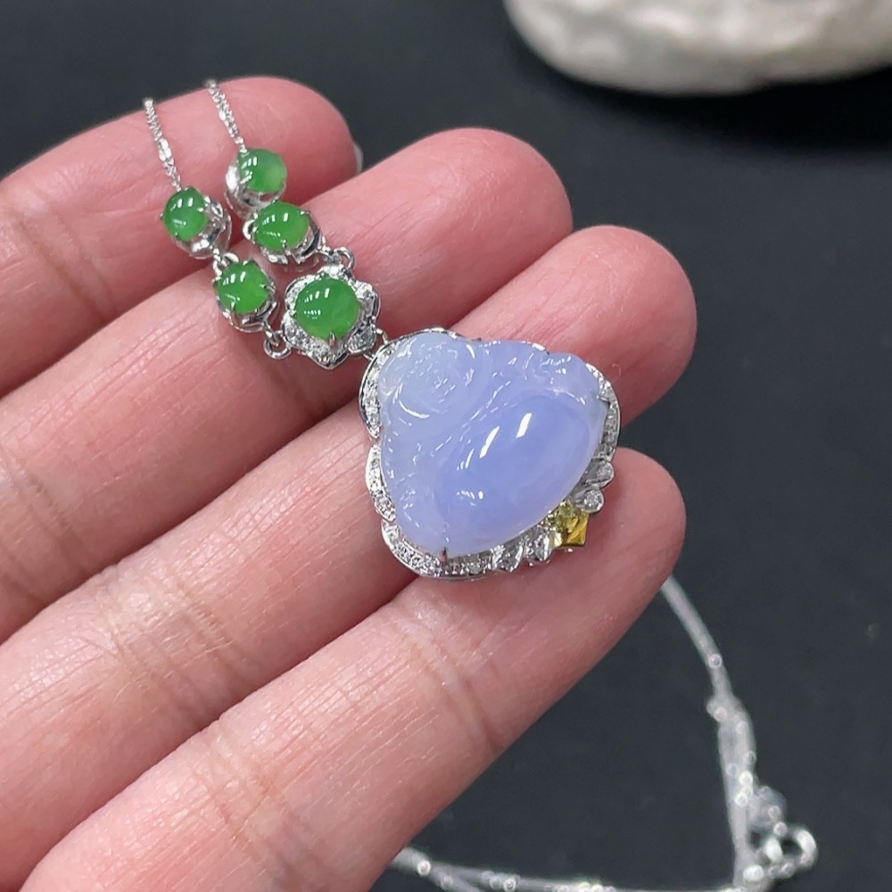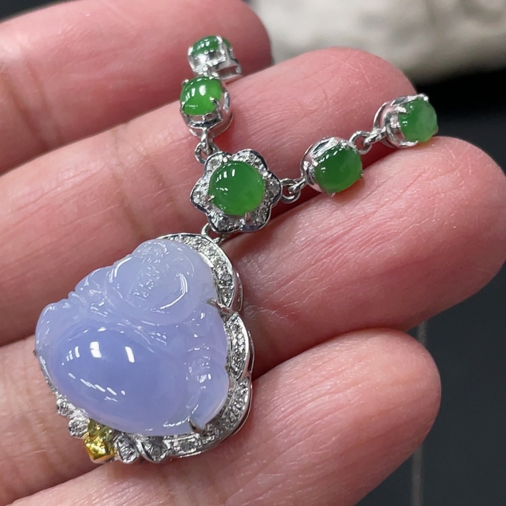 Jadeite Inlaid Buddha Pendant with 18k Gold and Colorless Diamonds, Total Weight Approximately 5.87g Including Chain