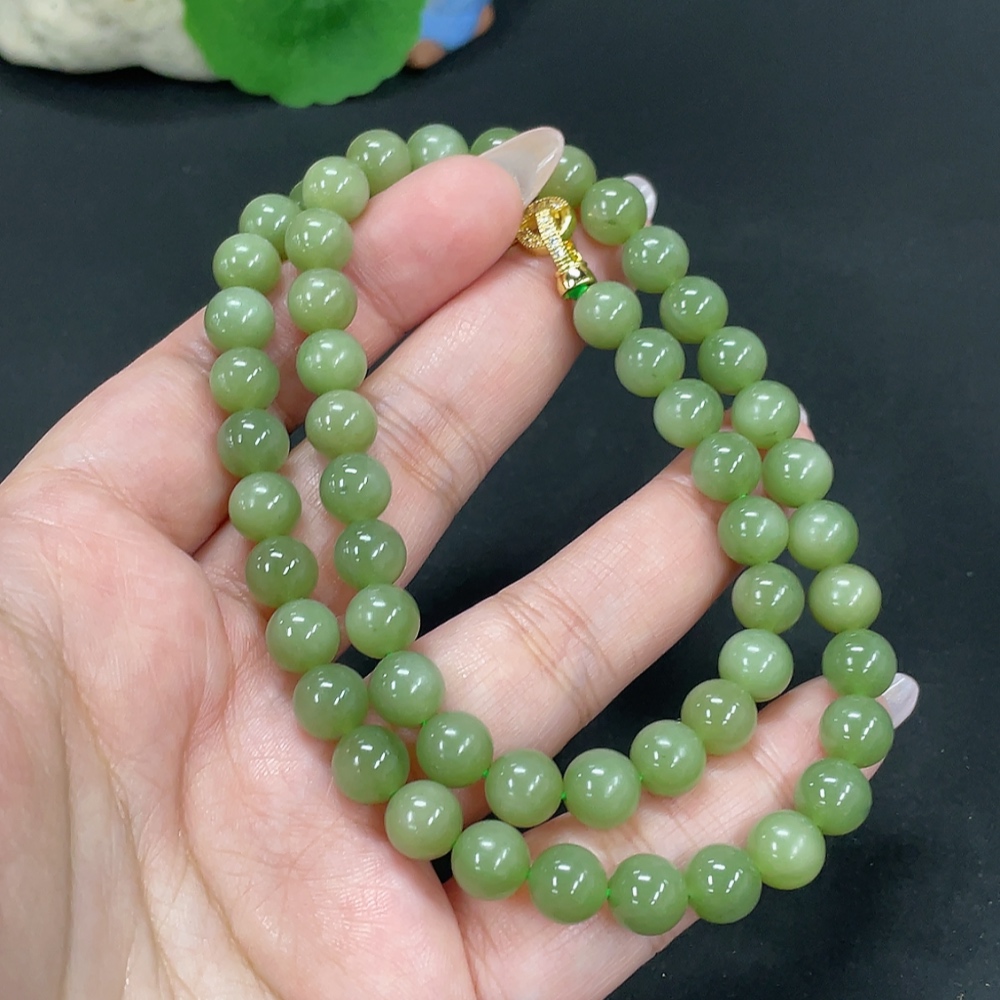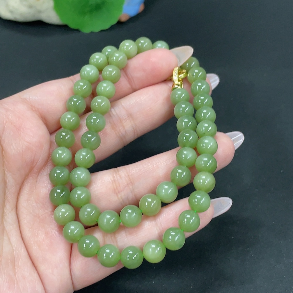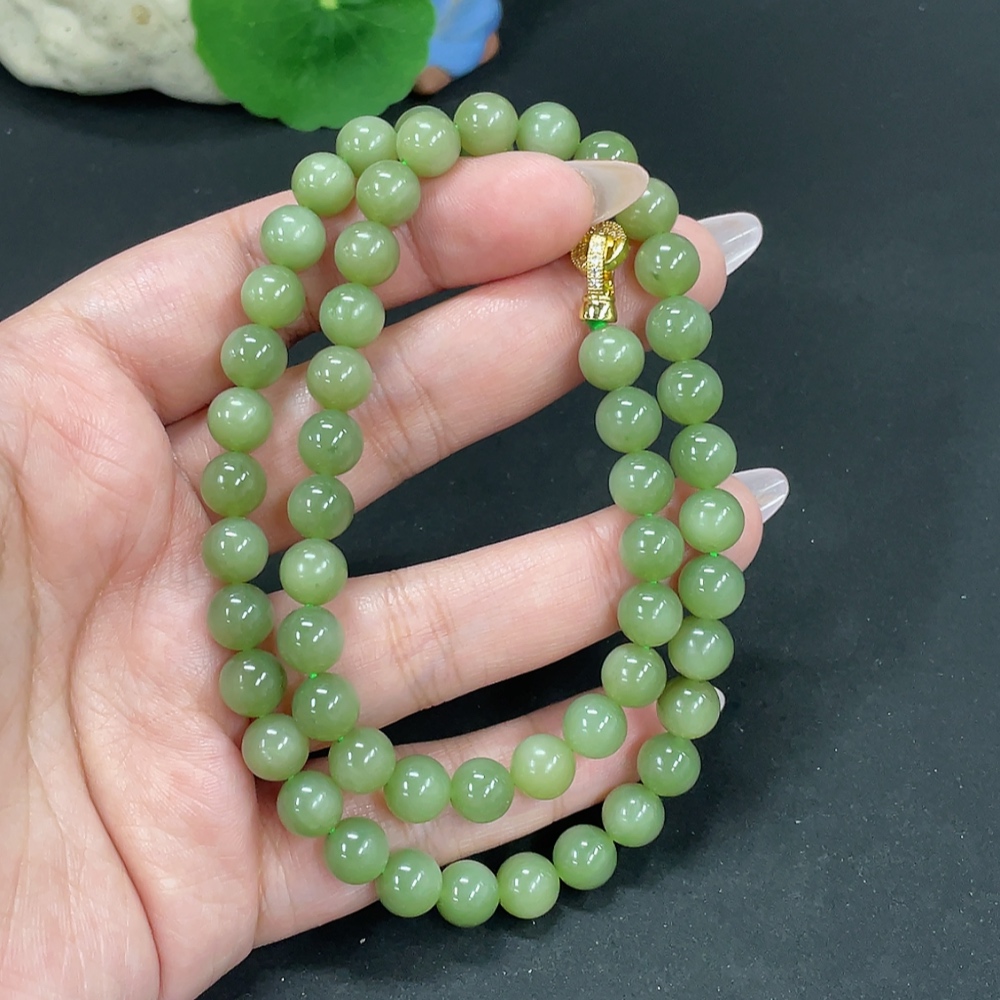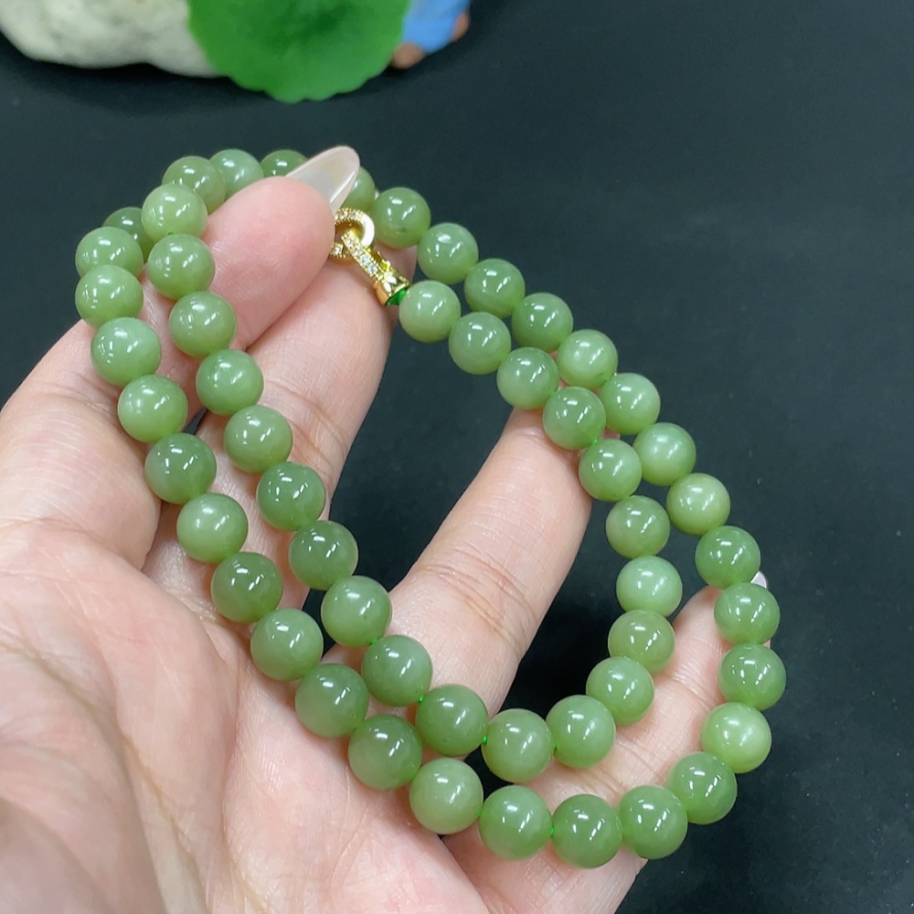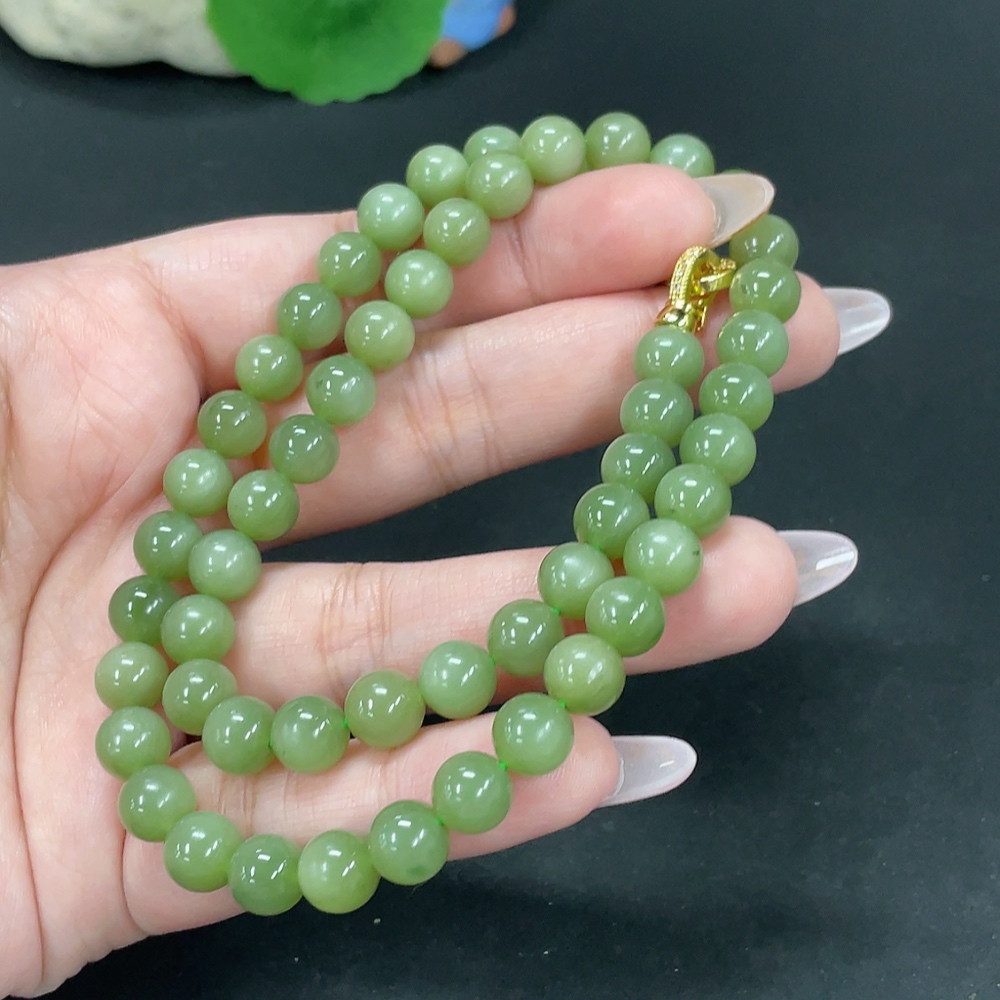 Hetian Jade Jasper Bead Necklace Approx. 7.7mm Total Weight About 43g Non-Gold