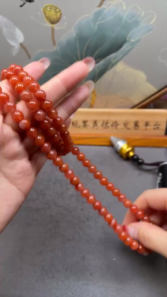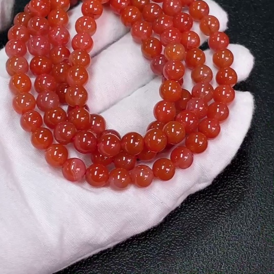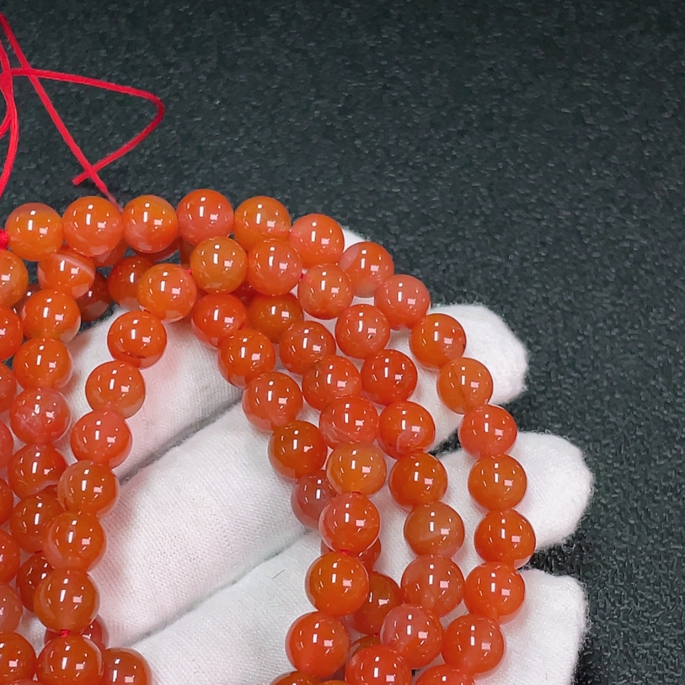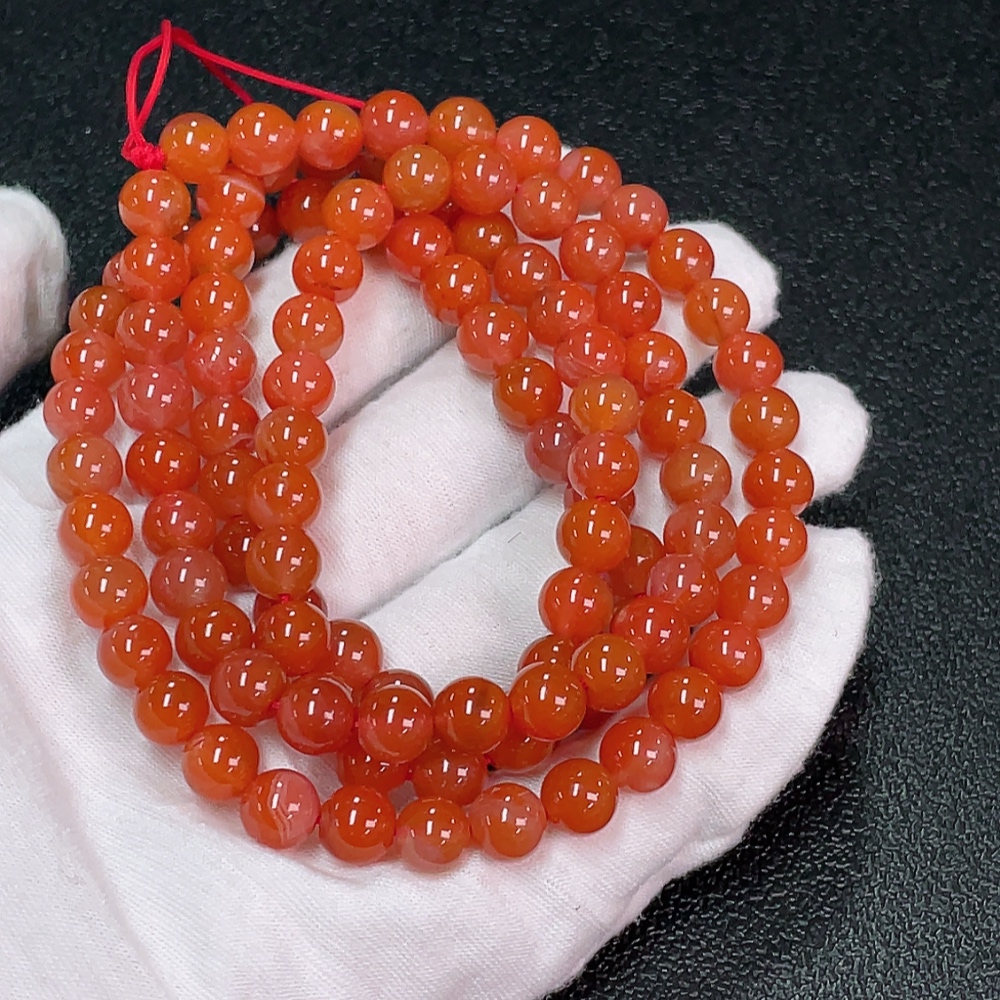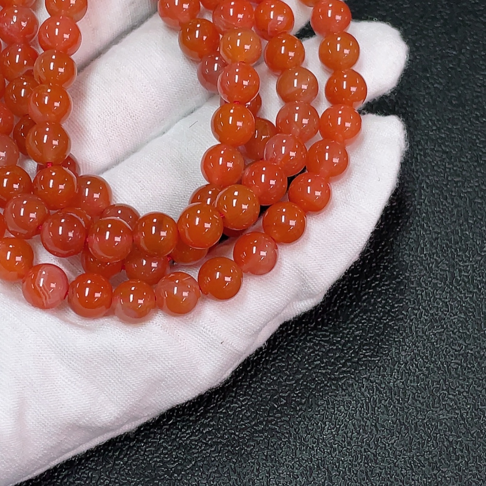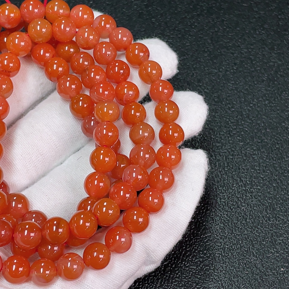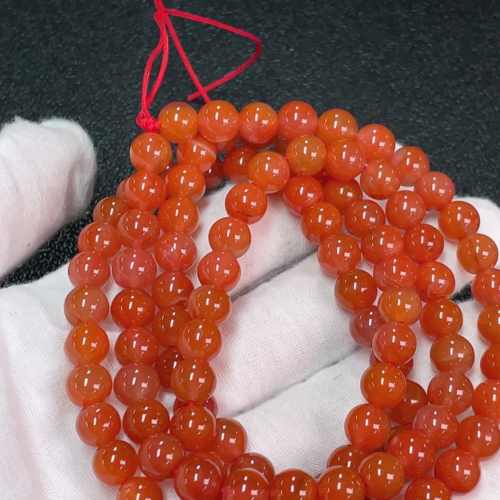 South Red Agate Bead Strand with Visible Organic Matter, Total Weight Approximately 66.83g, Size About 7.6mm