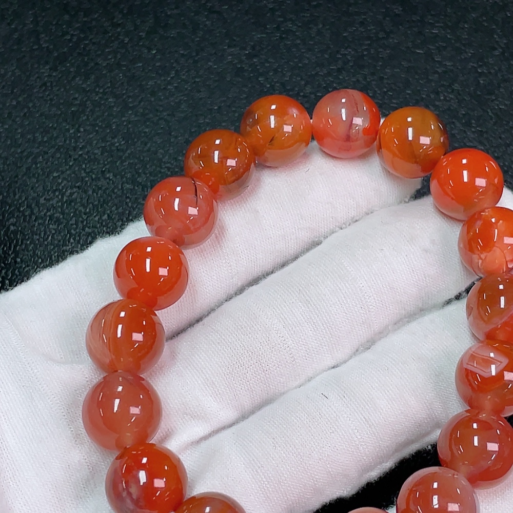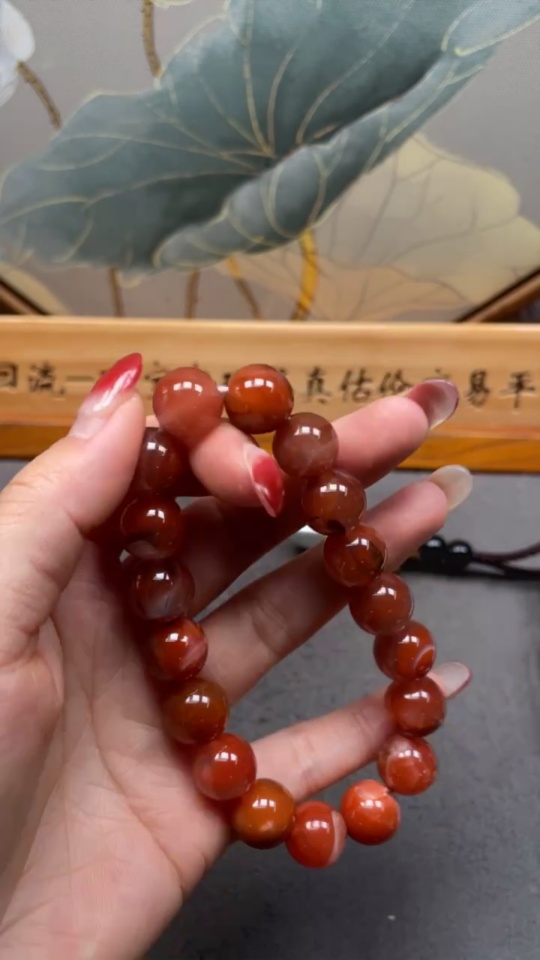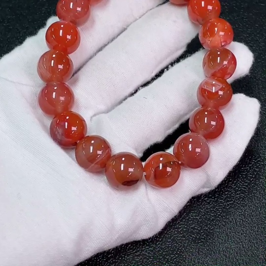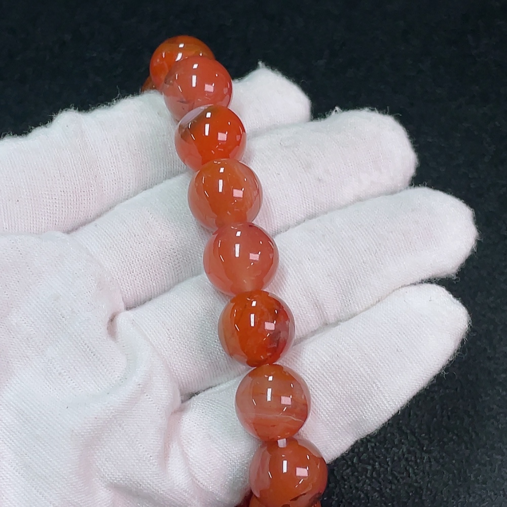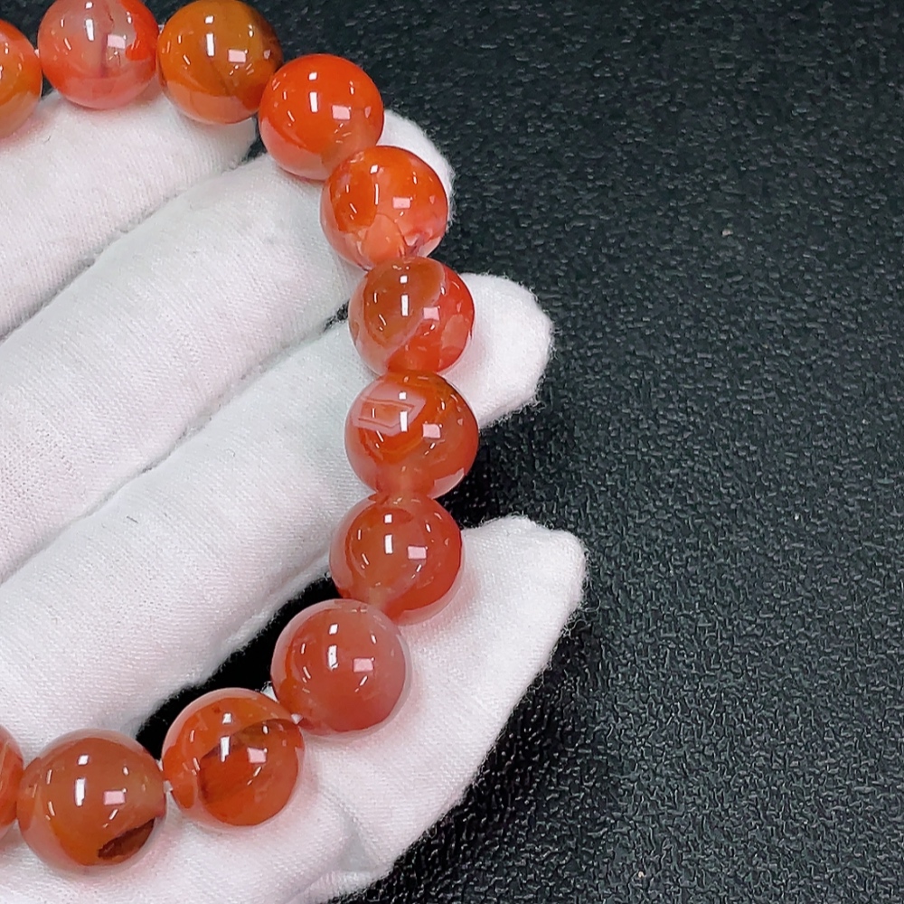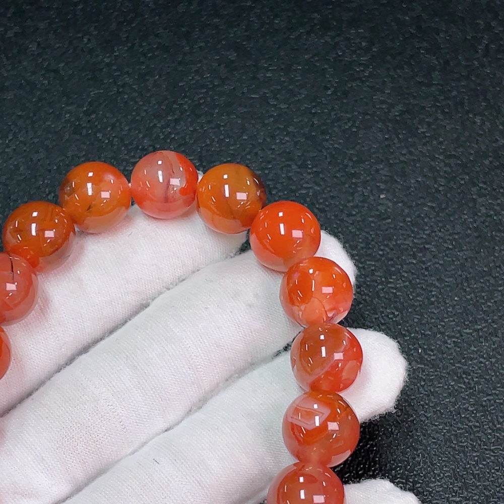 Red Agate Bracelet with Visible Organic Matter, Total Weight Approximately 48.45g, Size About 12.7mm