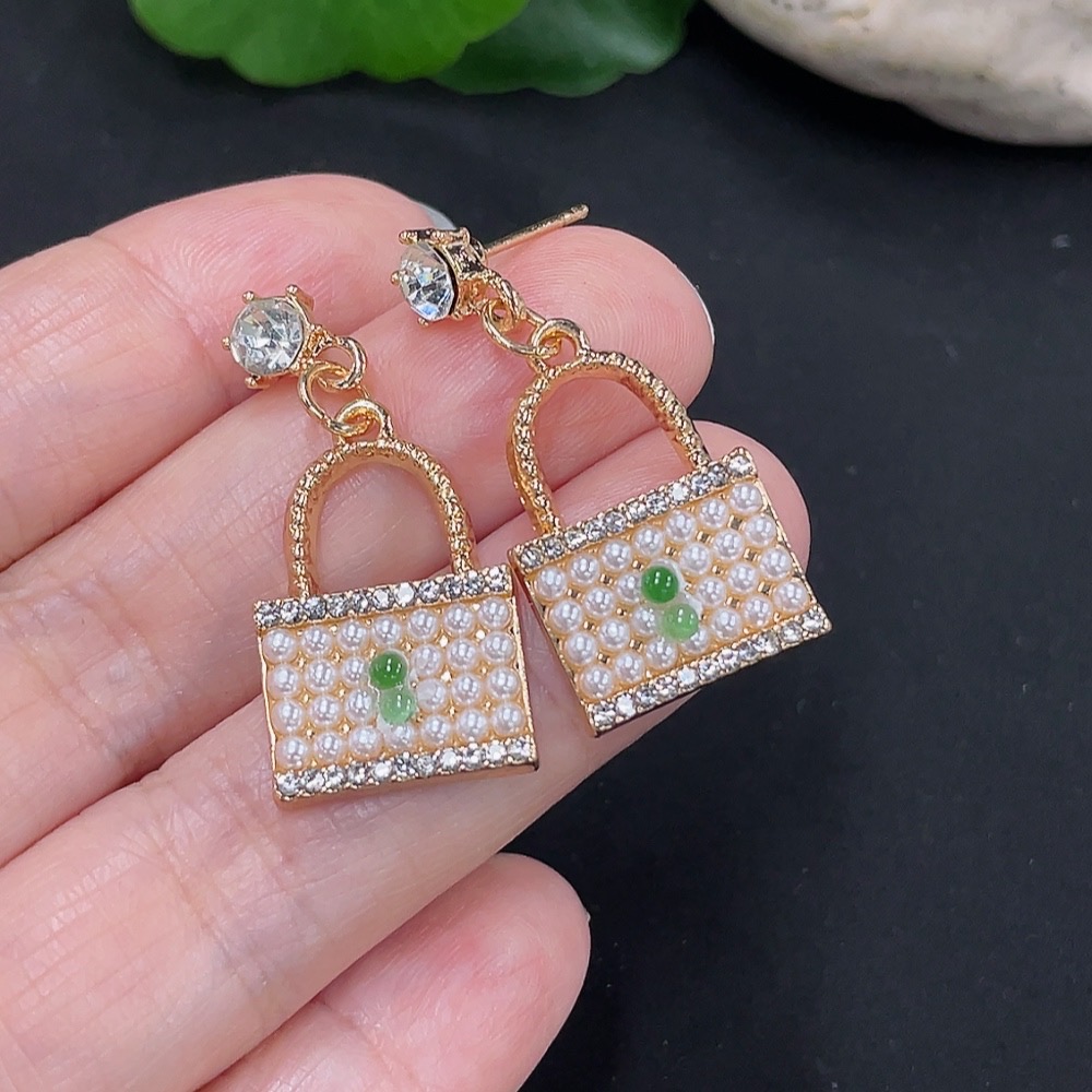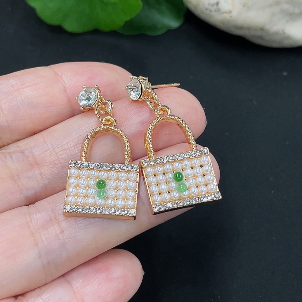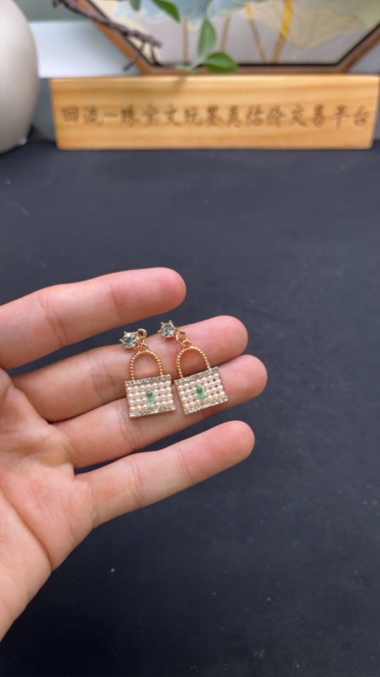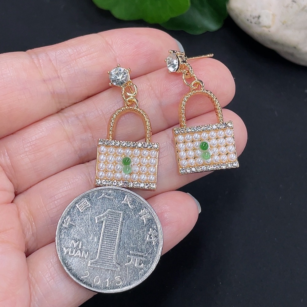 Jadeite inlaid earrings pair, total weight approx. 6g (non-gold inlaid)