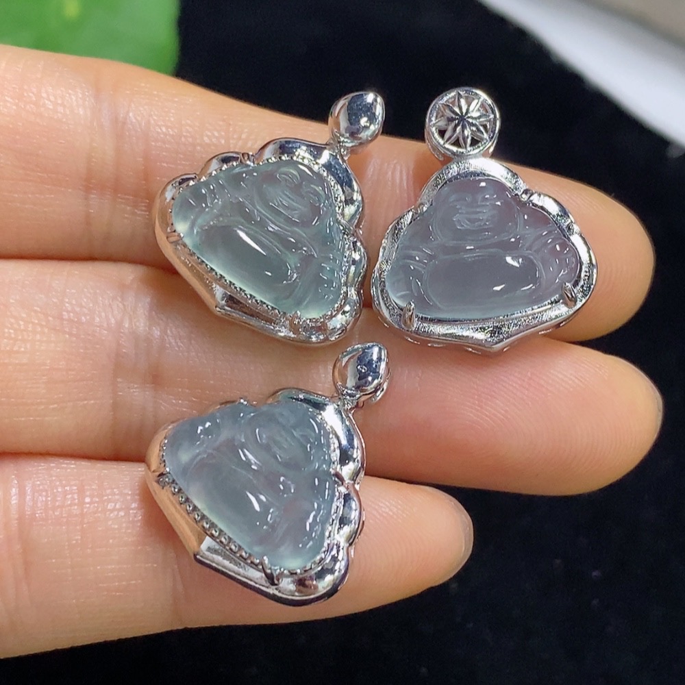 Jadeite Buddha Inlaid Pendant Non-Gold Sell as a Lot Total Weight Approx. 8.56g
