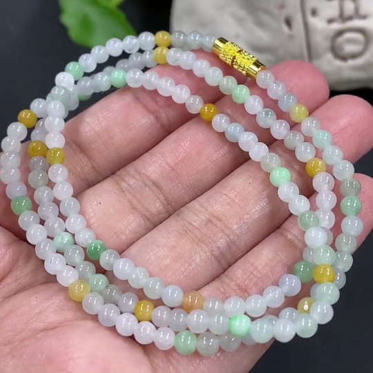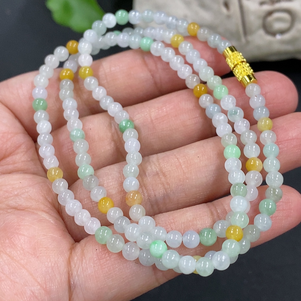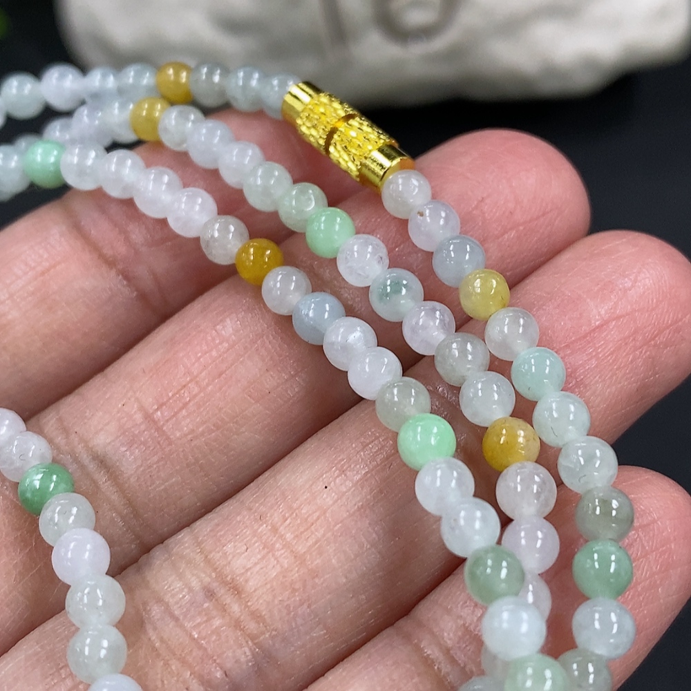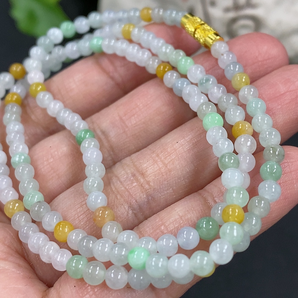Jadeite Bead Necklace Approx. 3.7mm Non-Gold Clasp Total Weight Approx. 13.9g