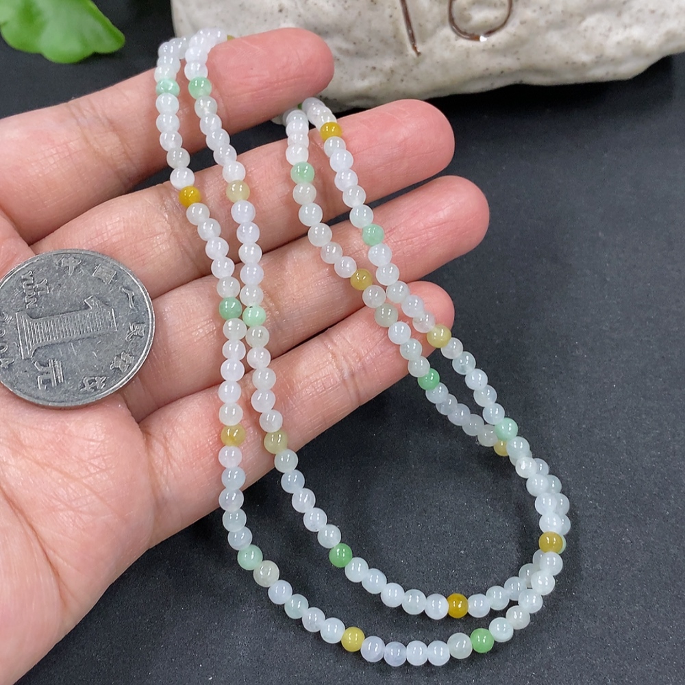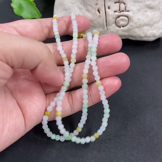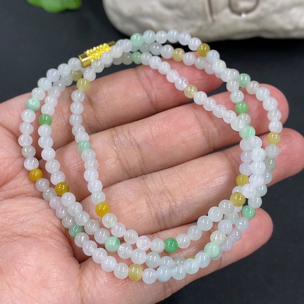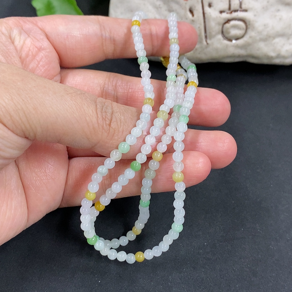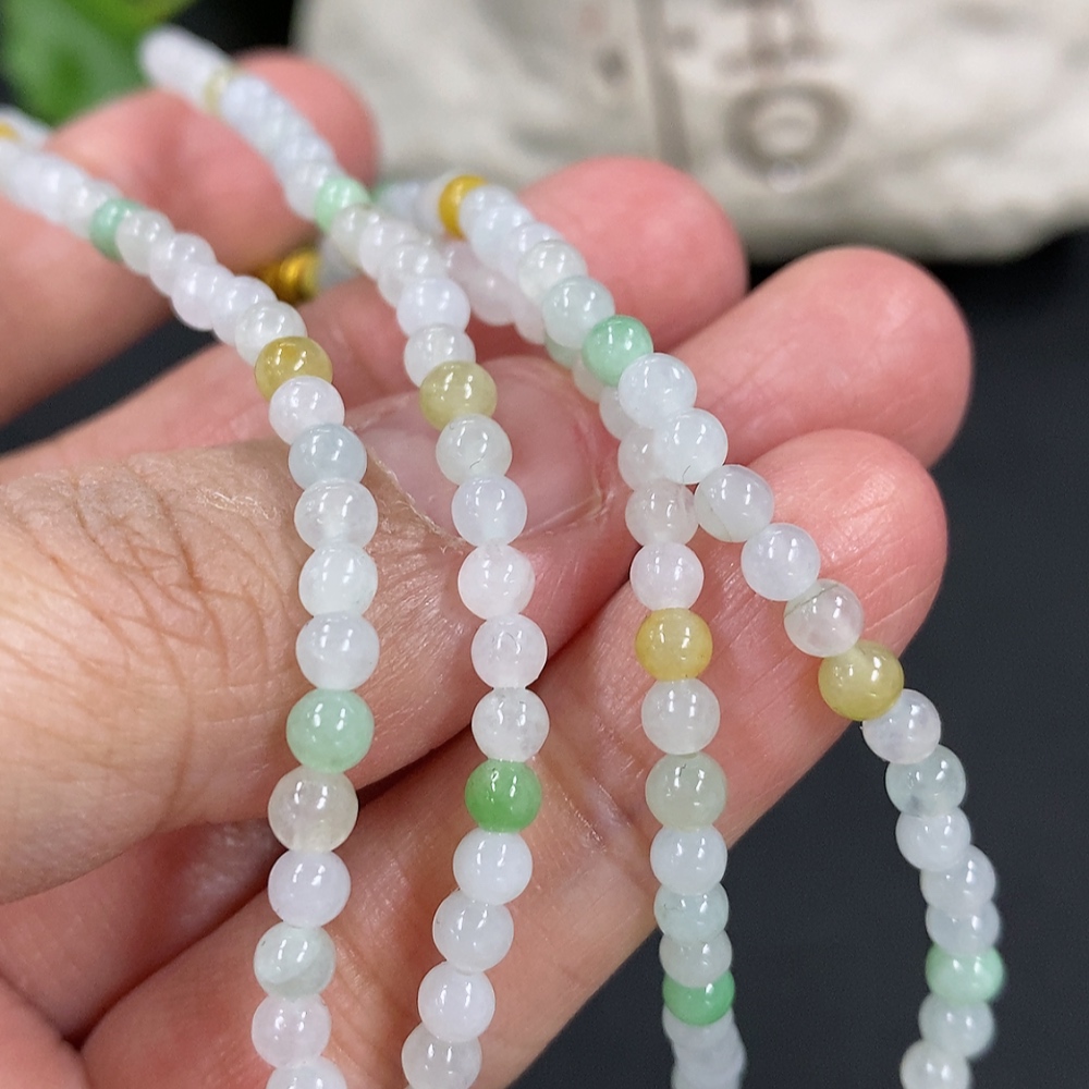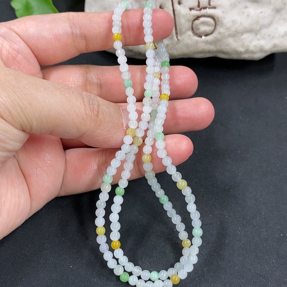 Jadeite Beaded Necklace Approx. 3.6mm Non-Gold Clasp Total Weight Approx. 12.6g