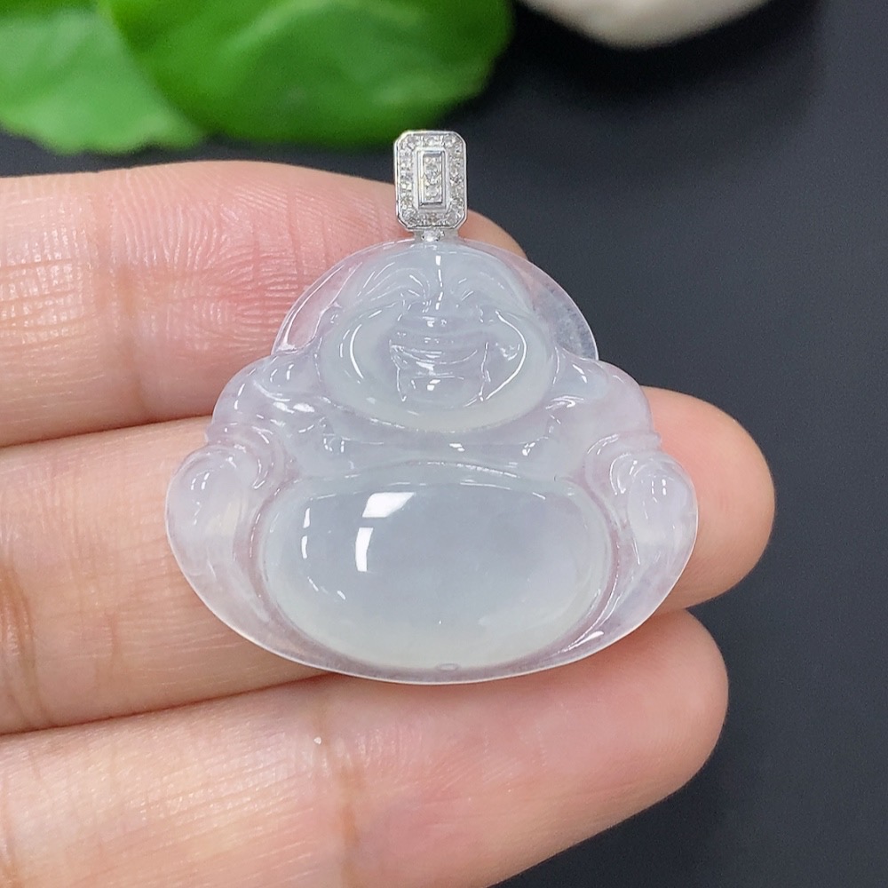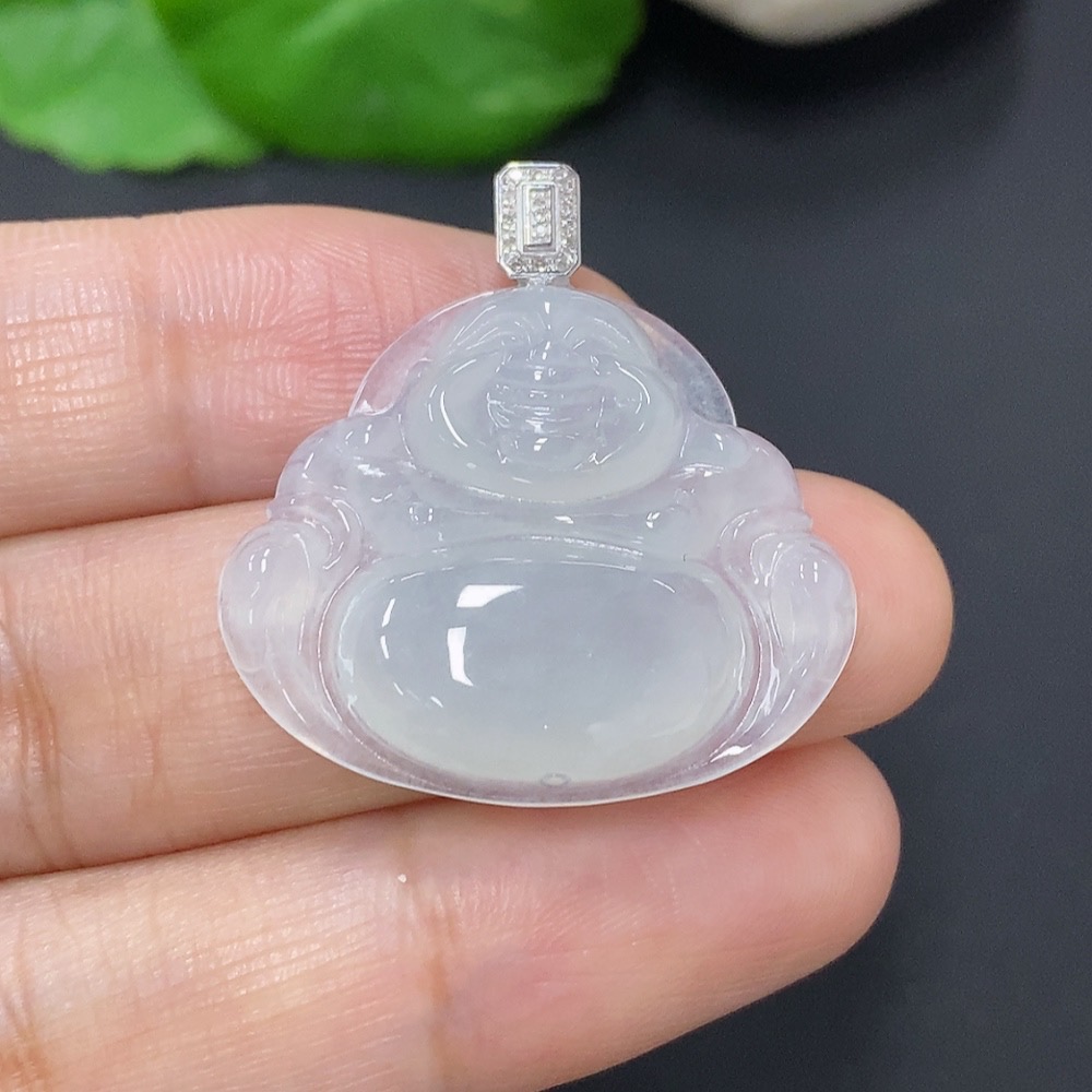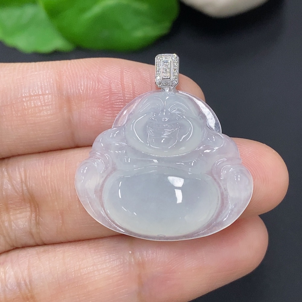 Jadeite Buddha Pendant with 18K Gold and Diamond Accents, Total Weight Approximately 5.23g