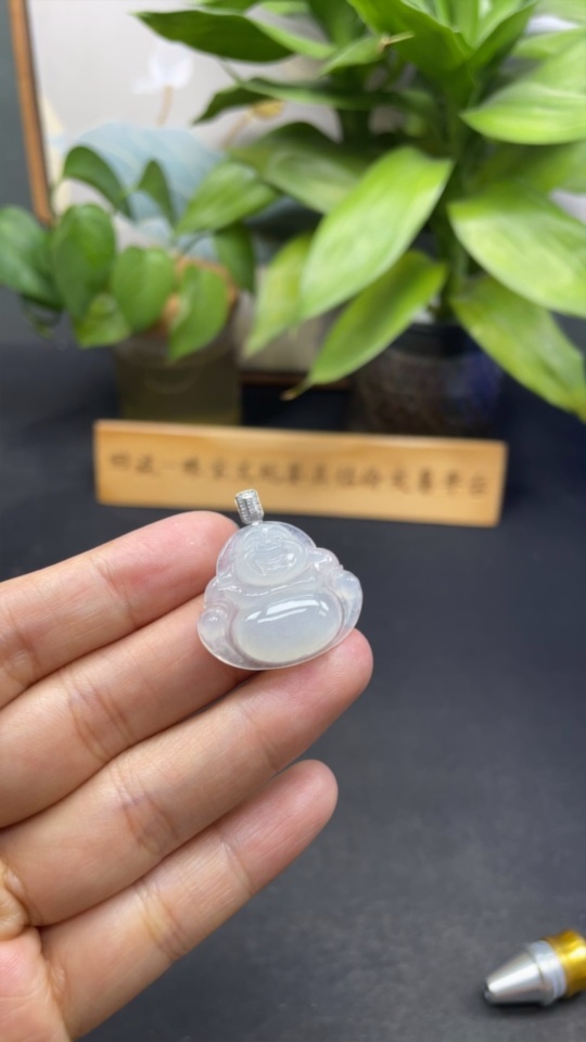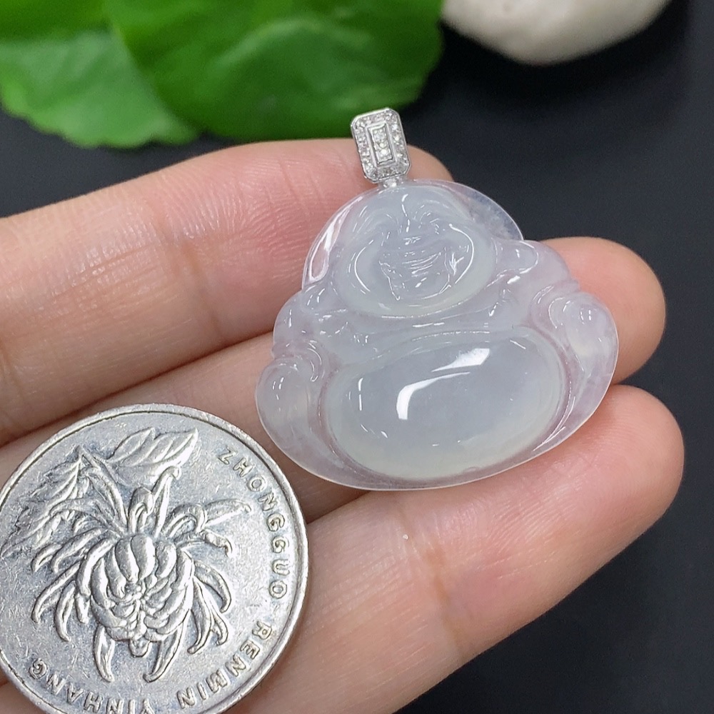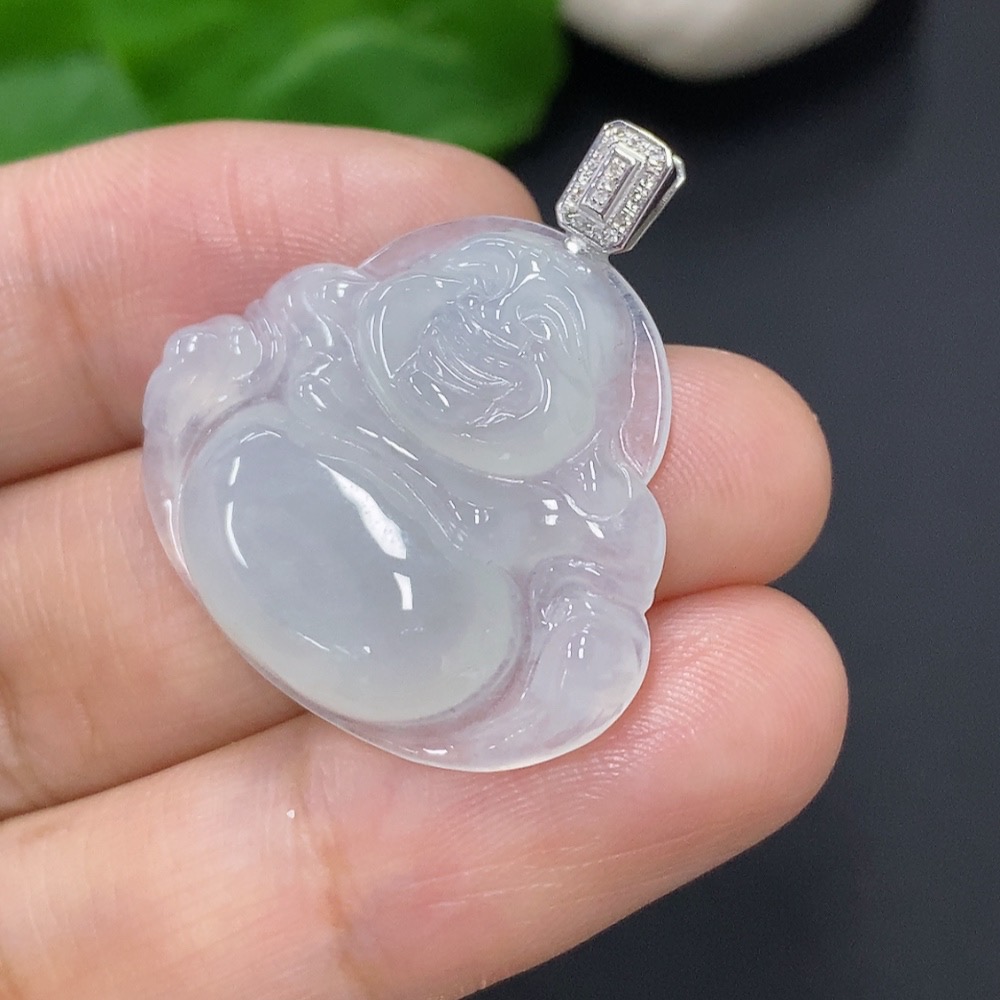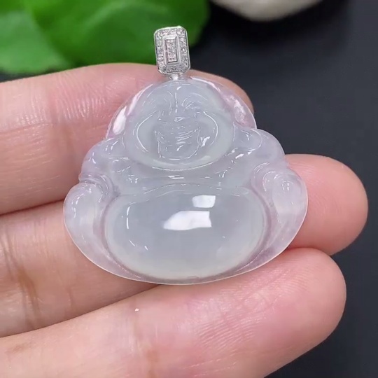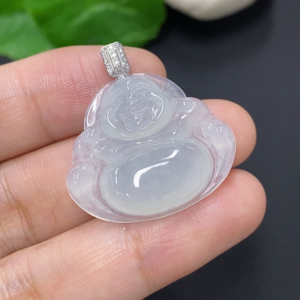 Jadeite Buddha Pendant with 18K Gold and Diamond Accents, Total Weight Approximately 5.23g