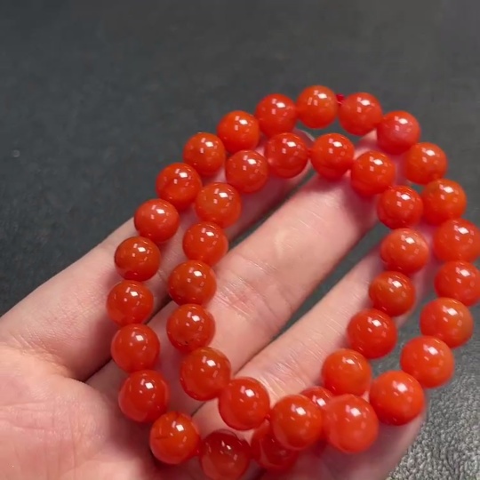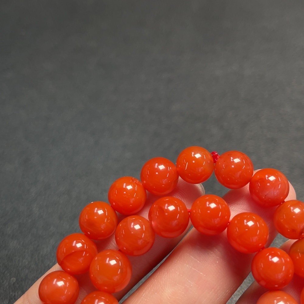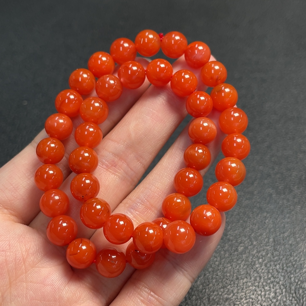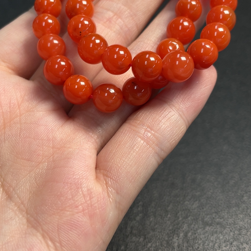 South Red Agate Bead Necklace with Visible Organic Matter, Total Weight Approximately 29.90g, Size About 8.2mm