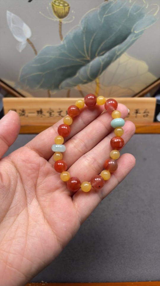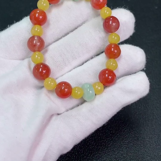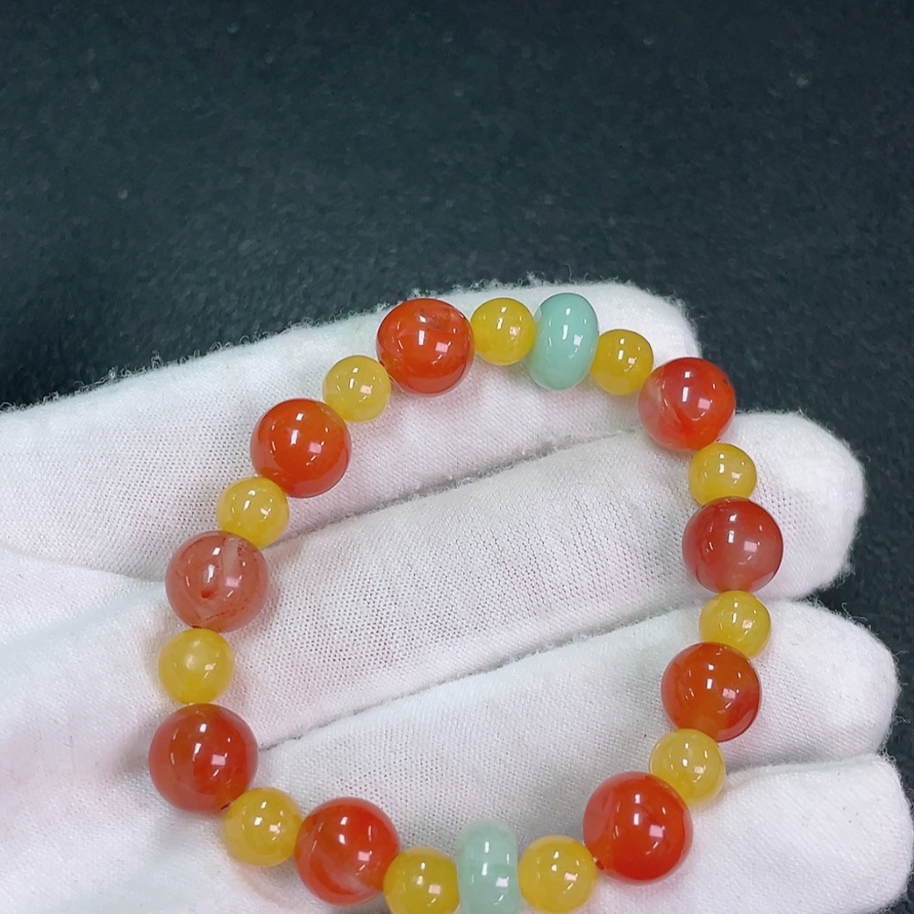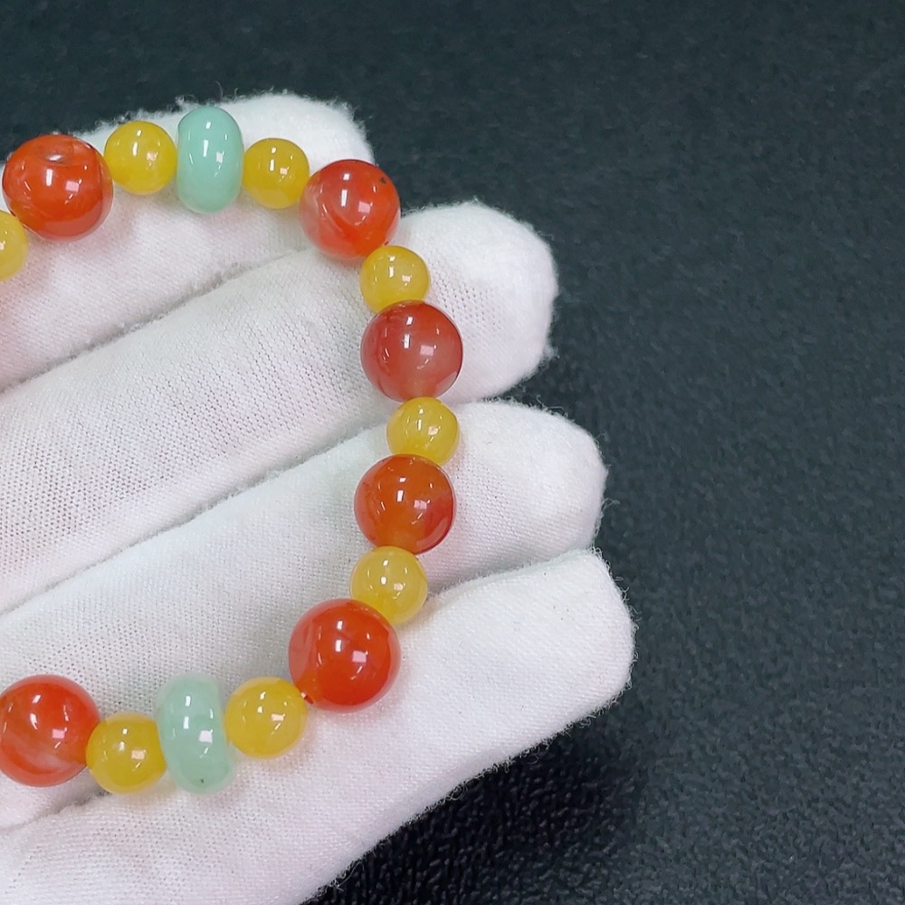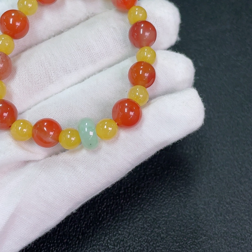South Red Agate Bracelet with Jadeite and Yellow Stone (Possibly Non-Natural), Total Weight Approx. 17.2g, Size Around 9.1mm