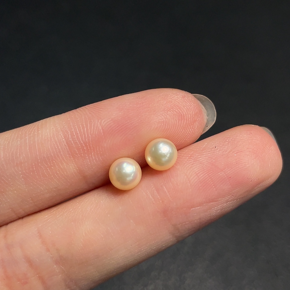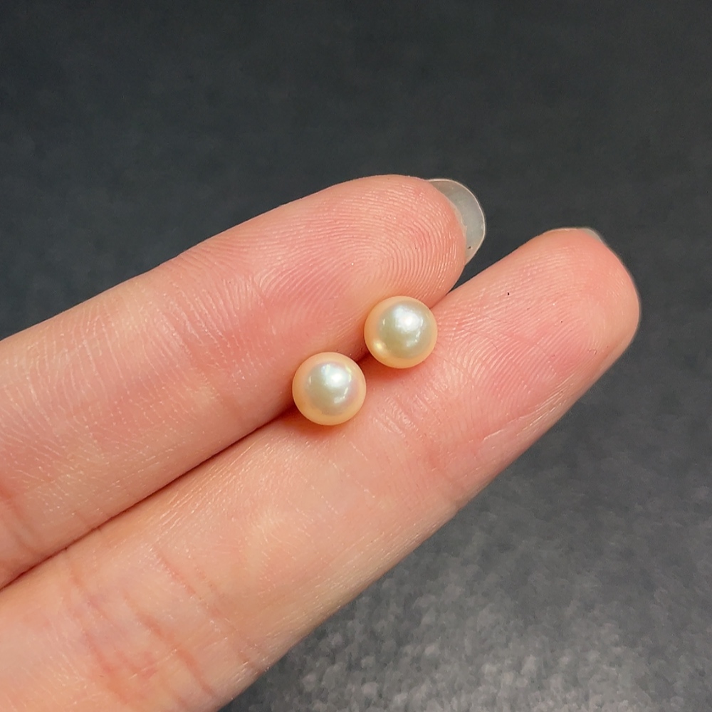 Seawater pearl earrings, non-gold, color origin undetermined, total weight approximately 0.77g, size about 5.4mm