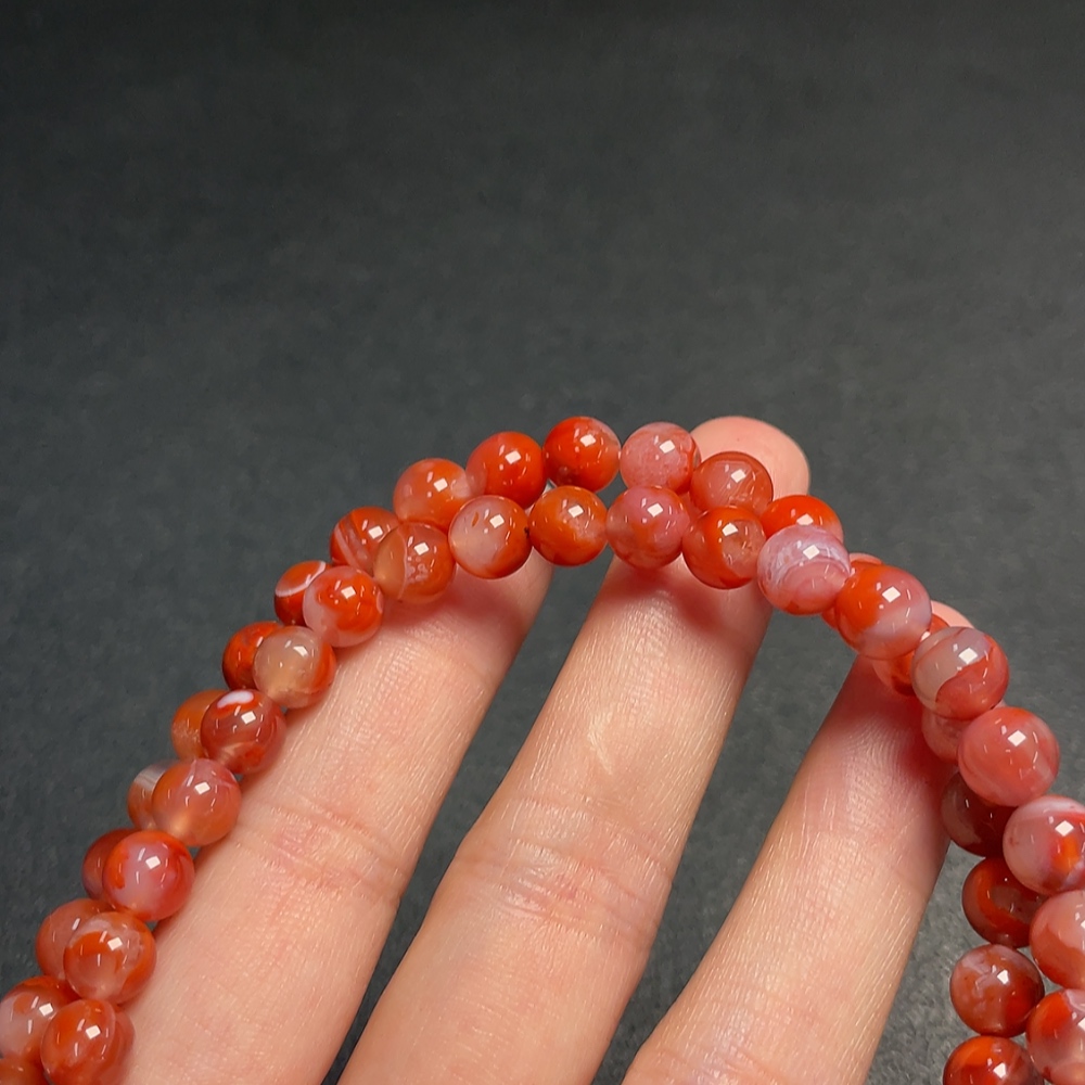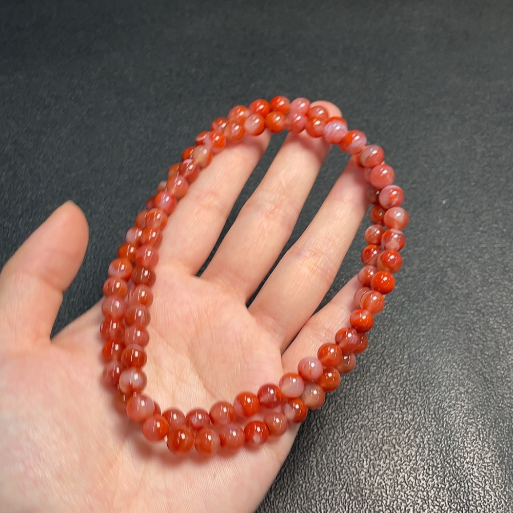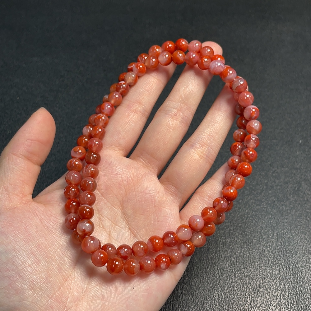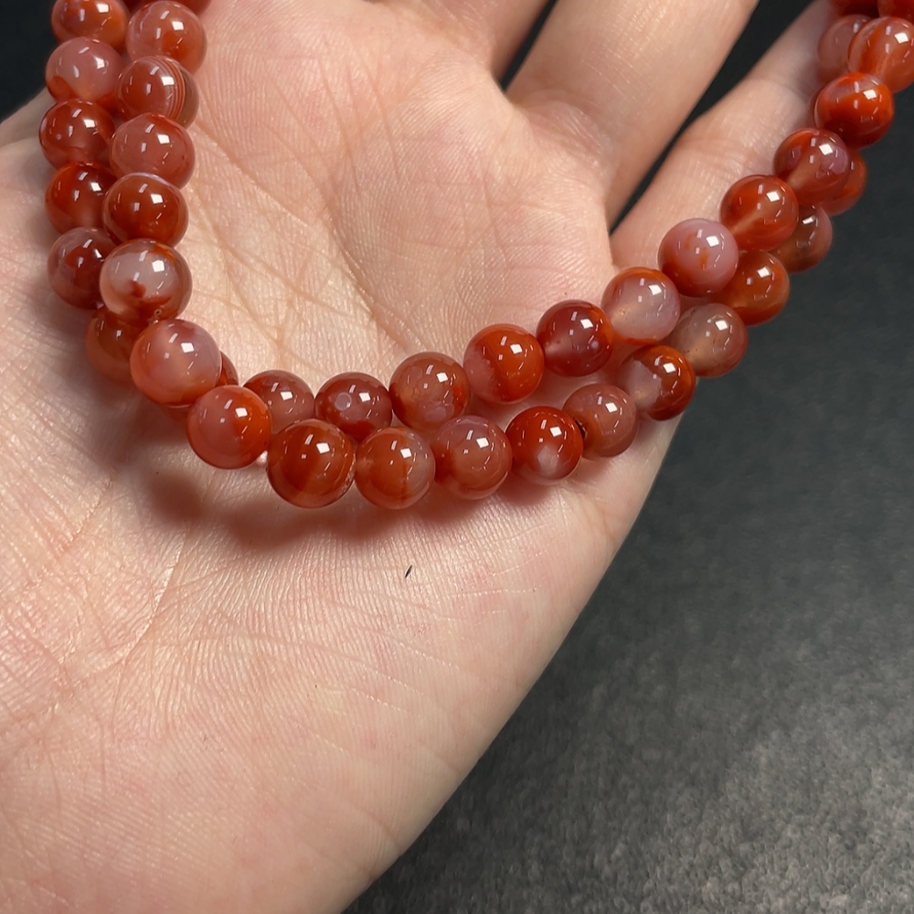 Red Agate Bead Necklace with Visible Organic Matter, Total Weight Approx. 41.74g, Bead Size ~6.9mm