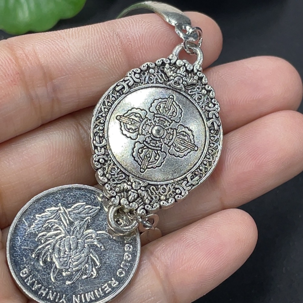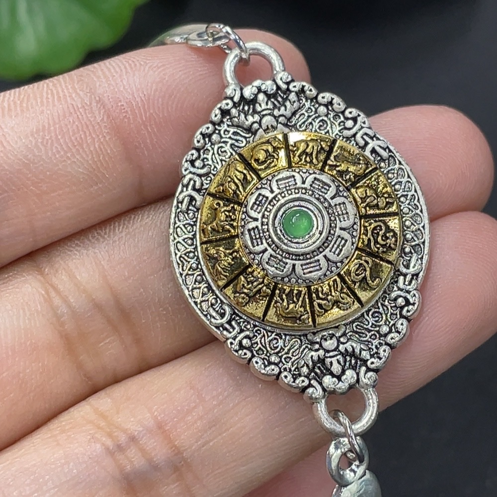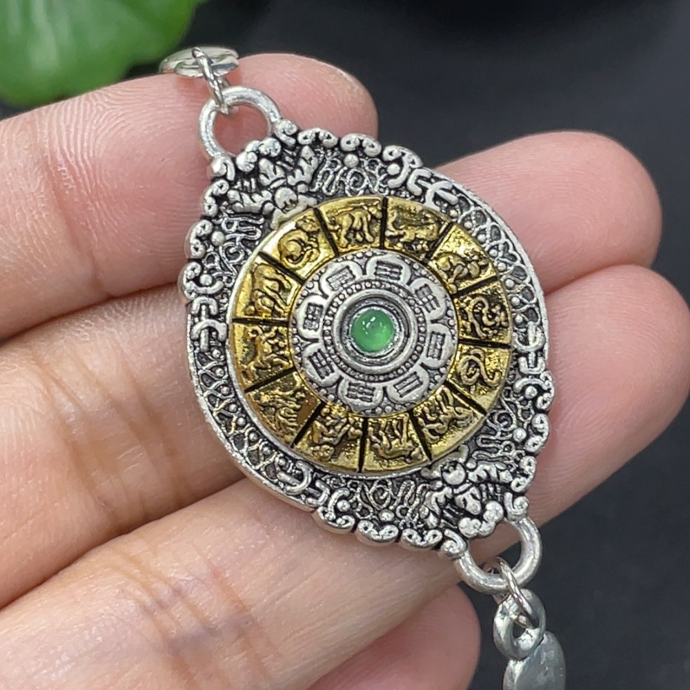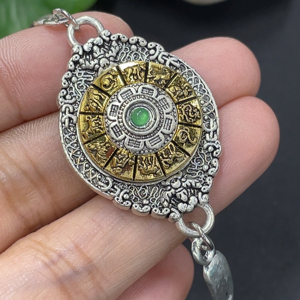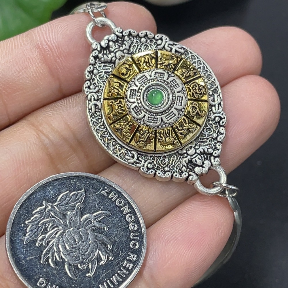 Jadeite Cabochon Inlay Bracelet Non-Gold Inlay Total Weight Approx. 14.3g