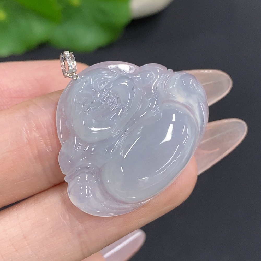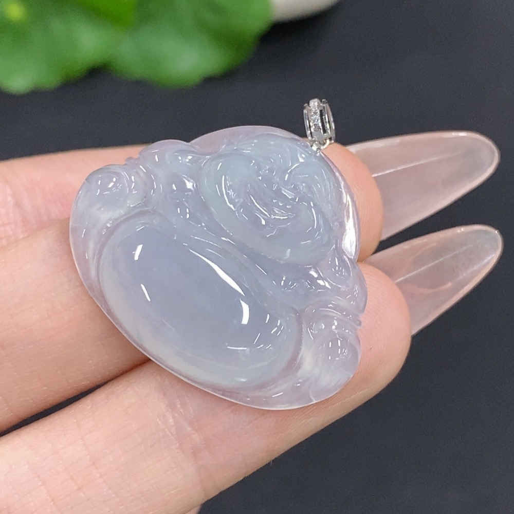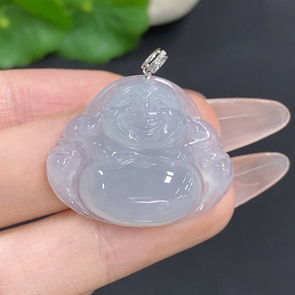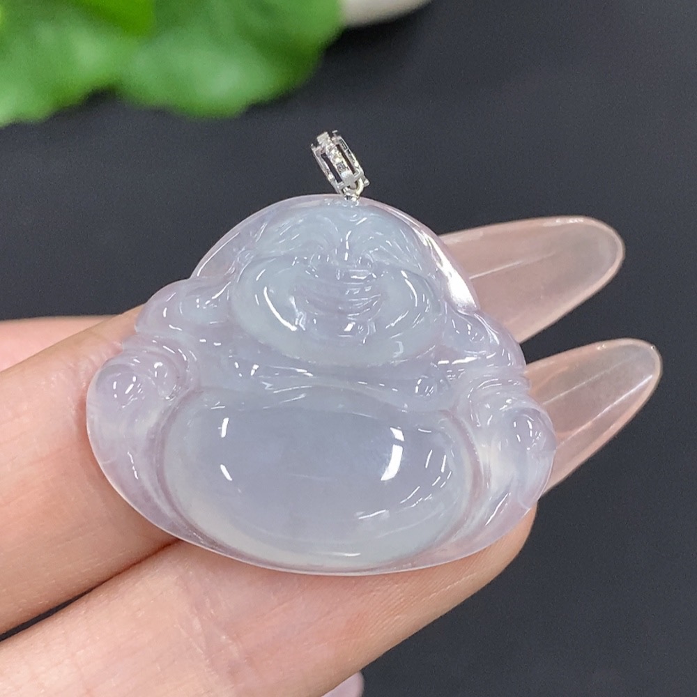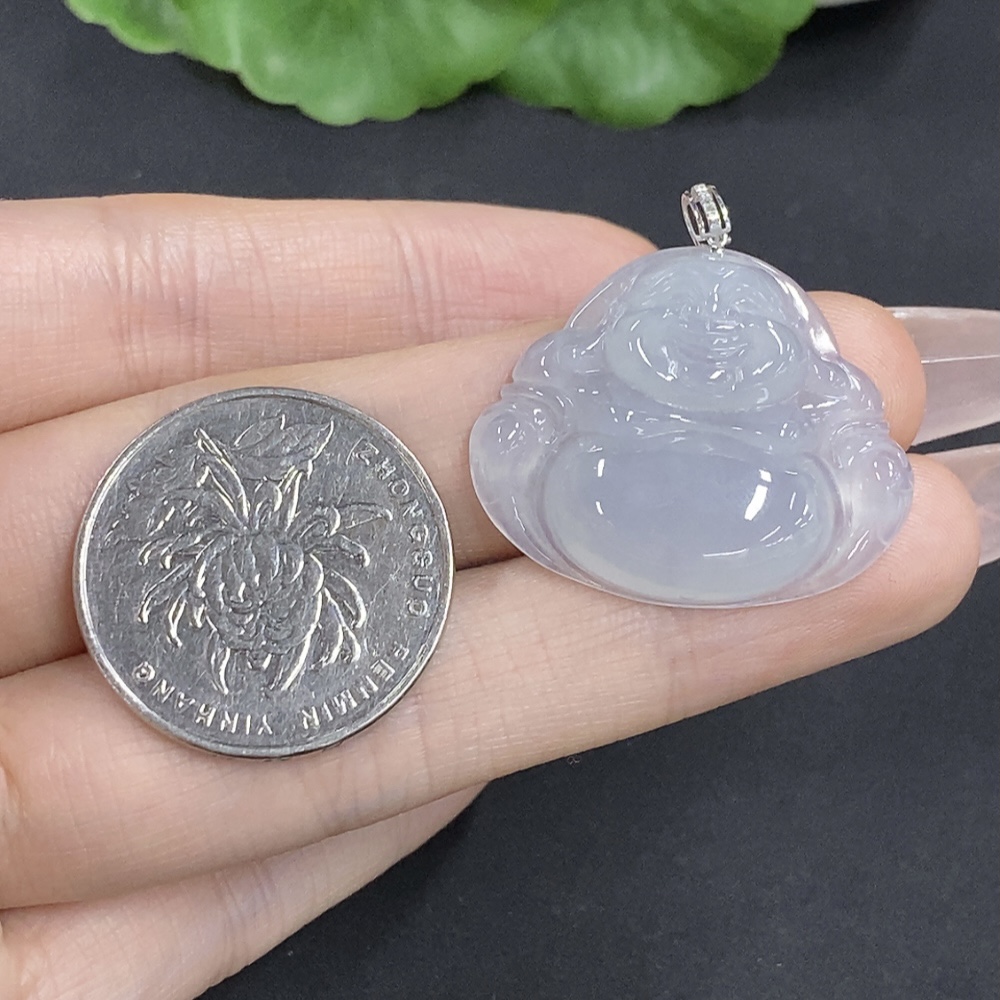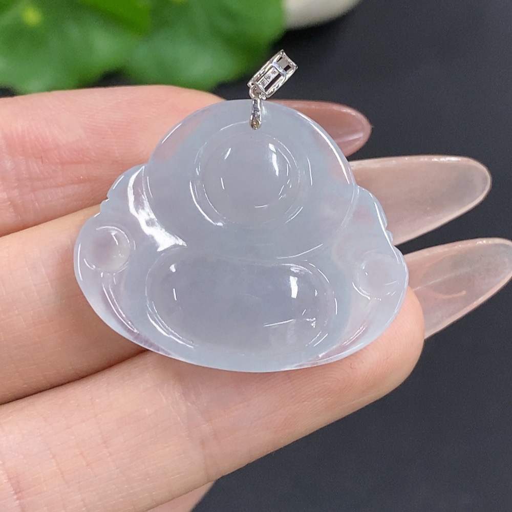 Jadeite Buddha Pendant with 18K Gold Clasp, Total Weight Approx. 6.8g, Non-Diamond (Too Small to Confirm)