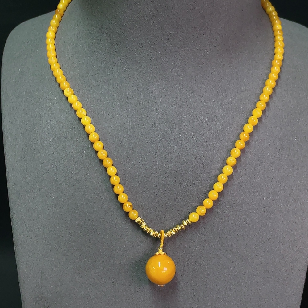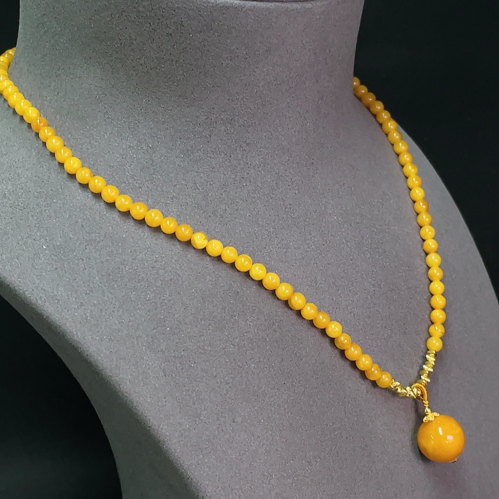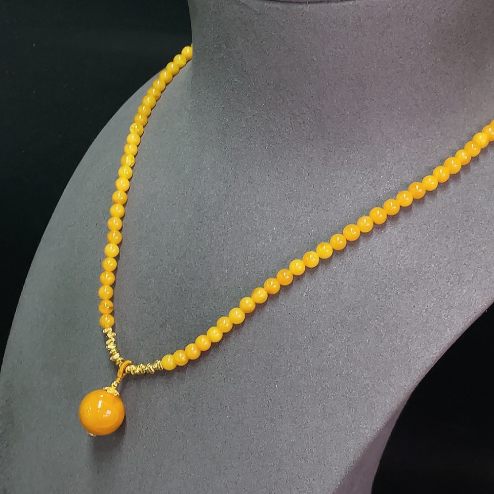 Amber Beeswax Bead Necklace Non-Gold Total Weight Approx. 8.82g Size 4.8-13.6mm