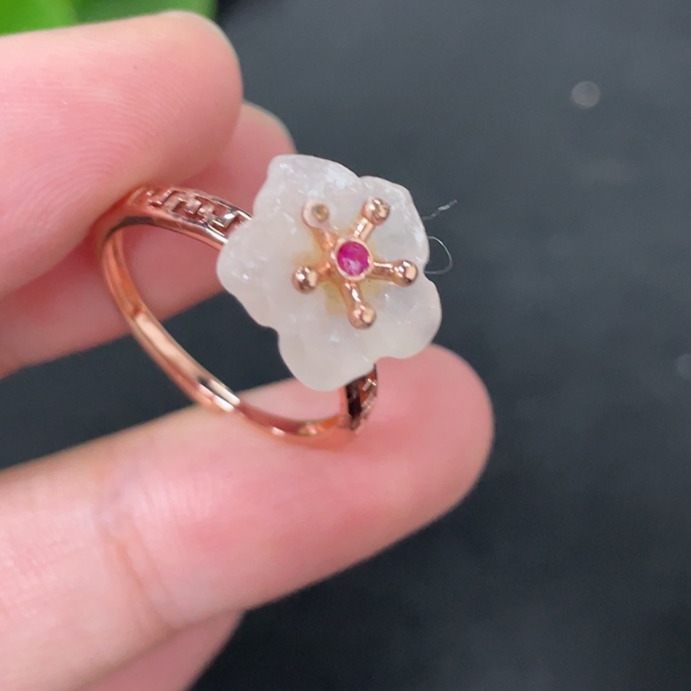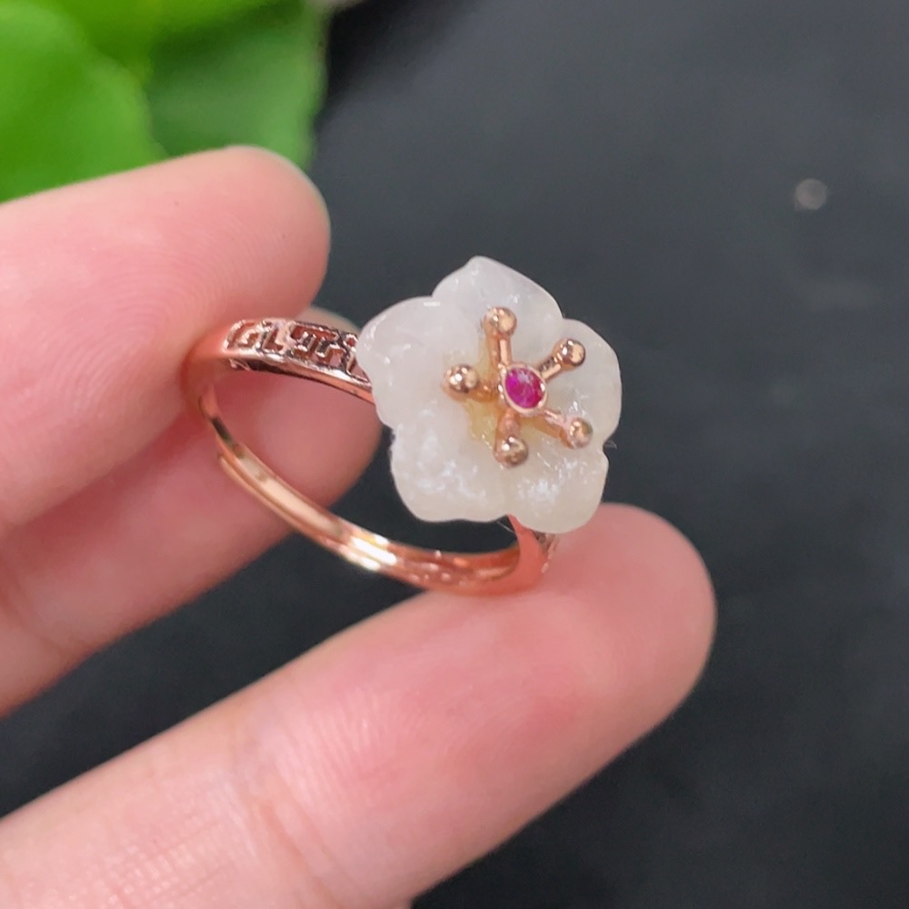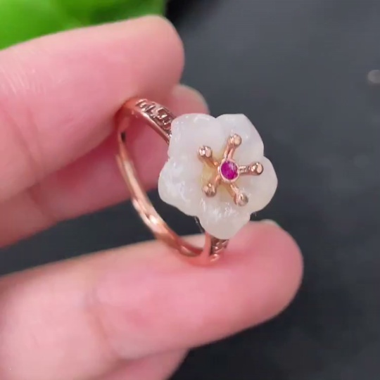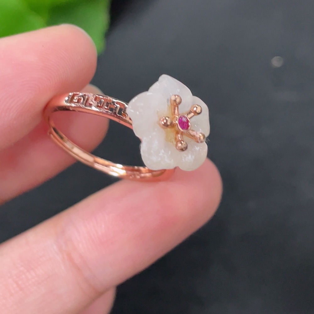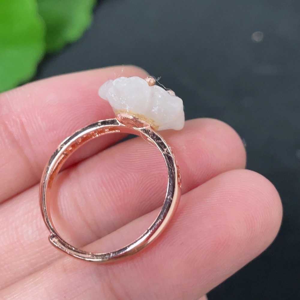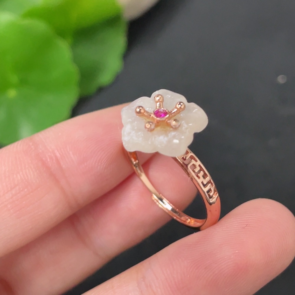 Hetian Jade Inlaid Adjustable Ring Non-Gold Product Approximately 2.1g Containing Other Mineral Components