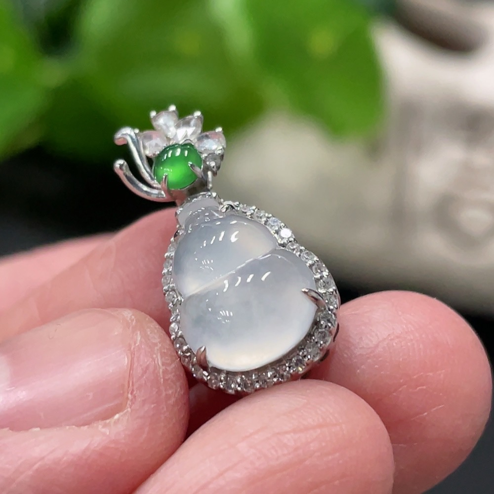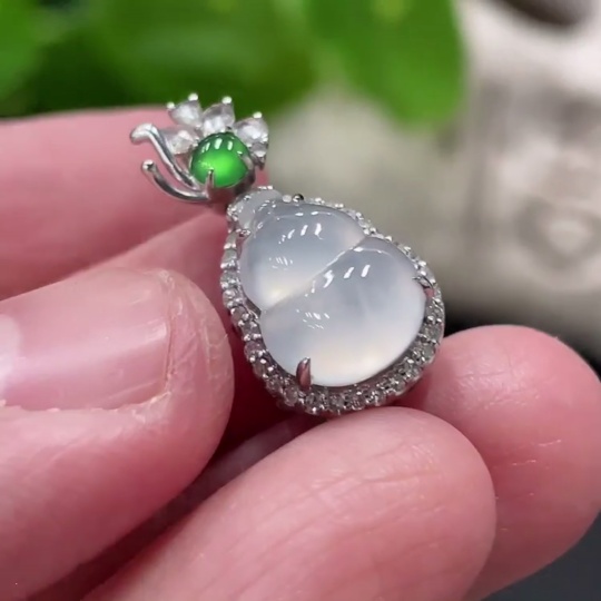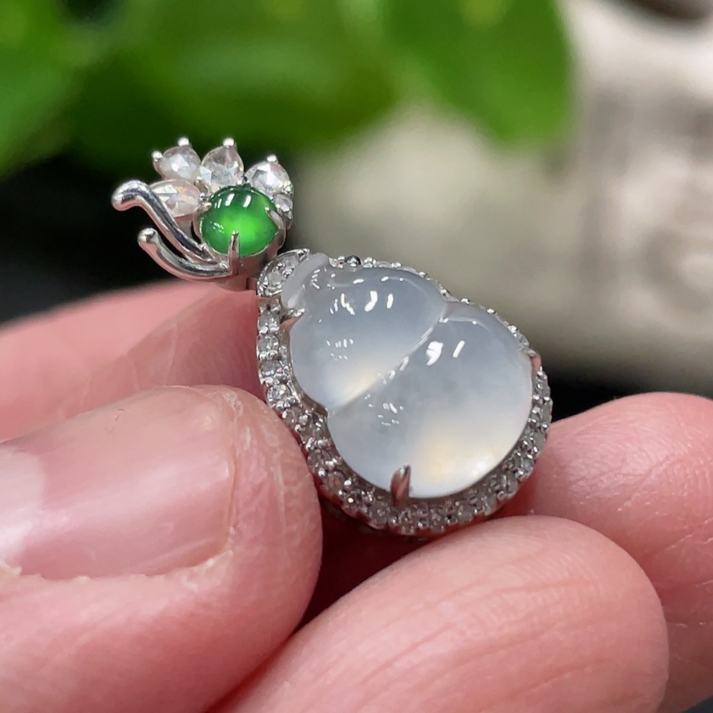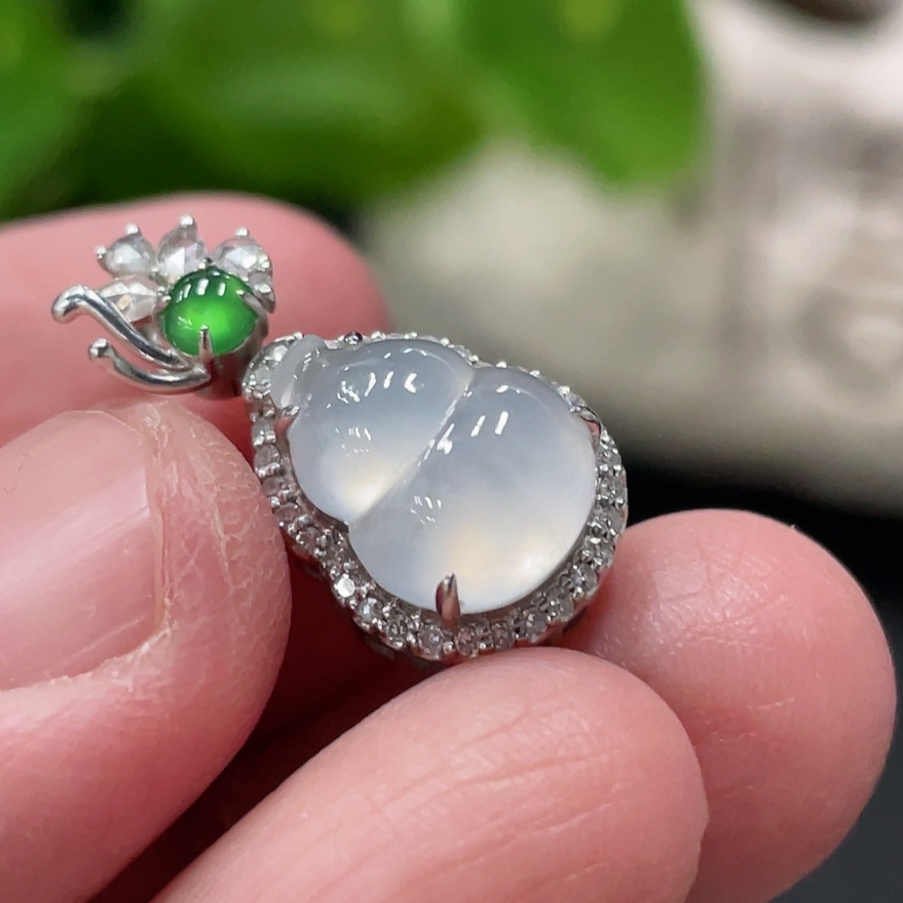Jadeite Gourd Pendant 18k Gold Chain Not Included Total Weight Approx. 1.9g (Excl. Chain) with Diamond Accents