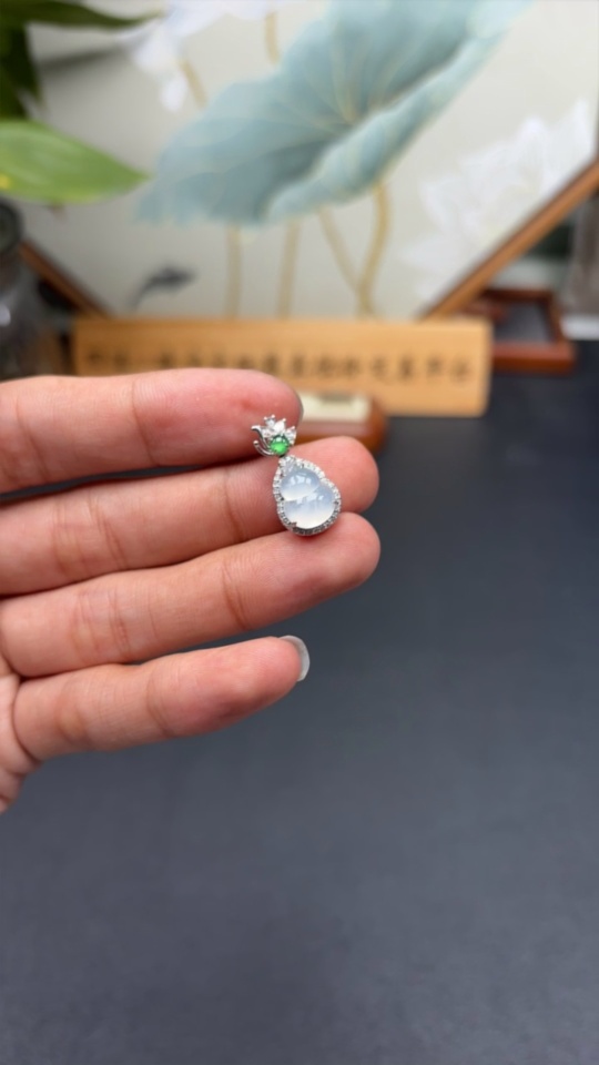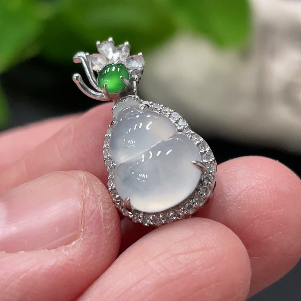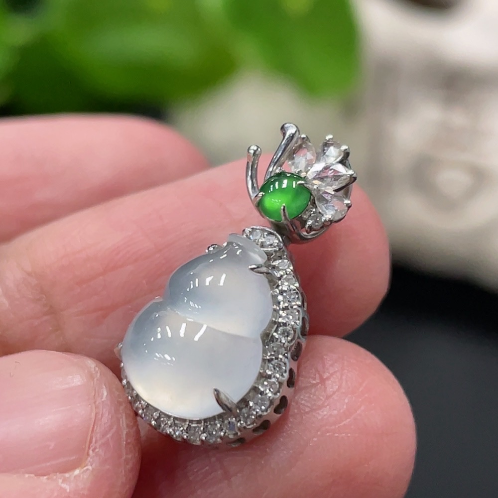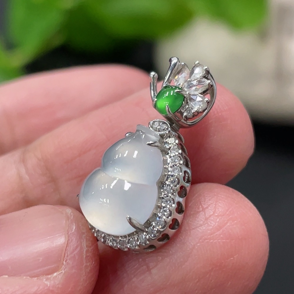 Jadeite Gourd Pendant 18k Gold Chain Not Included Total Weight Approx. 1.9g (Excl. Chain) with Diamond Accents