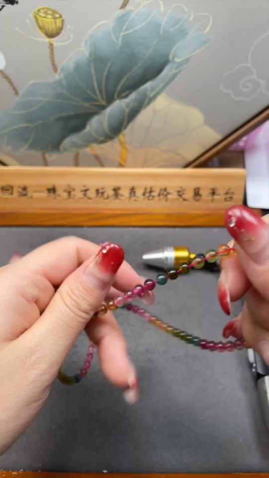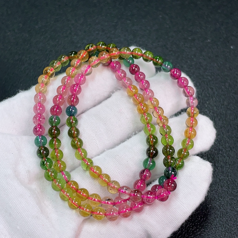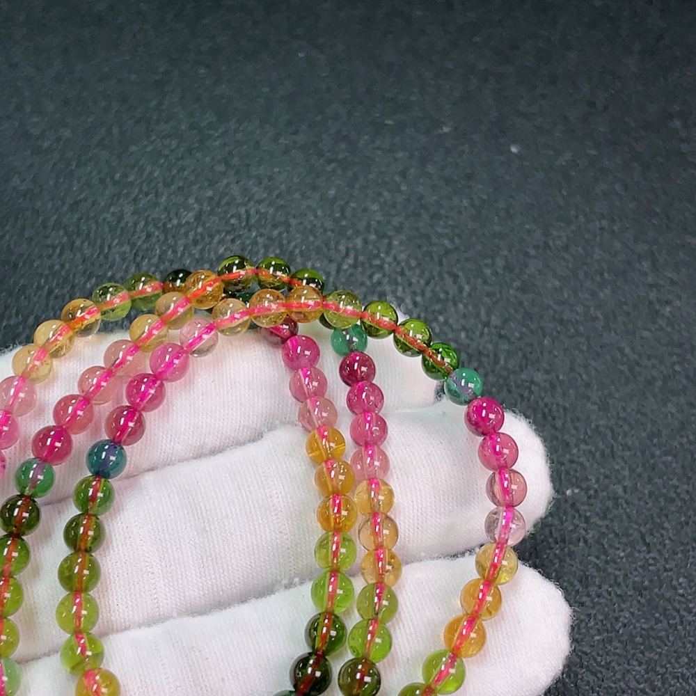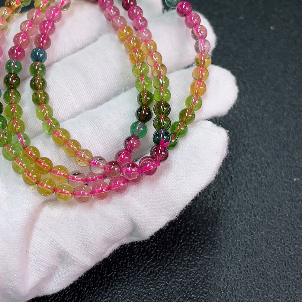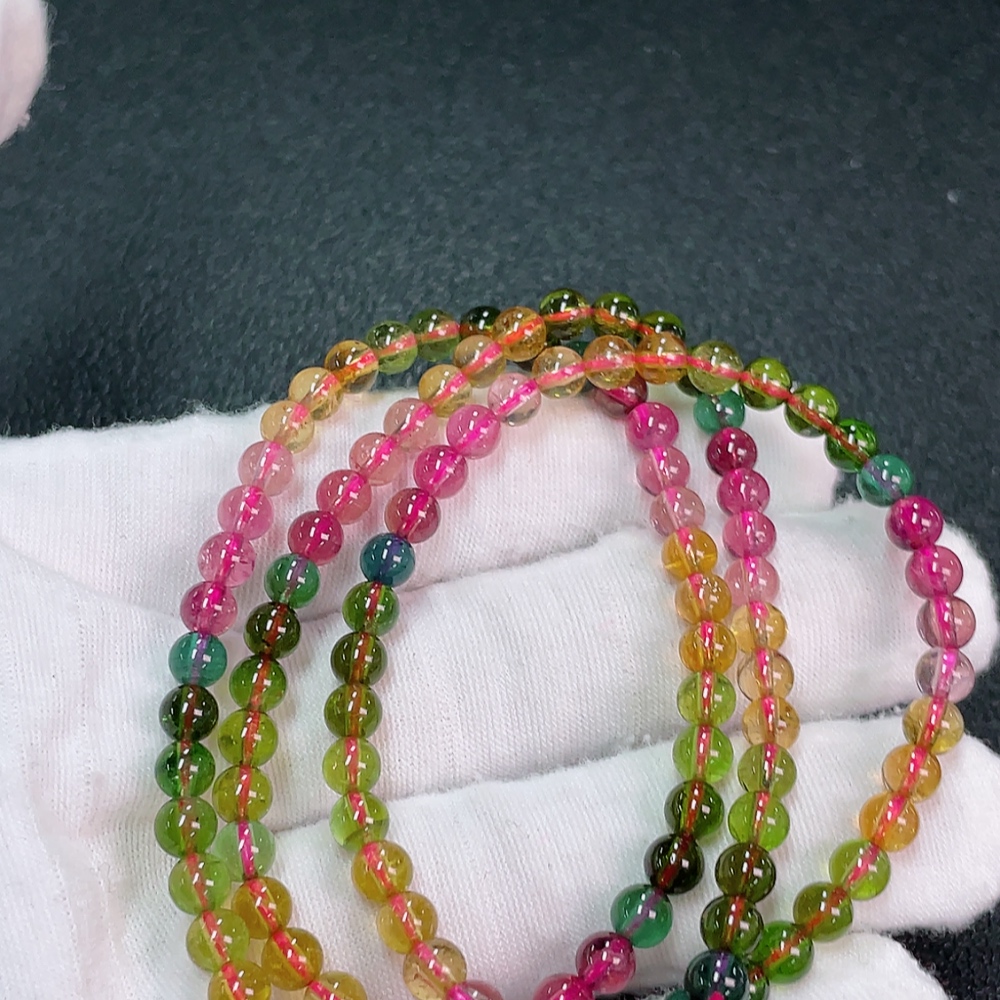 Tourmaline bead necklace with visible organic inclusions, total weight approximately 19.84g, bead diameter about 4.9mm