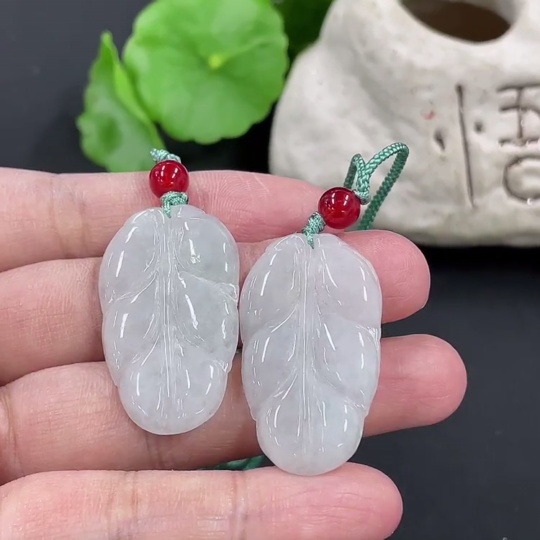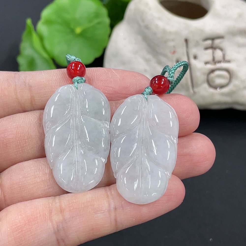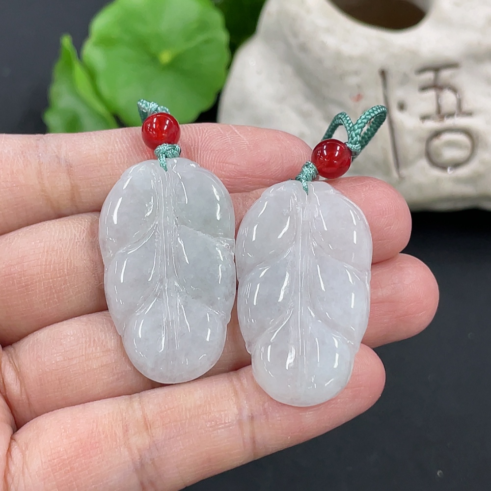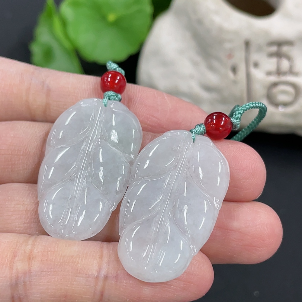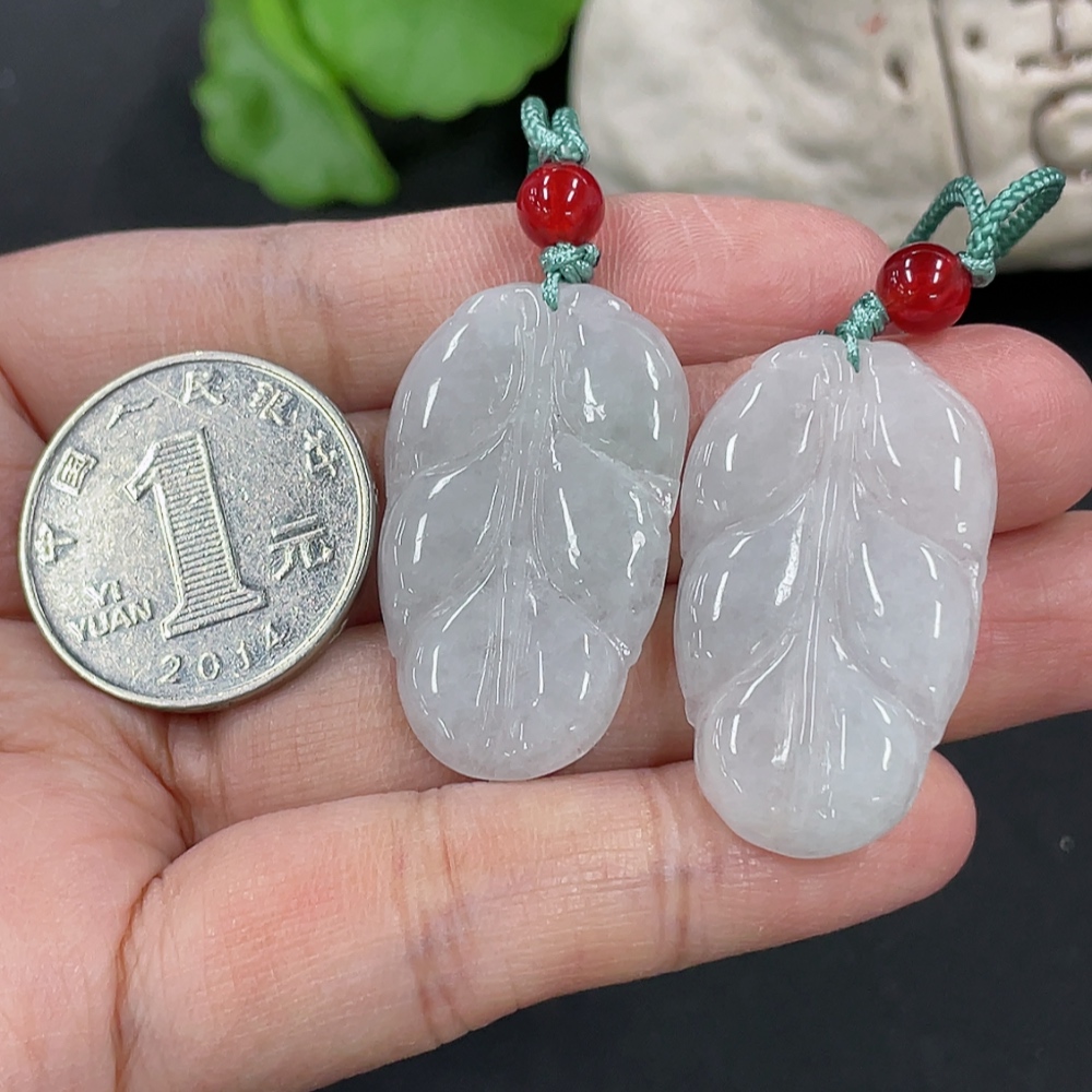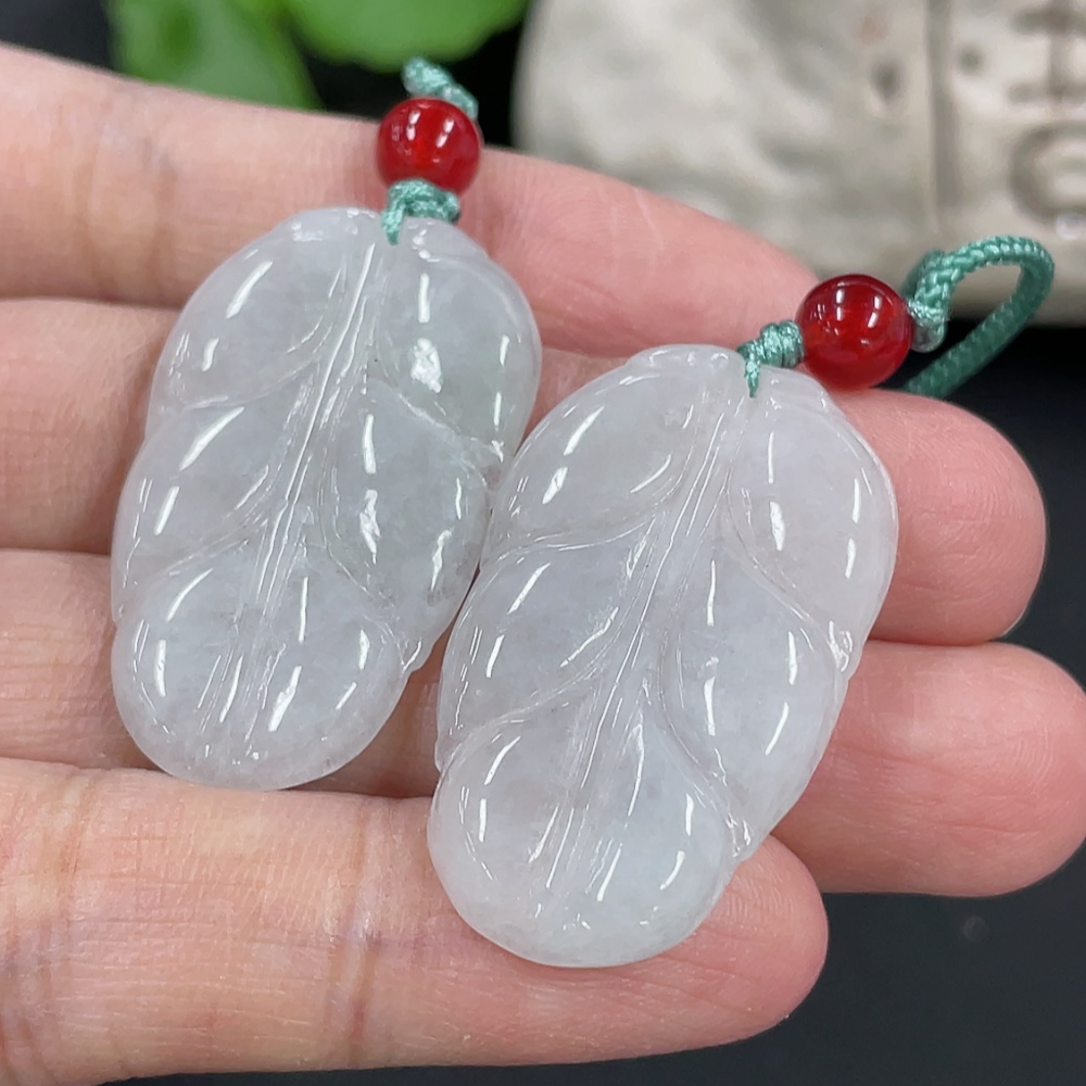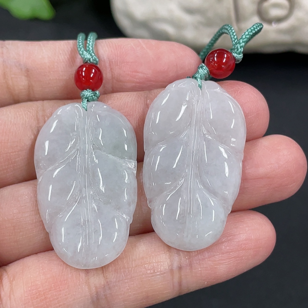 Jadeite Leaf Pendant Total Weight Approx. 12.38g With Non-Grade A Beads