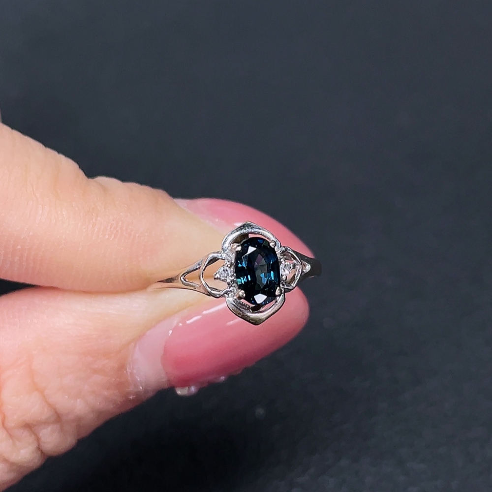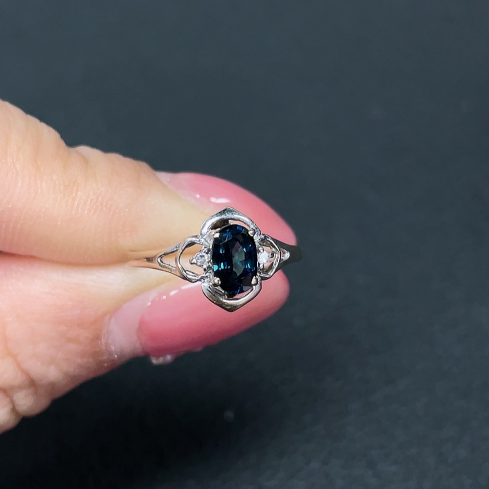 18K Blue Sapphire Ring, Undetermined Color Origin, Total Weight Approx. 1.39g, Size 11