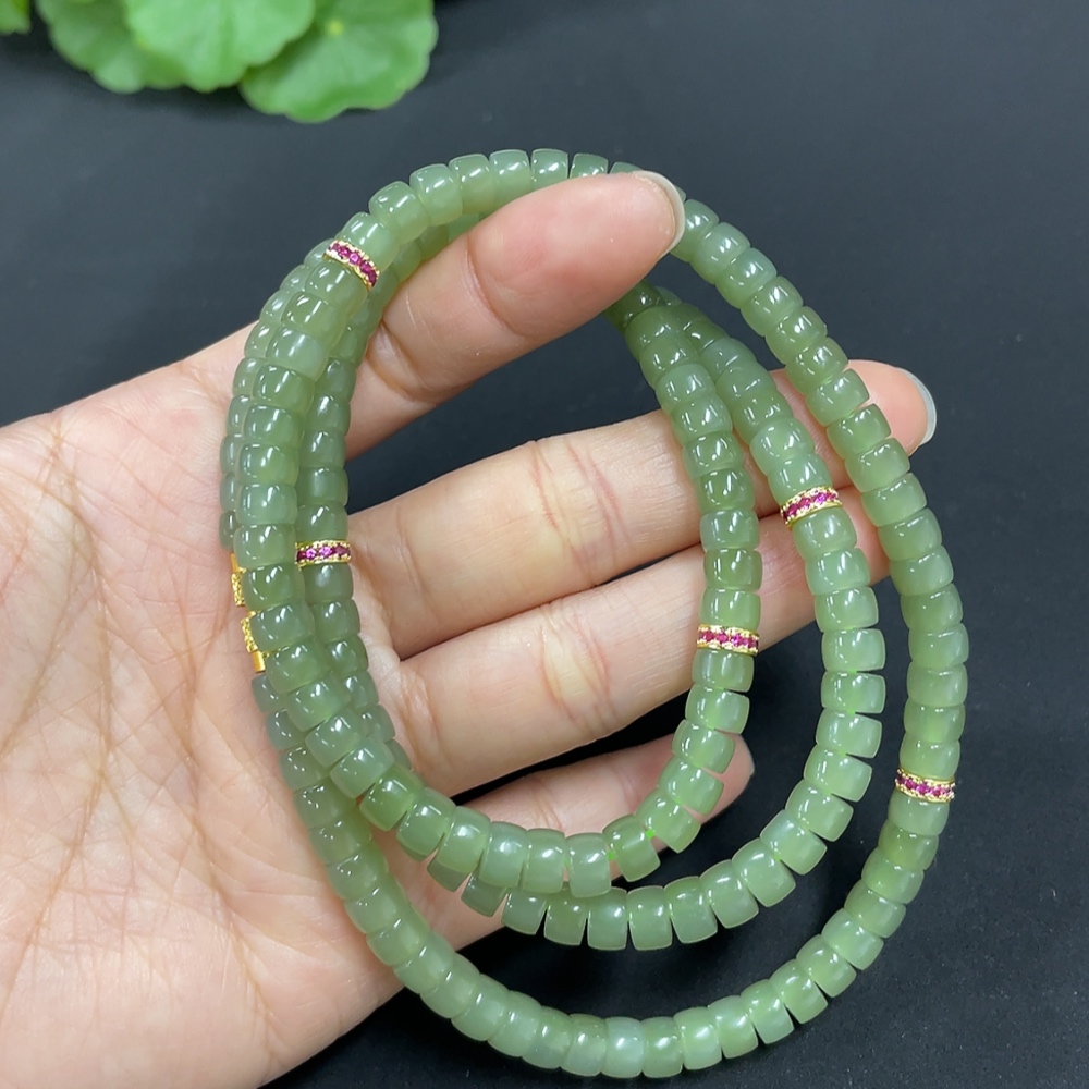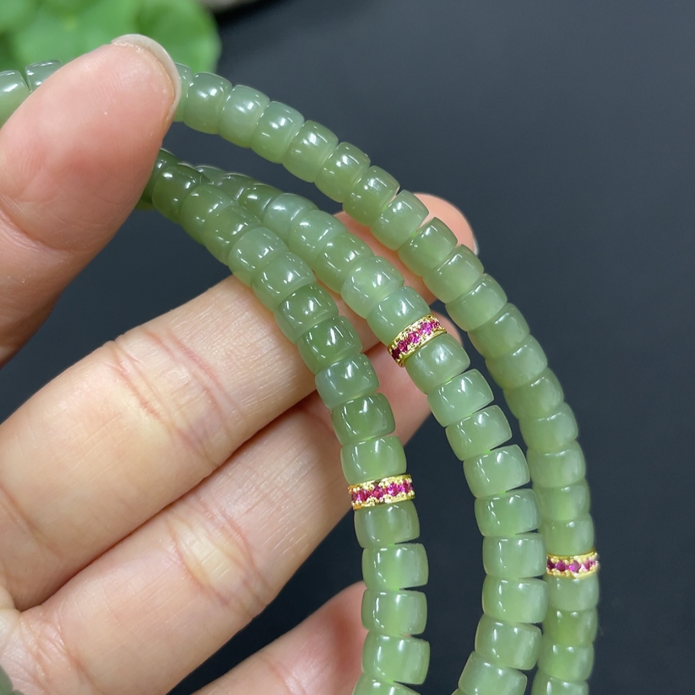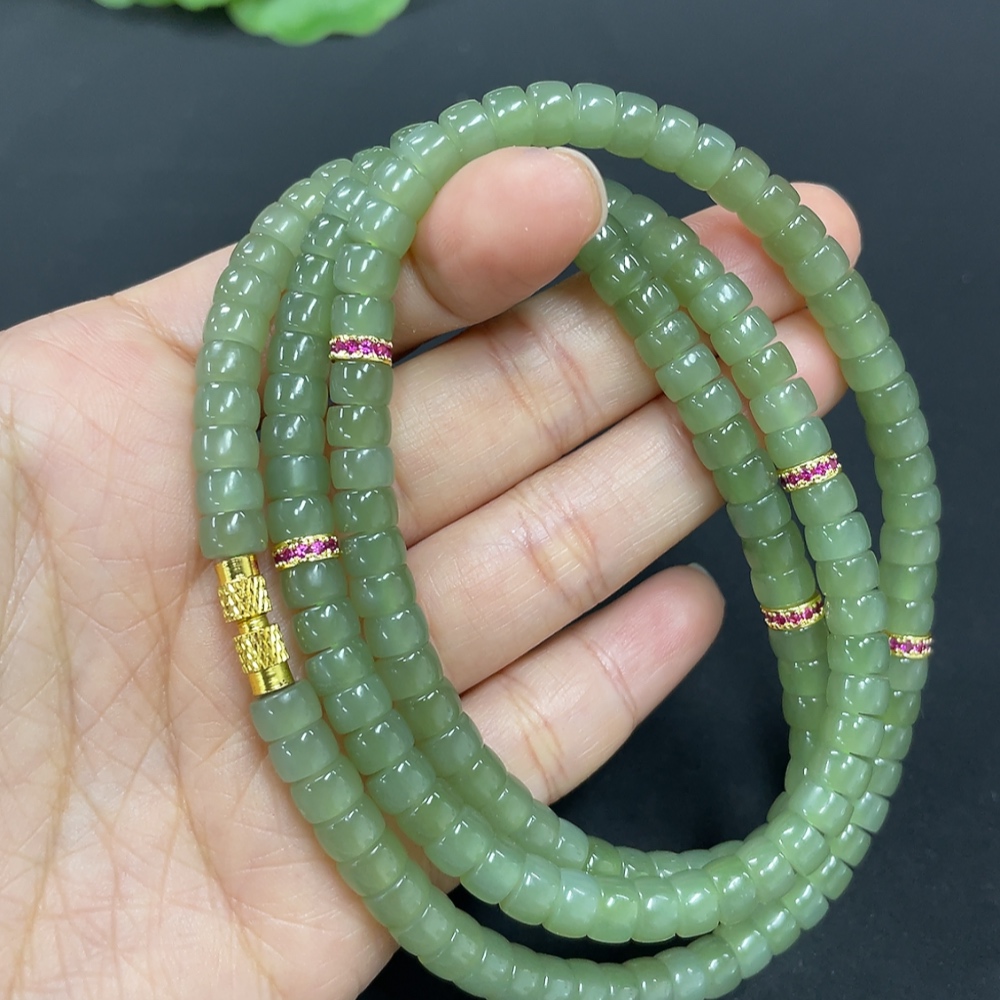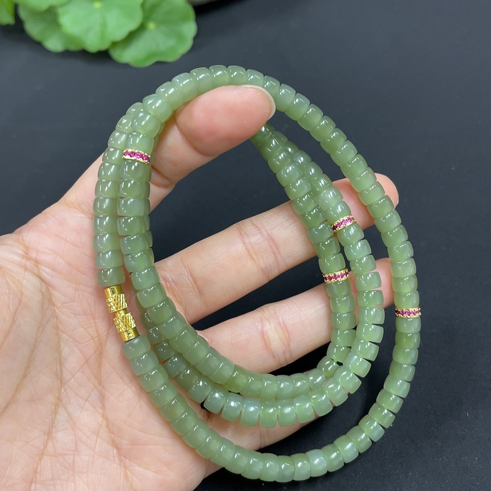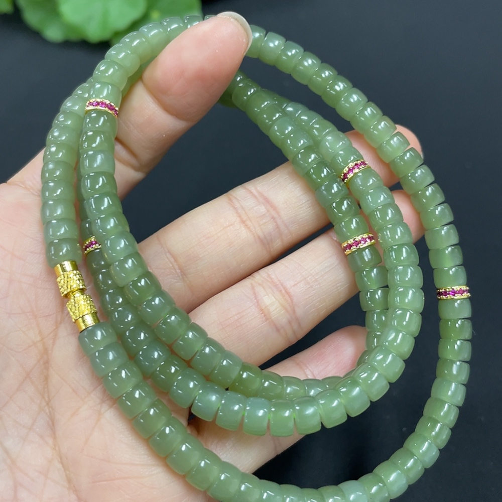 Hetian Jade Bead Necklace, Approx. 5.7mm, Non-Gold Inlaid, Total Weight Approx. 48.1g