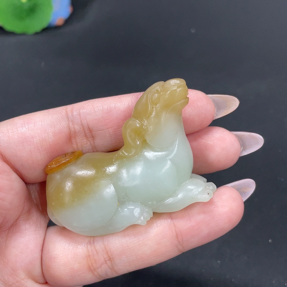 Hetian Jade Pendant "Prosperity" with a total product weight of approximately 57.9g, undetermined skin color origin