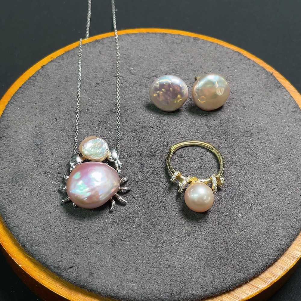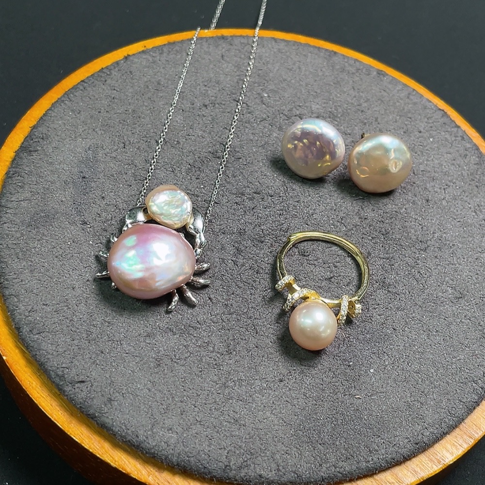 Pearl Necklace + Earrings + Ring Non-Gold Adjustable Total Weight Approx. 13.1g Sell as a Lot