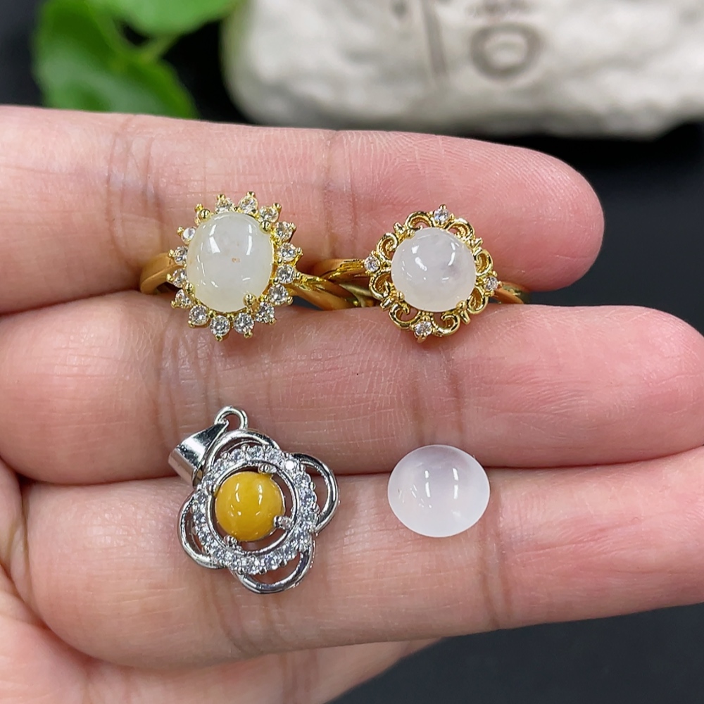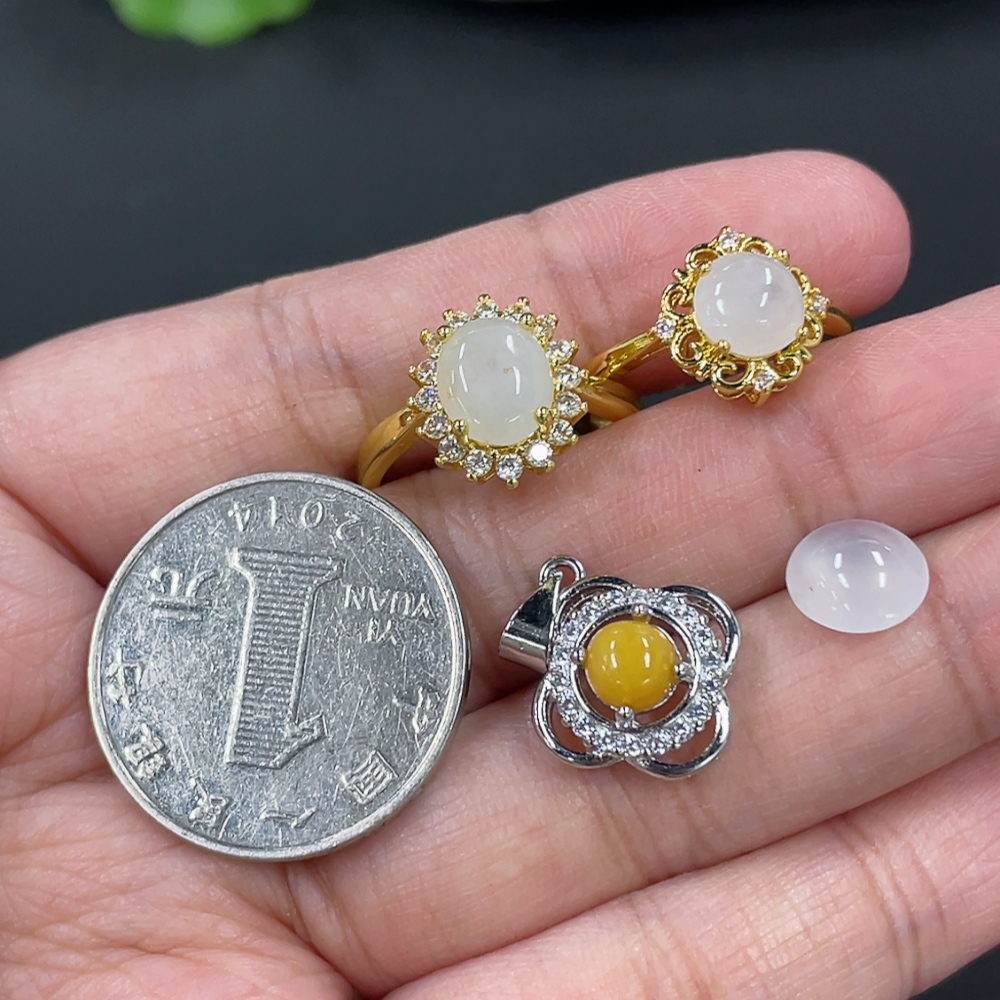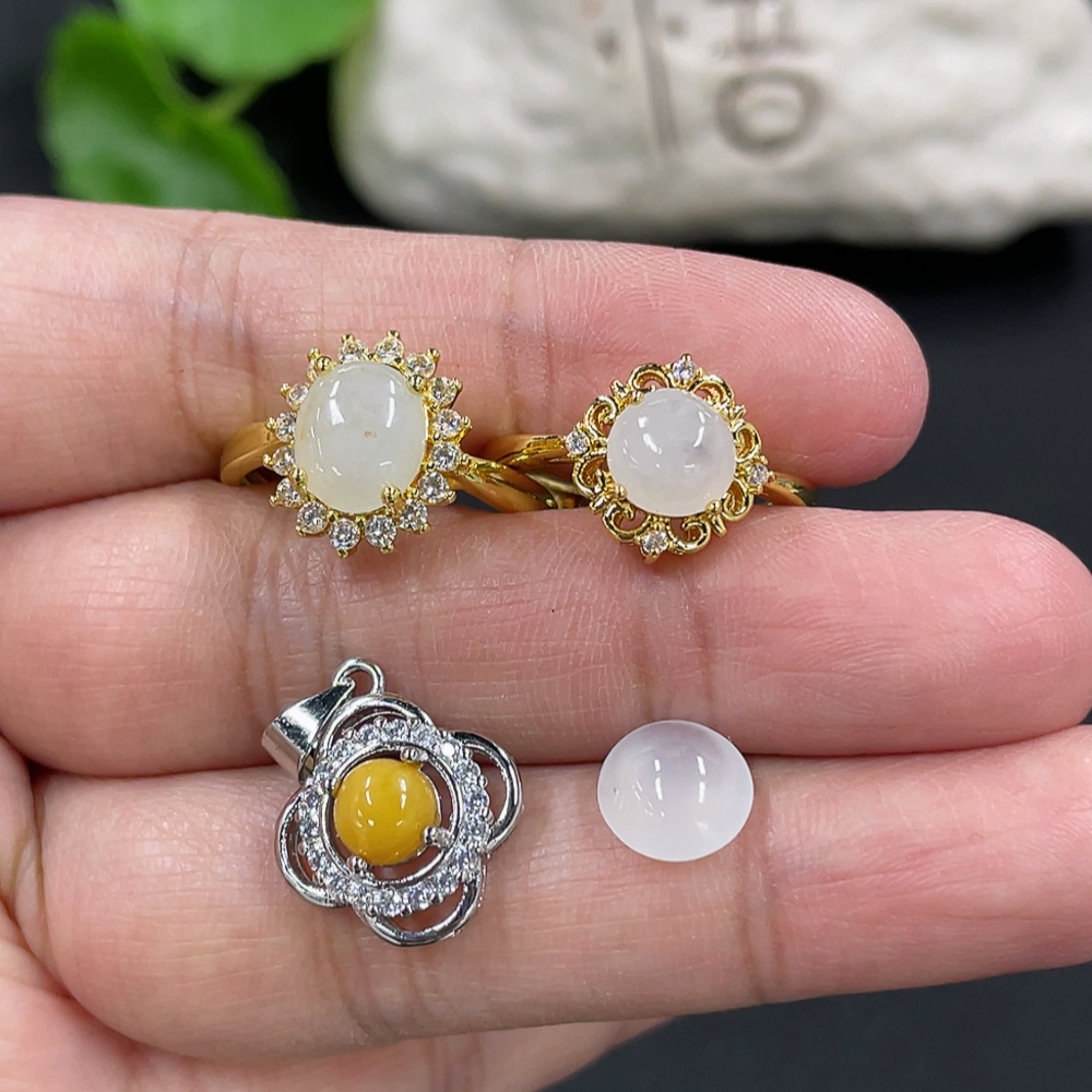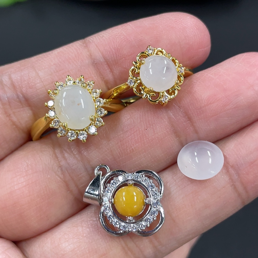 Jadeite Cabochon Inlaid Ring Cabochon Pendant Non-Gold Inlaid Adjustable Size Total Weight Approx. 6.5g