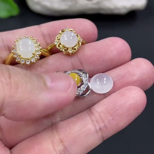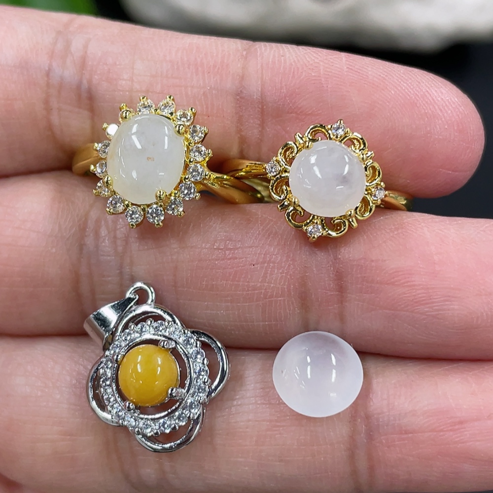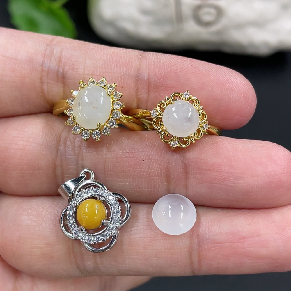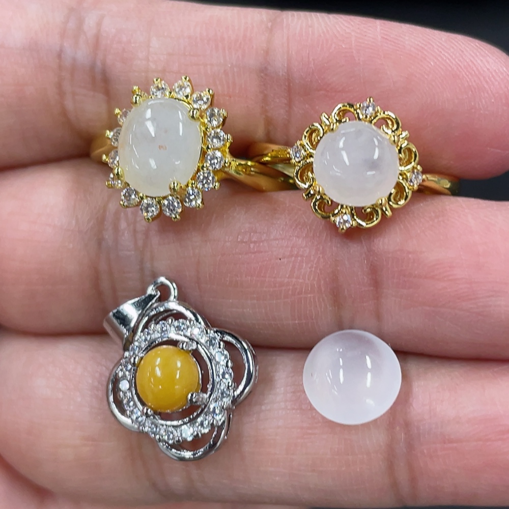 Jadeite Cabochon Inlaid Ring Cabochon Pendant Non-Gold Inlaid Adjustable Size Total Weight Approx. 6.5g