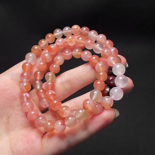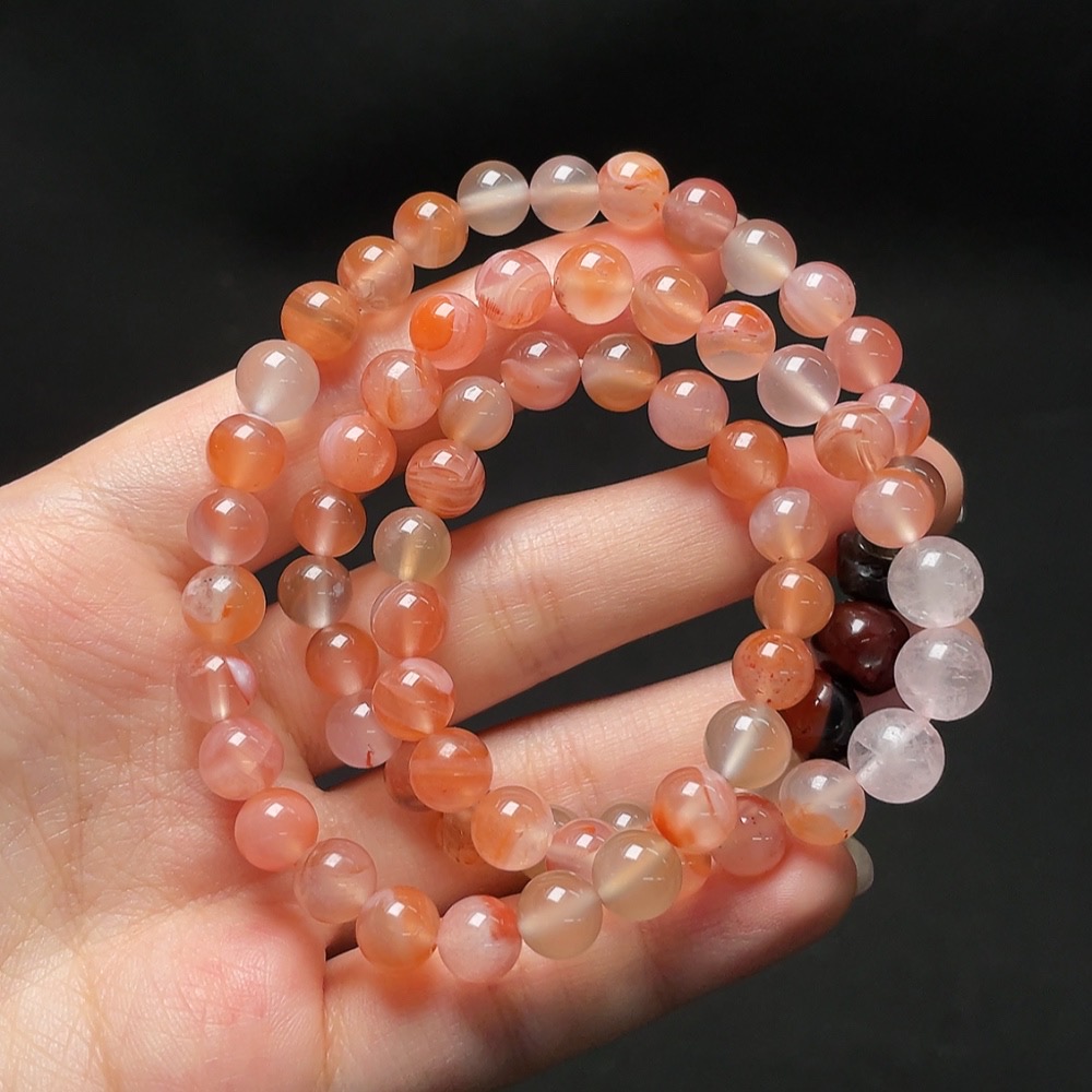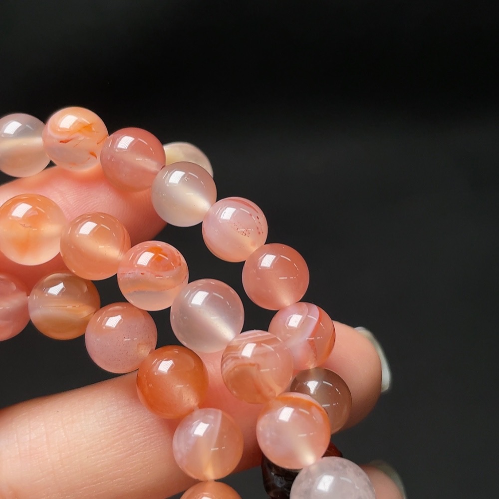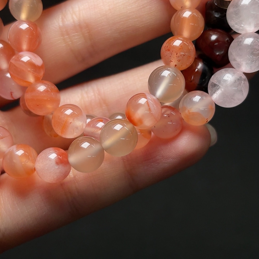 Southern Red Agate Bead Necklace with Visible Organic Matter, Non-Natural Accent Stones Considered, Total Weight Approx. 35.2g, Size Around 8.5mm (Mixed Stones)