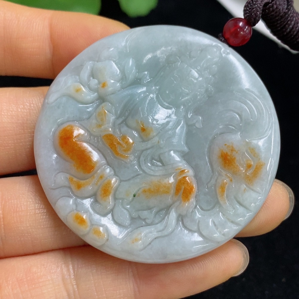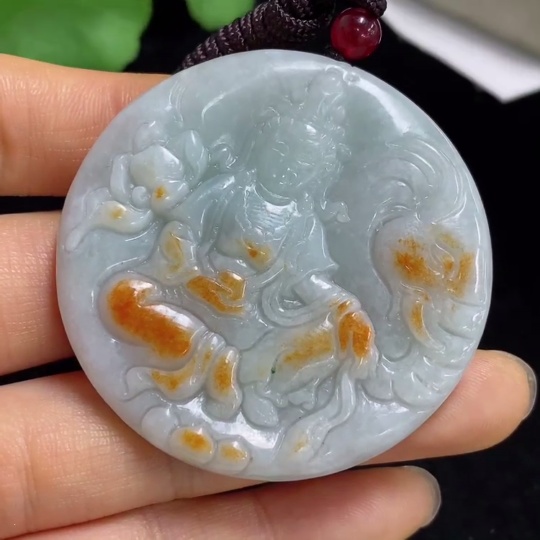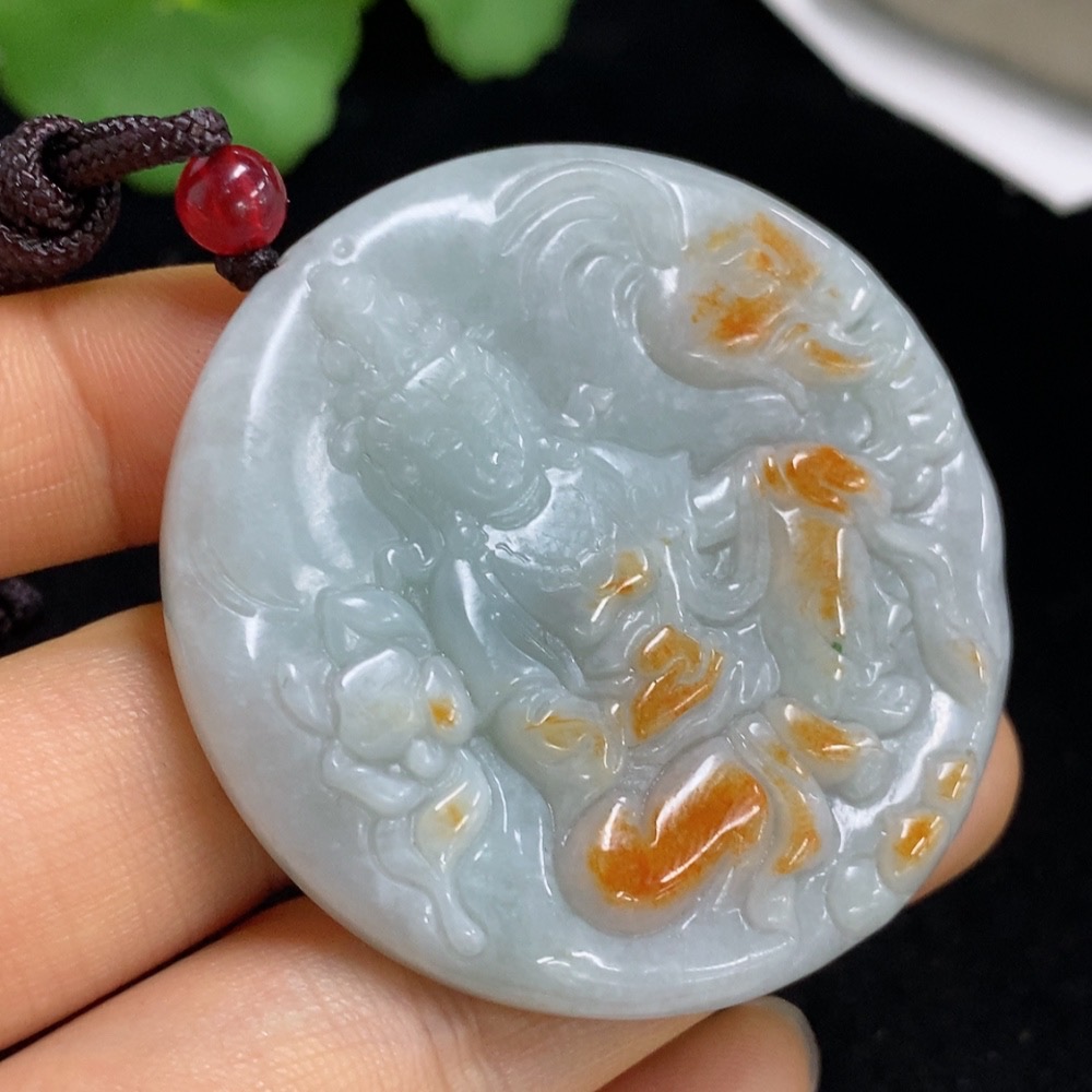 Jadeite Pendant Guanyin Total Weight Approx. 38.69g (Including Rope Weight) With Non-Type A Stones