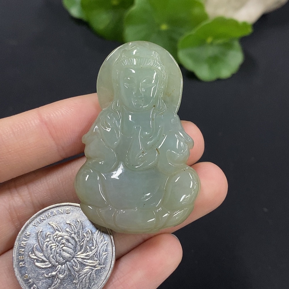 Jadeite Guanyin Pendant Total Weight Approx. 21.7g