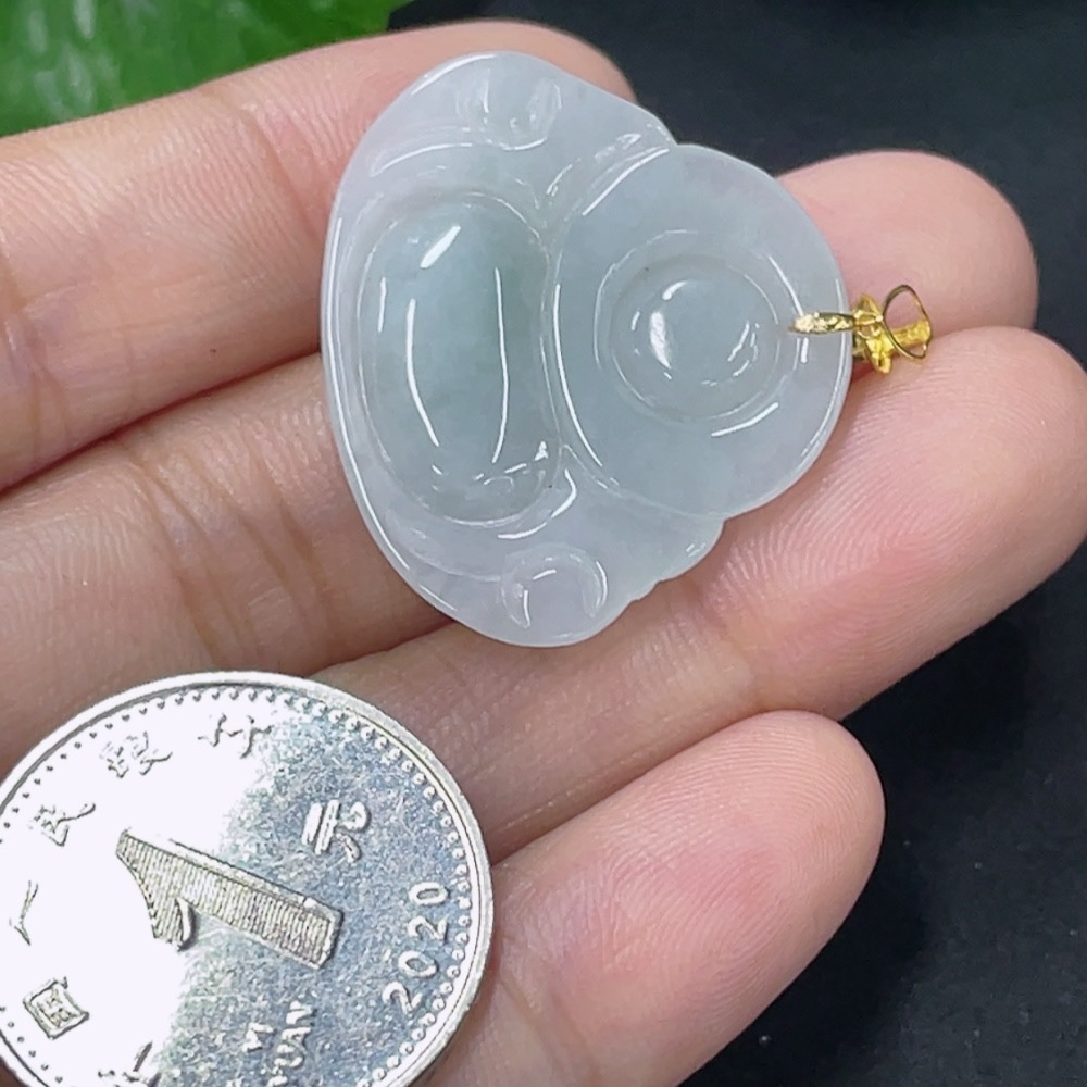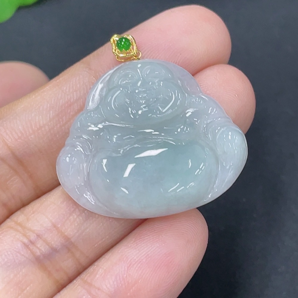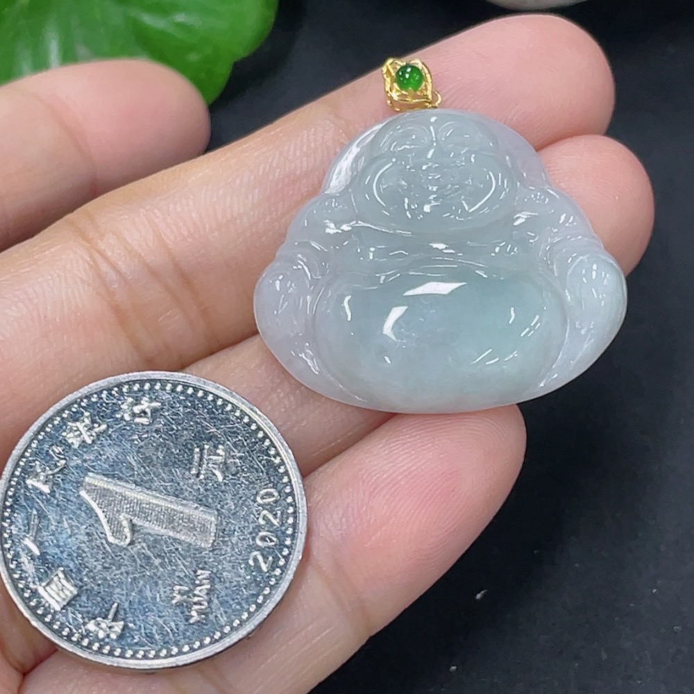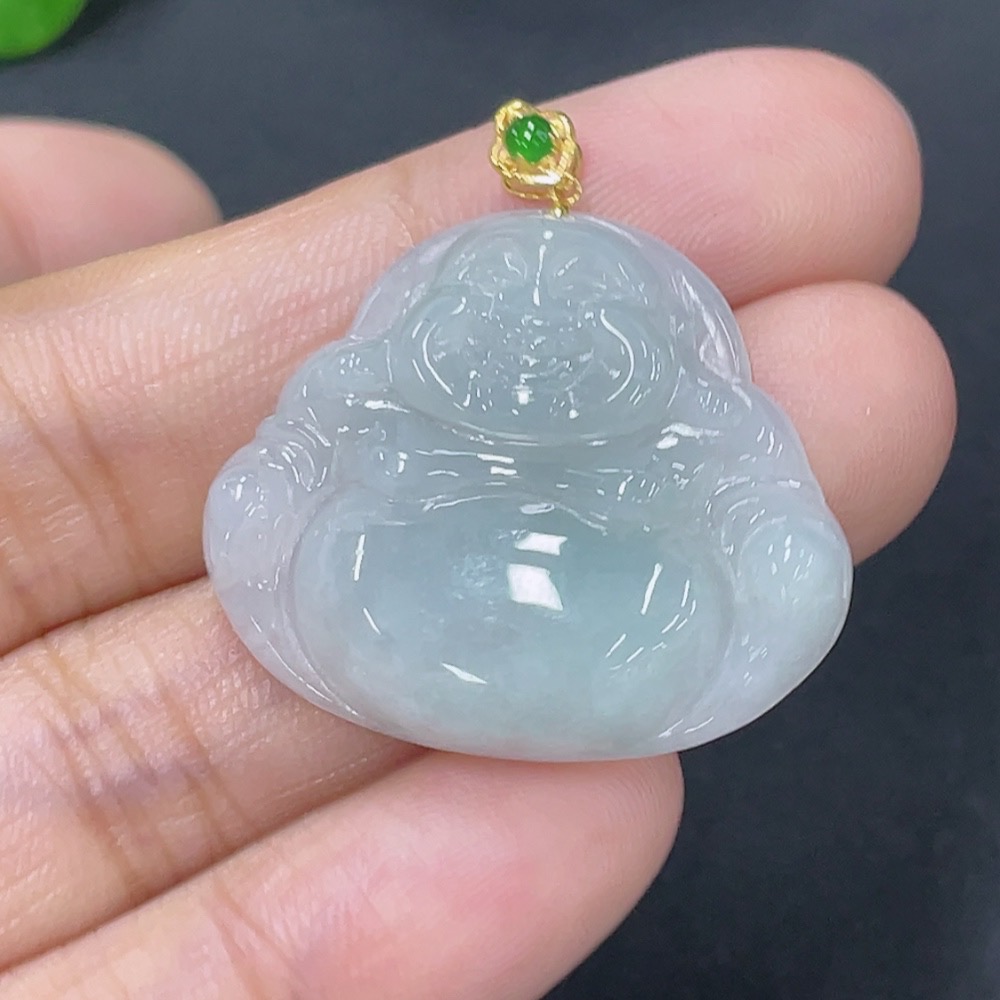 Jadeite Buddha Pendant with 18K Gold Clasp, Total Weight Approx. 5.17g